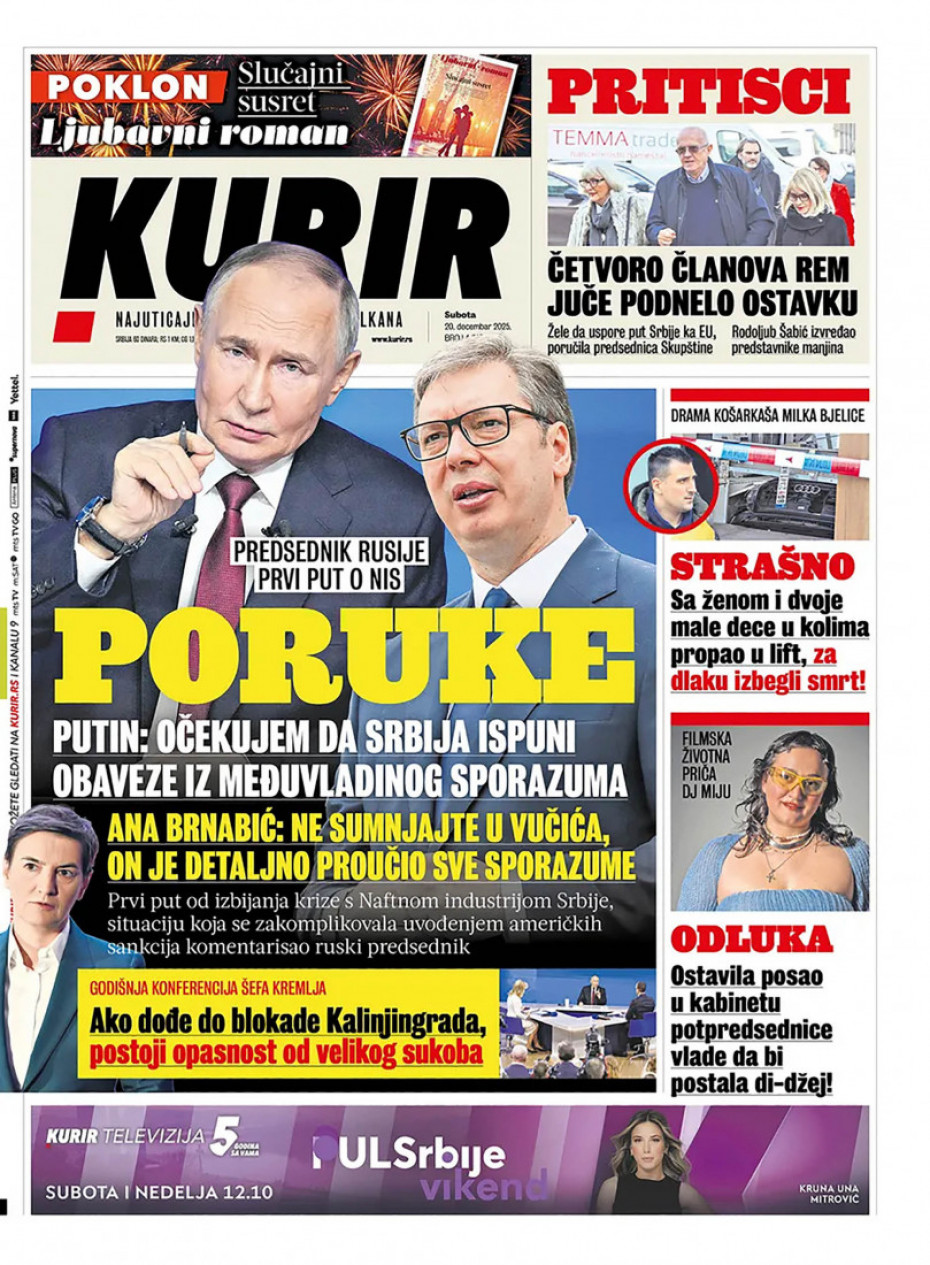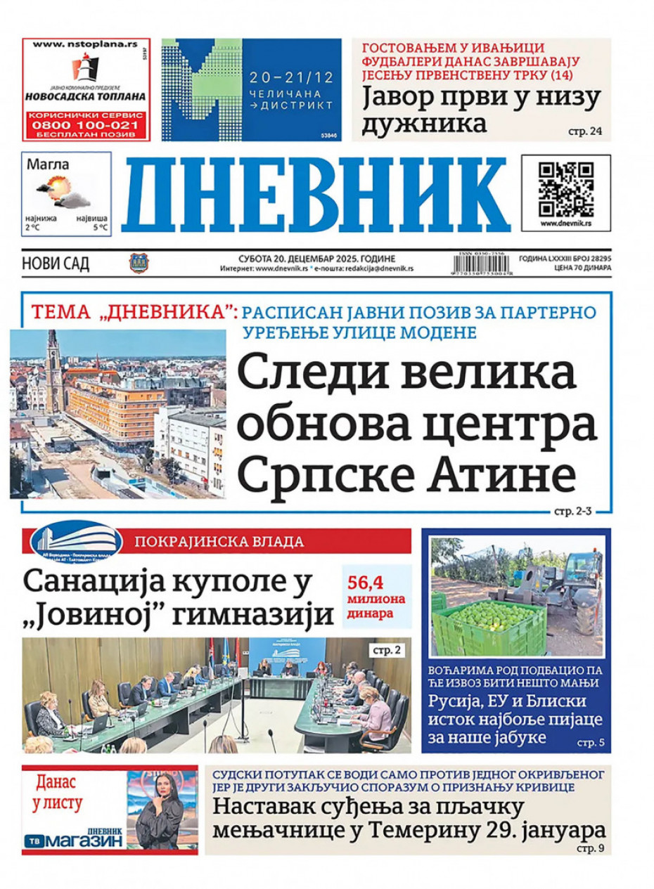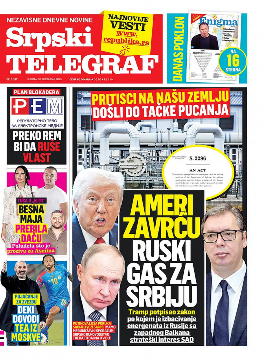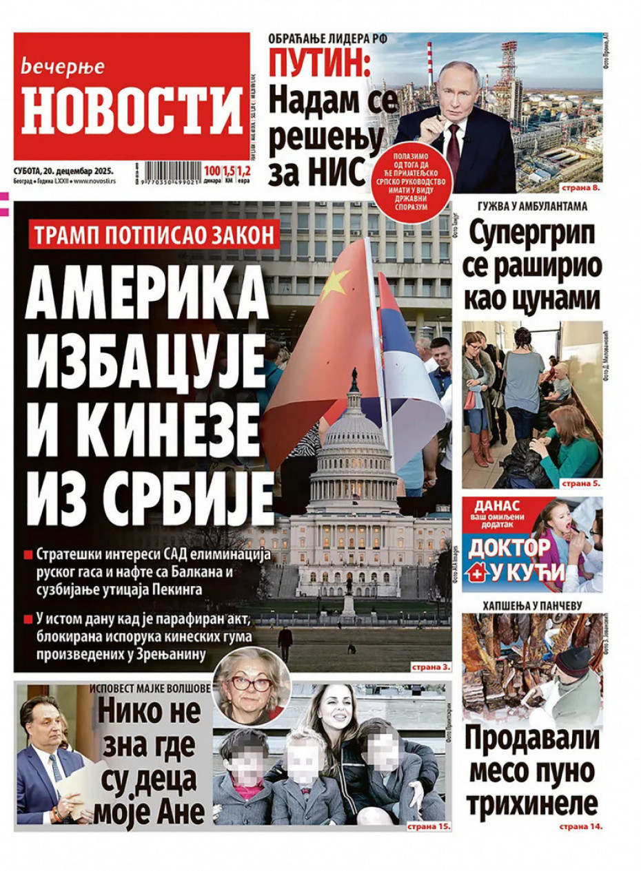 Pogledajte šta na naslovnim stranama donose dnevne novine u Srbiji u izdanju za subotu, 20. decembar.