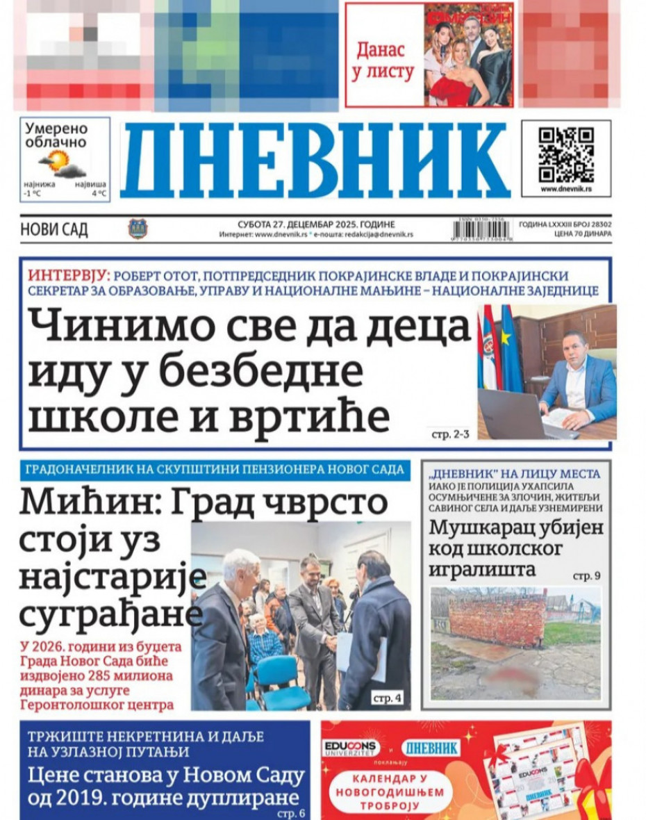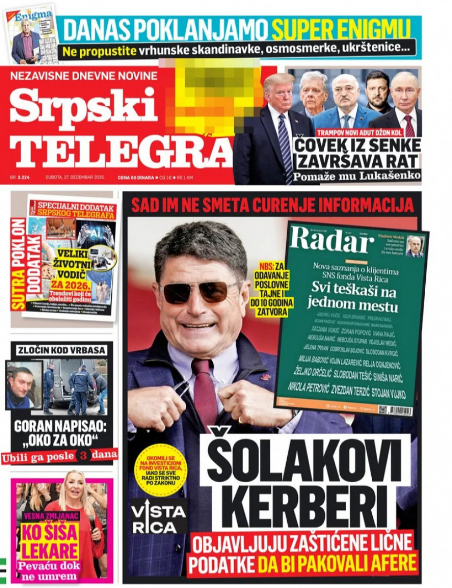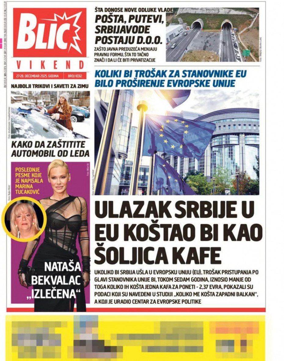 Politika Naslovne strane dnevne štampe za subotu, 27. decembar Pogledajte šta na naslovnim stranama donose dnevne novine u Srbiji u izdanju za subotu, 27. decembar. 26/12/2025 20:40 https://www.euronews.rs/srbija/politika/203206/naslovne-strane-novina-u-srbiji-za-27-decembar/vest pročitaj celu vest