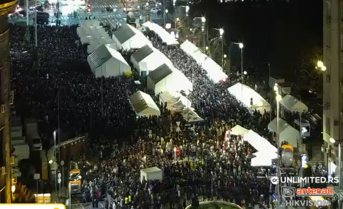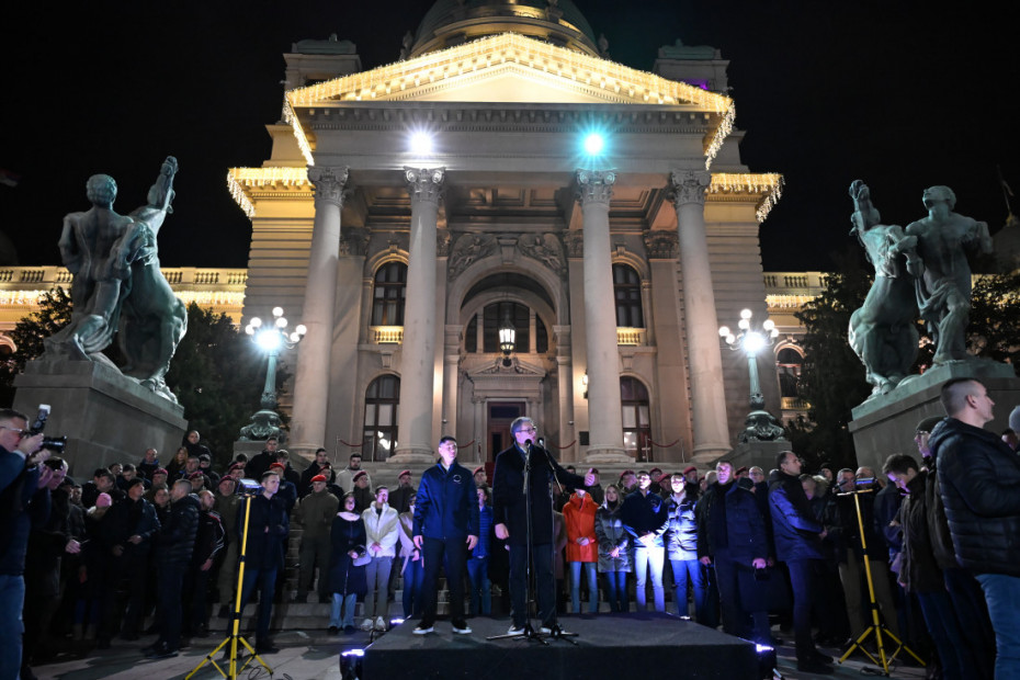 Predsednik Srbije Aleksandar Vučić obratio se večeras građanima ispred Narodne skupštine Srbije, gde je najavljeno uklanjanje šatora i postavljanje Božićnog sela, poručivši da je ponosan na, kako je rekao, mlade i studente koji su „pokrenuli jednu veliku, najlepšu i najplemenitiju ideju – ideju suverene i nezavisne Srbije“.