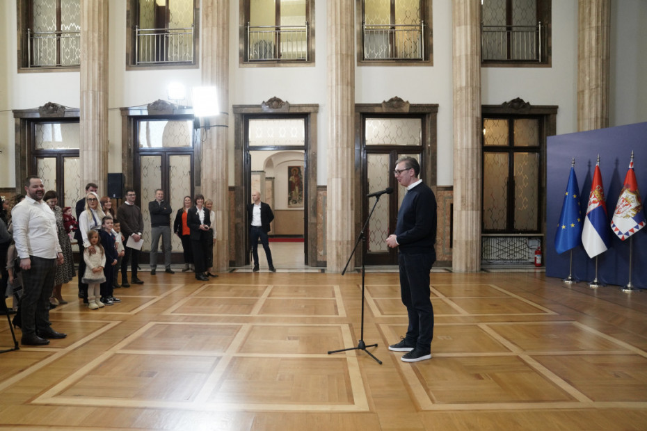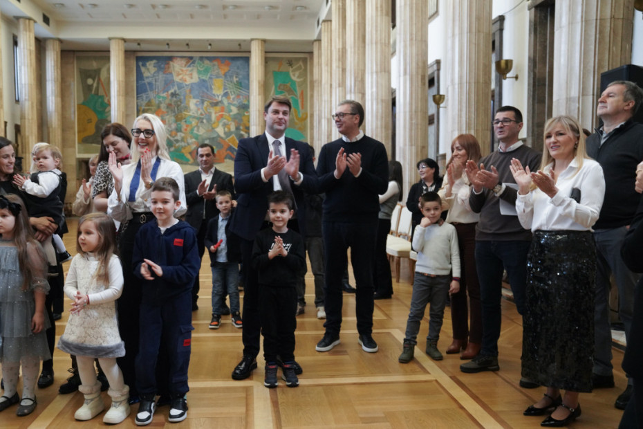 "Želim vam da ne stanete na ovome, nego da nastavite da imate još dece, jer su toliko lepa da je to potpuno neverovatno", rekao je Vučić.