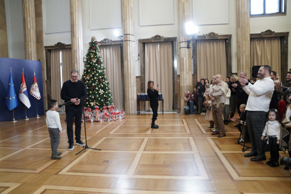 Vučić podelio paketiće deci u Predsedništvu, poželeo im srećnu i uspešnu Novu godinu
