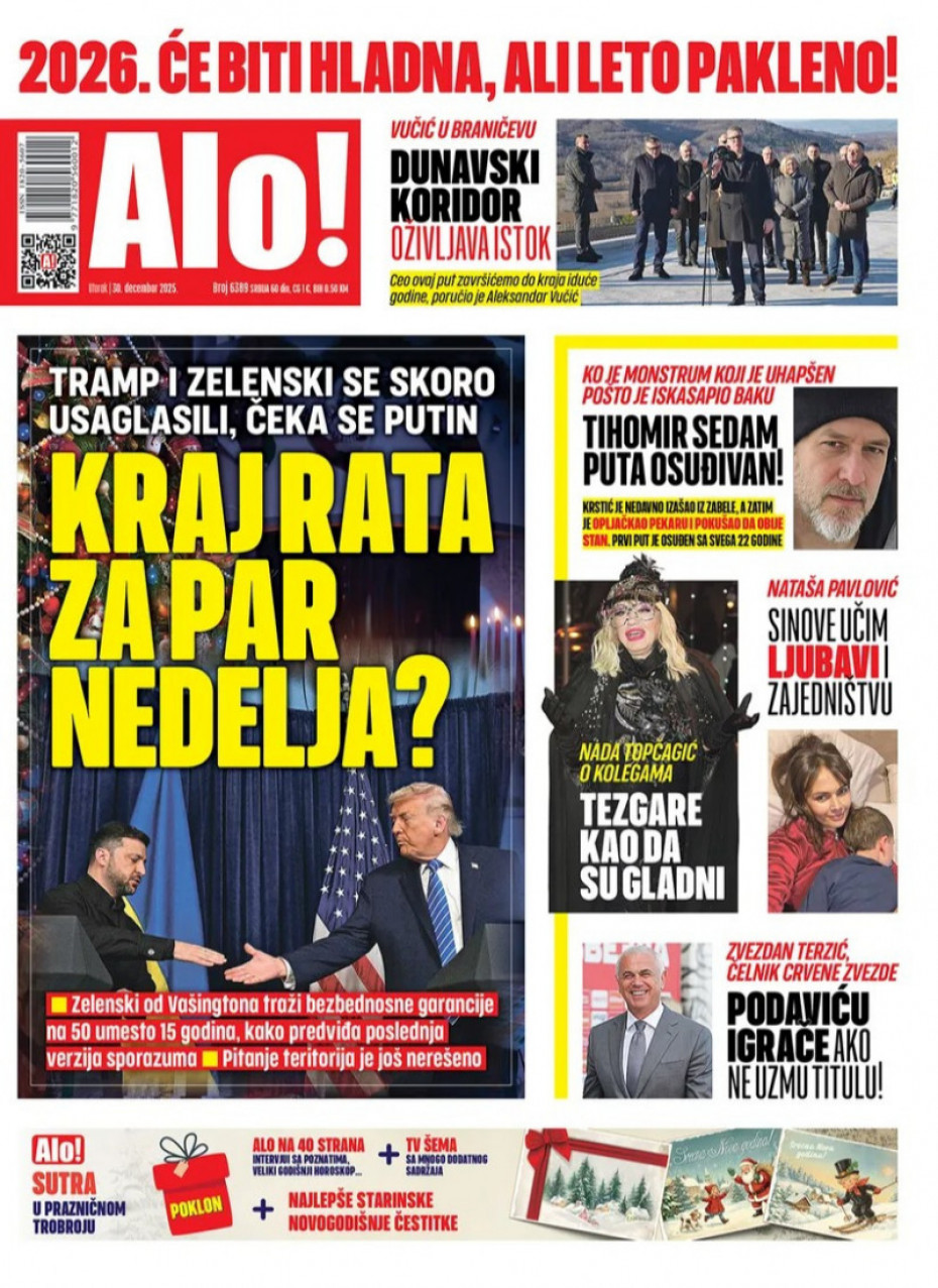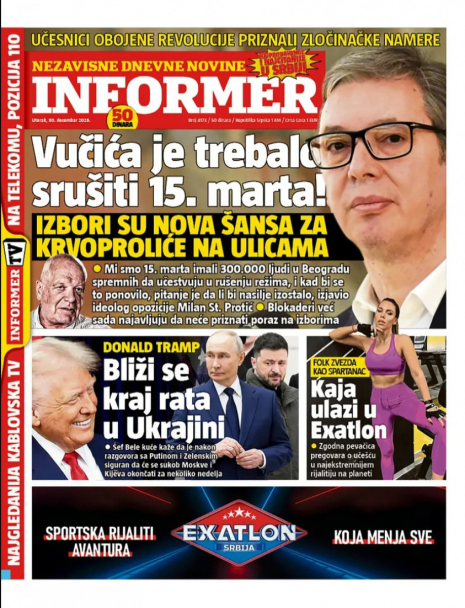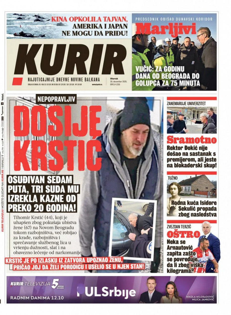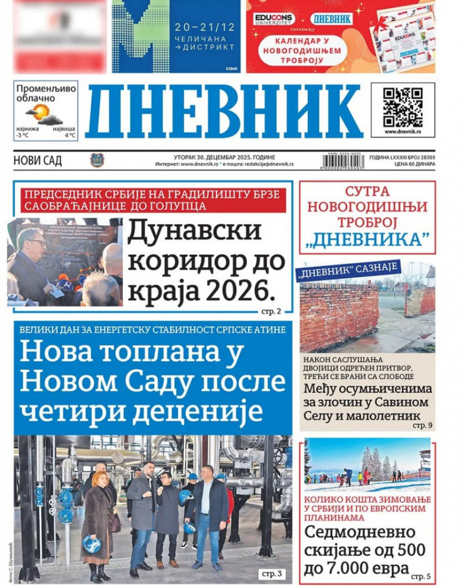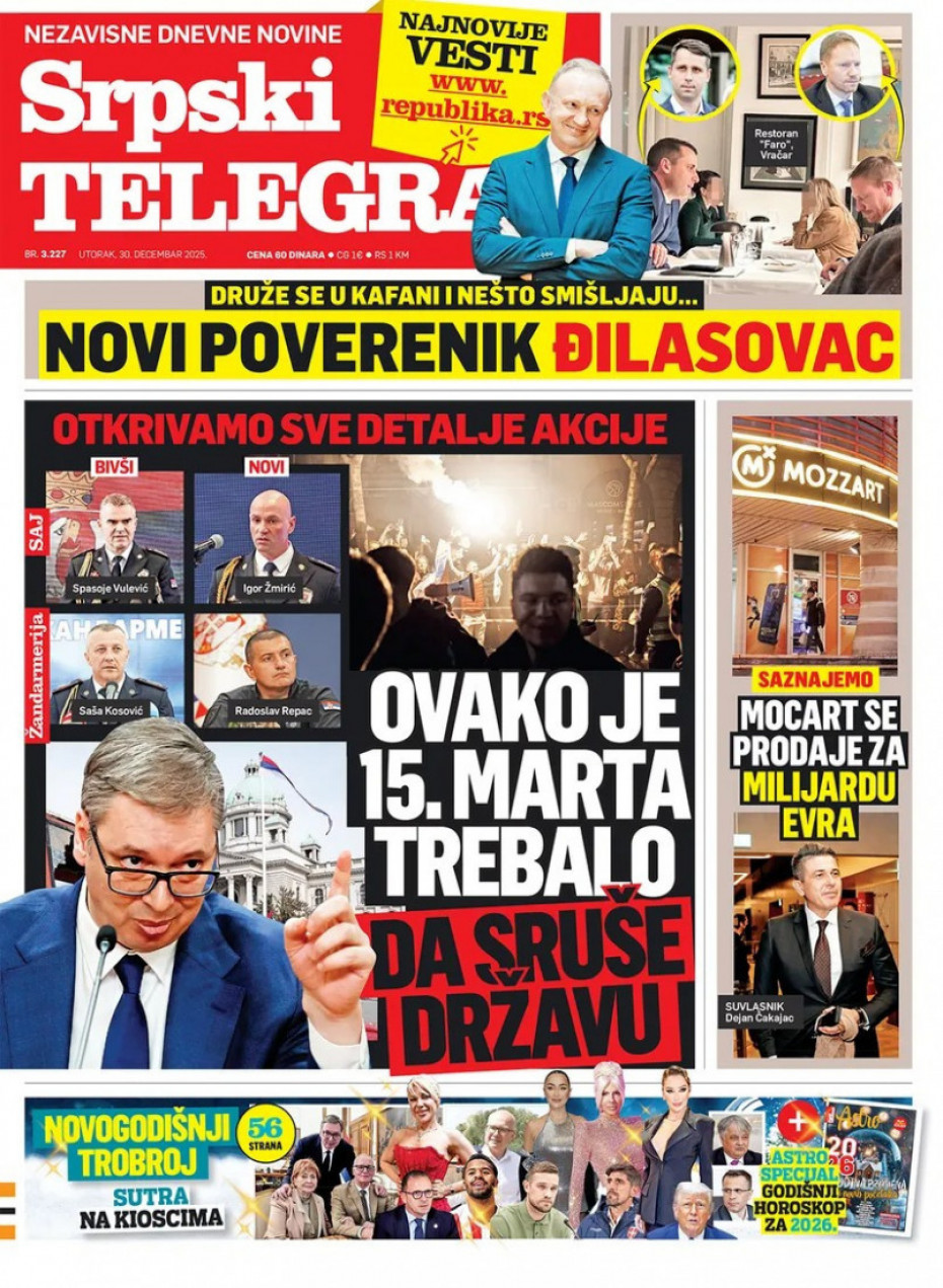 Pogledajte šta na naslovnim stranama donose dnevne novine u Srbiji u izdanju za utorak, 30. decembar