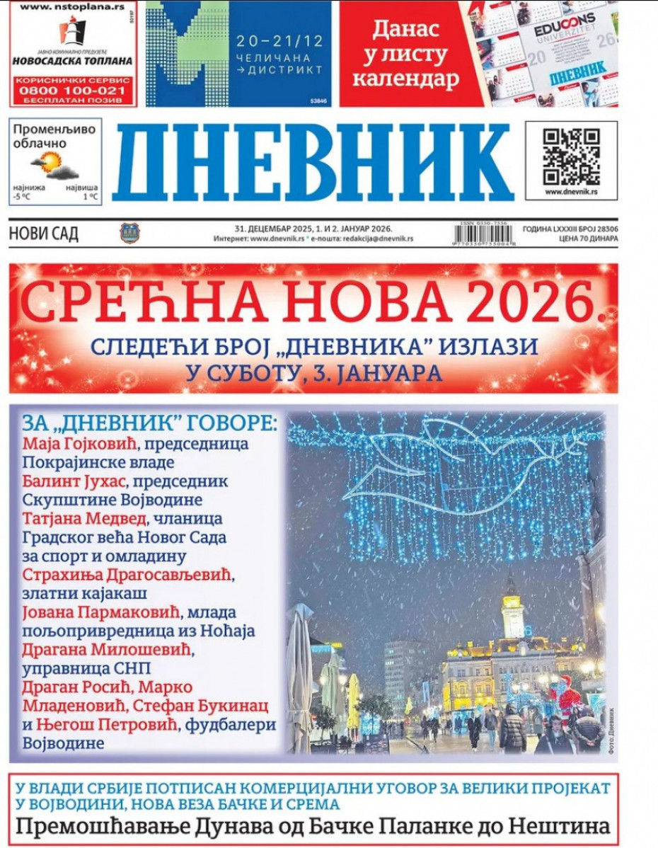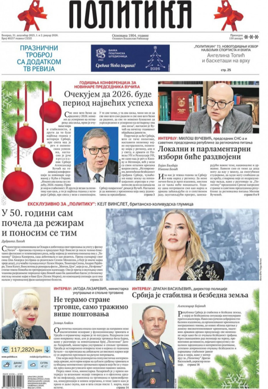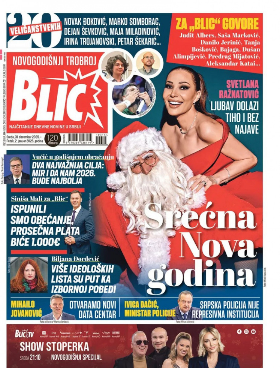 Pogledajte šta na naslovnim stranama donose dnevne novine u Srbiji u izdanju za sredu, 31. decembar