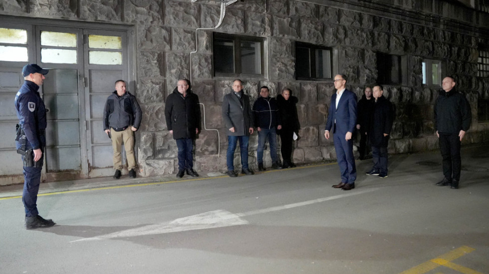 Premijer prof. dr Đuro Macut obišao je noćas zajedno sa ministrom unutrašnjih poslova Ivicom Dačićem komandno-operativni centar Policijske uprave za Grad Beograd i poželeo svima mirniju 2026. godinu.