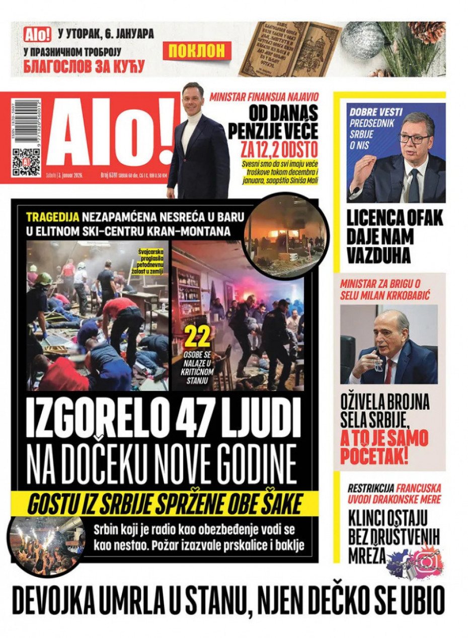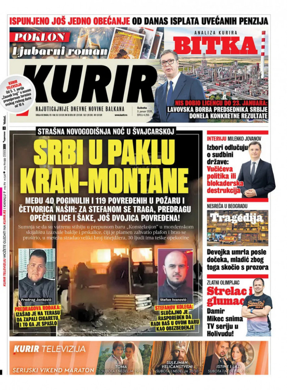 Pogledajte šta na naslovnim stranama donose dnevne novine u Srbiji u izdanju za subotu, 3. januar