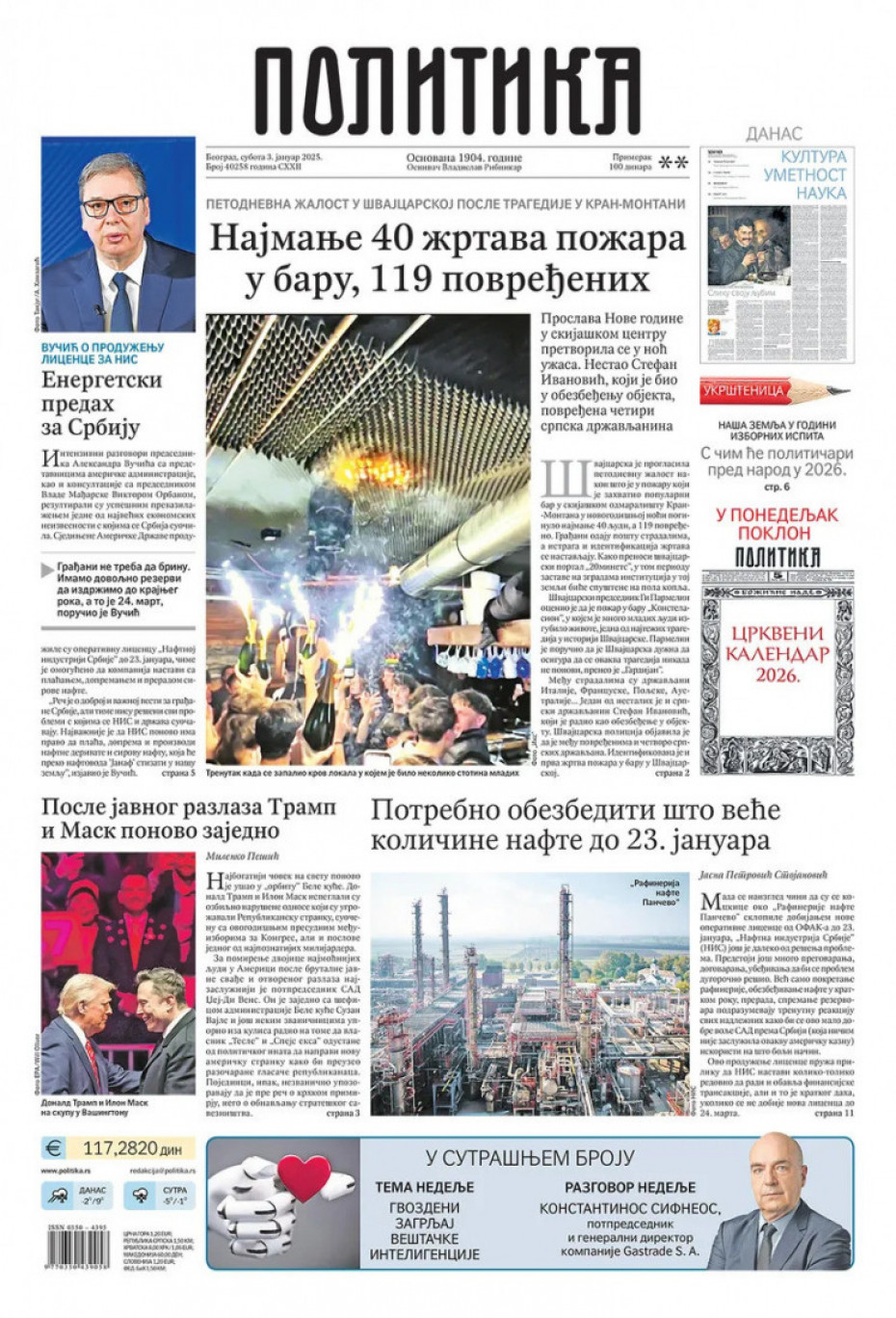 Naslovne strane dnevne štampe za subotu, 3. januar