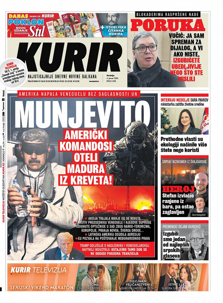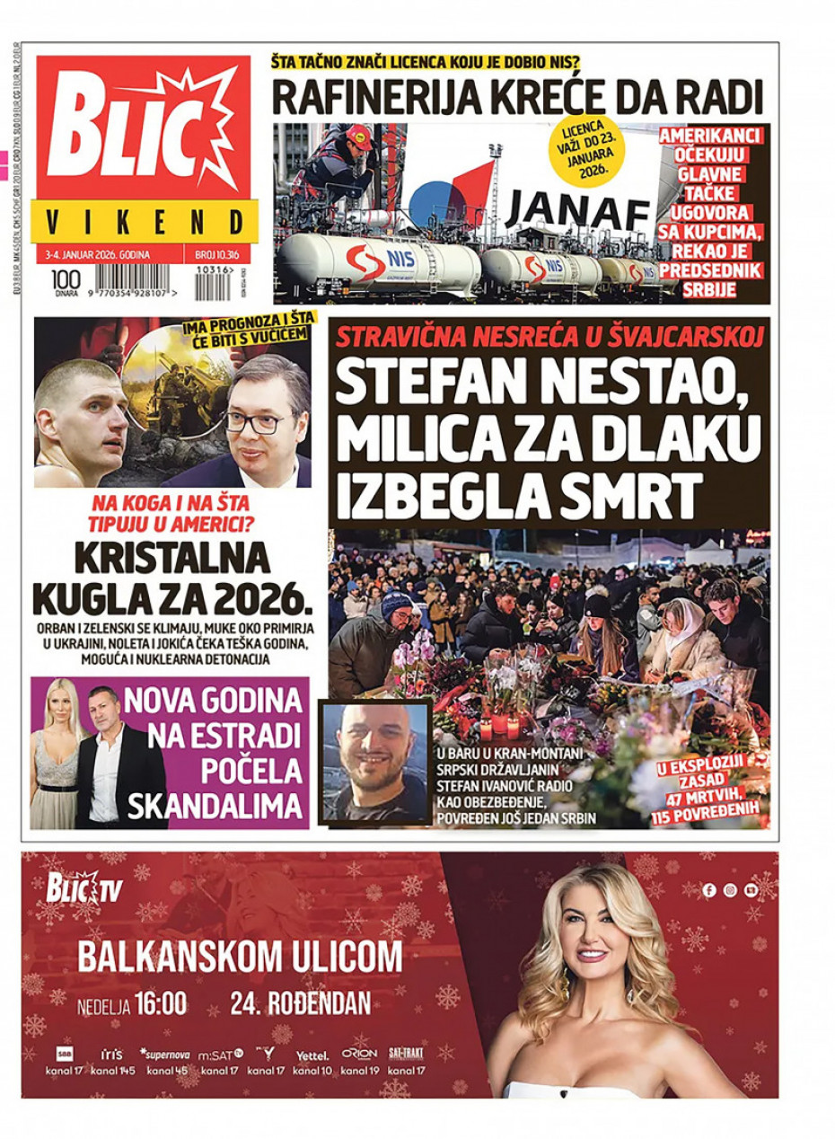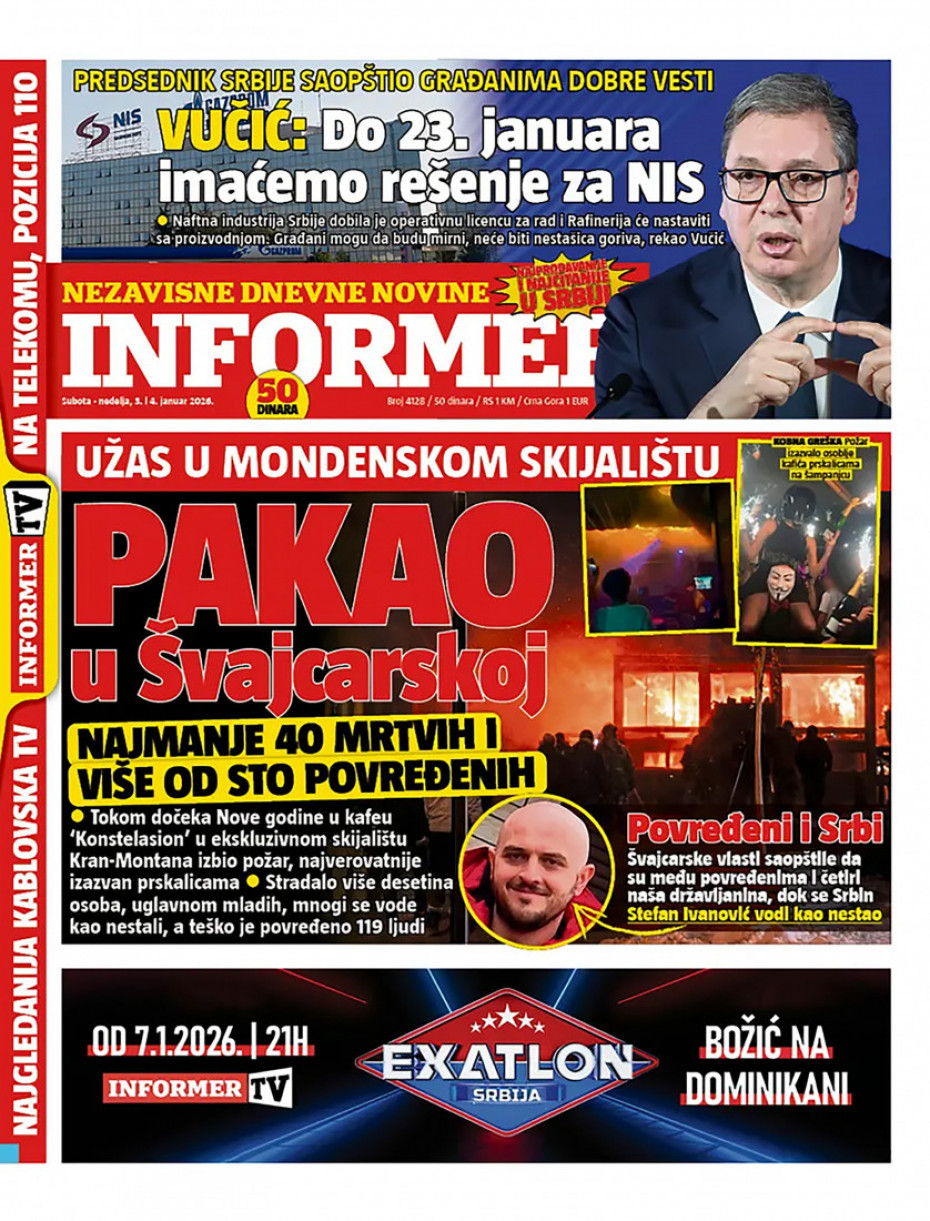 Pogledajte šta na naslovnim stranama donose dnevne novine u Srbiji u izdanju za nedelju, 4. januar