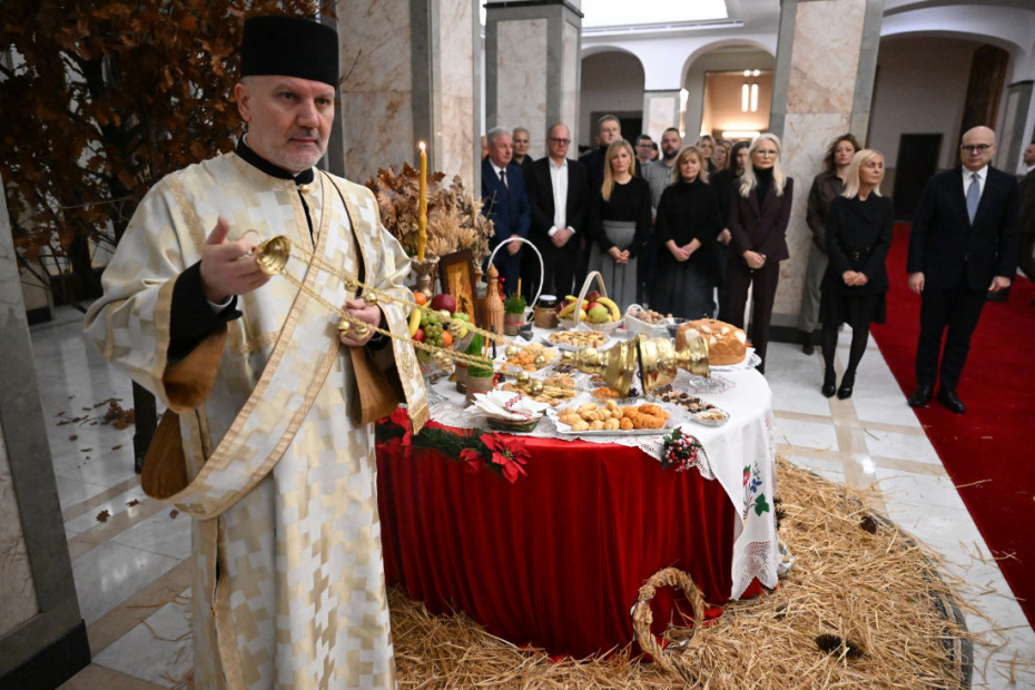 "Draga deco iz Prijedora, Republike Srpske, Principovog Grahova i dragi gosti i prijatelji iz Boke, dragi Novljani, srećno vam Badnje jutro. Čast mi je da vas u ime predsednika Republike Srbije Aleksandara Vučića pozdravim, da vam poželim srećnu Novu Godinu i pre svega veliki praznik Rođenja Hristovog, datum koji označava početak novog doba, vremena i spasenja roda ljudskoga", rekao je Vučević na prijemu za decu u Predsedništvu Srbije.