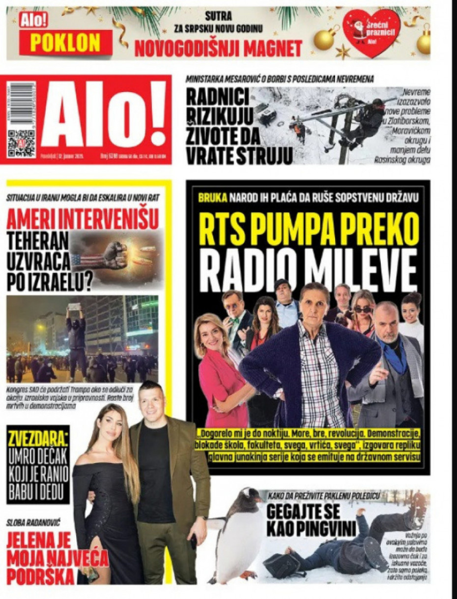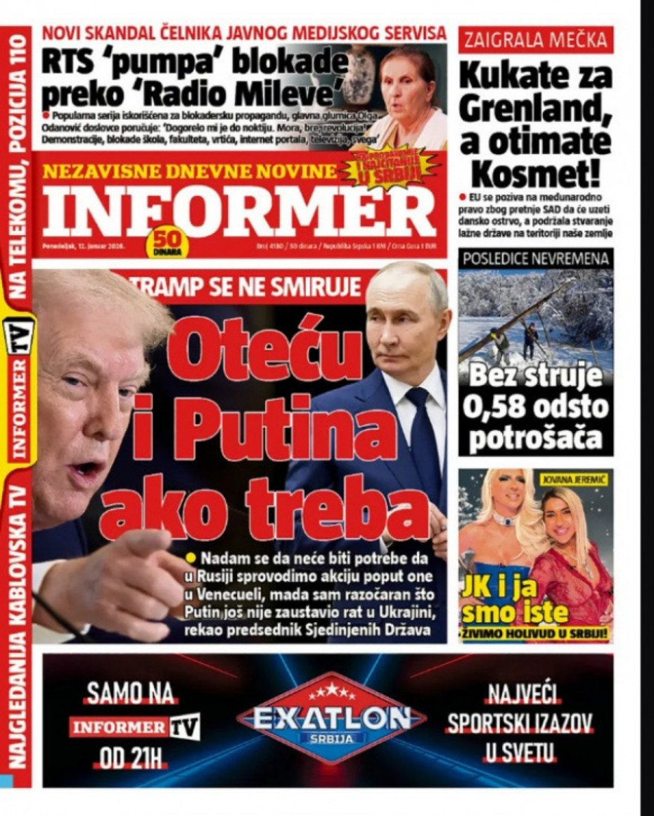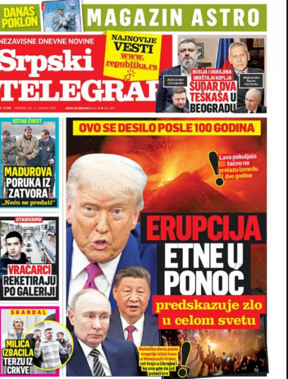 Pogledajte šta na naslovnim stranama donose dnevne novine u Srbiji u izdanju za ponedeljka, 12. januar