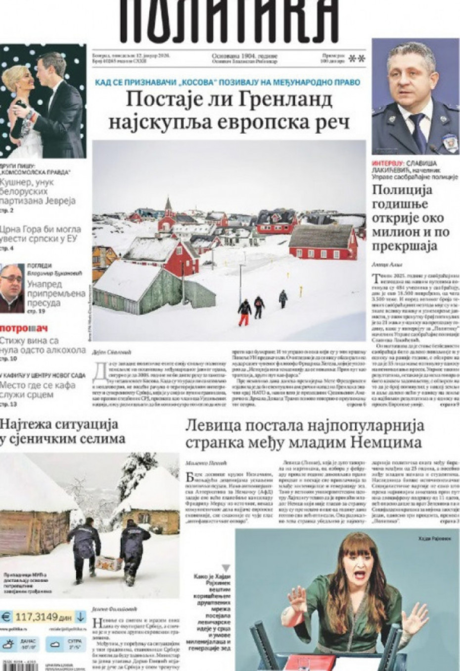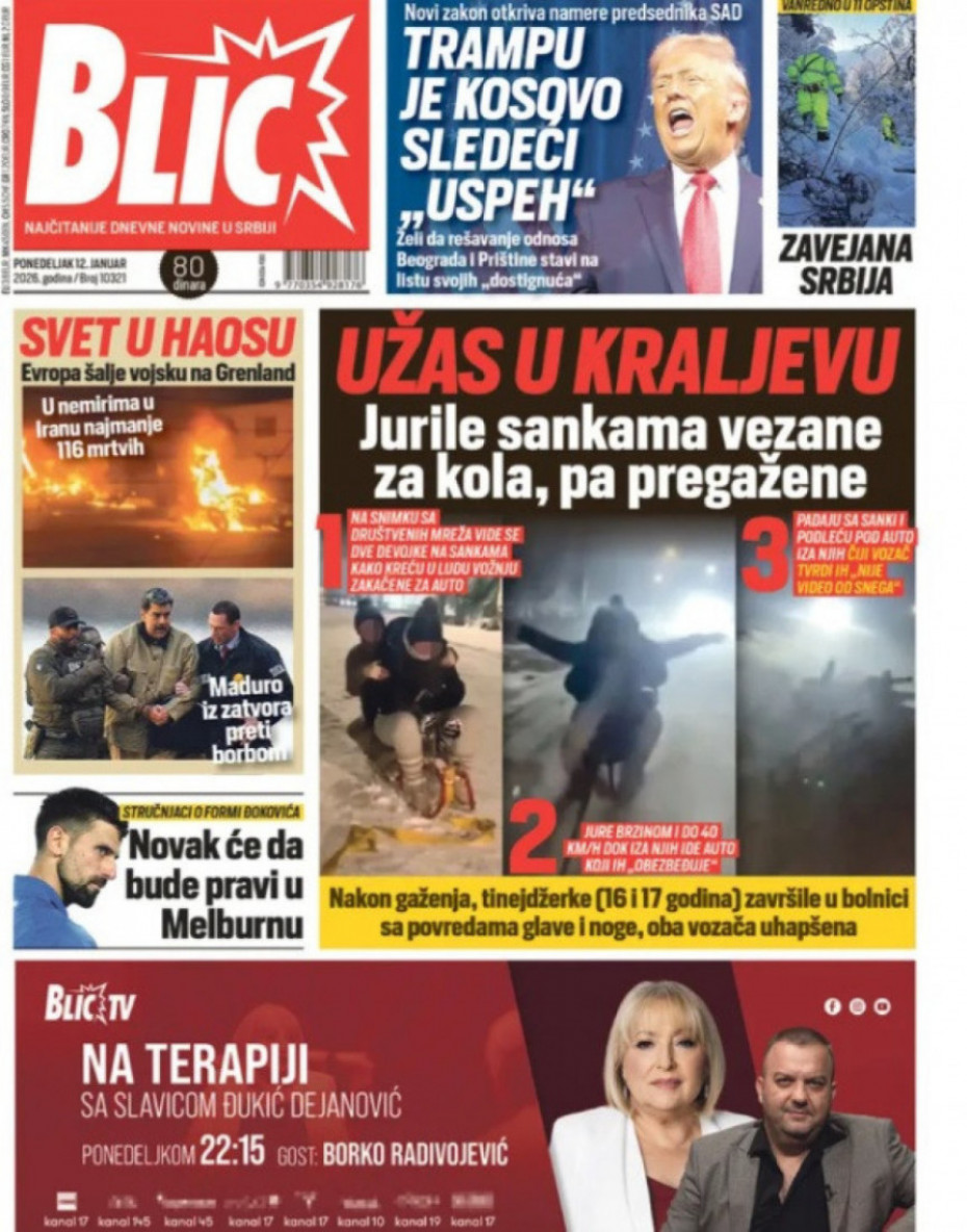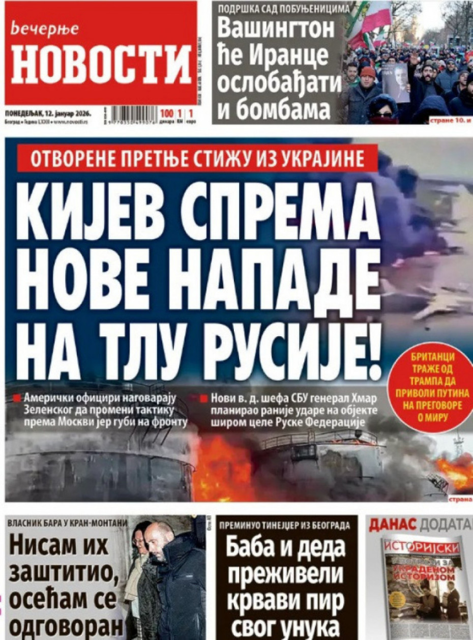 Naslovne strane dnevne štampe za ponedeljak, 12. januar