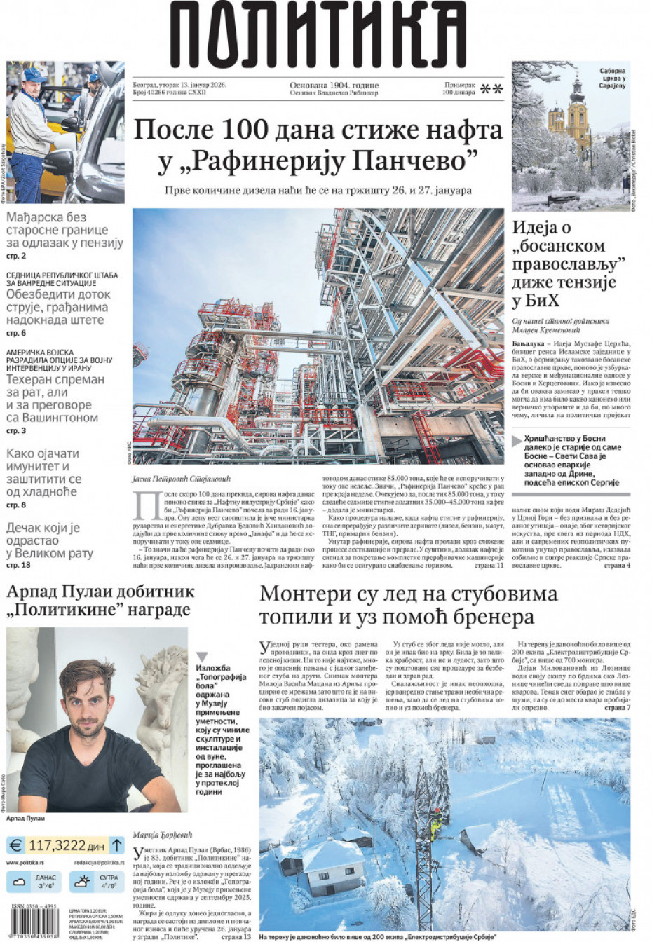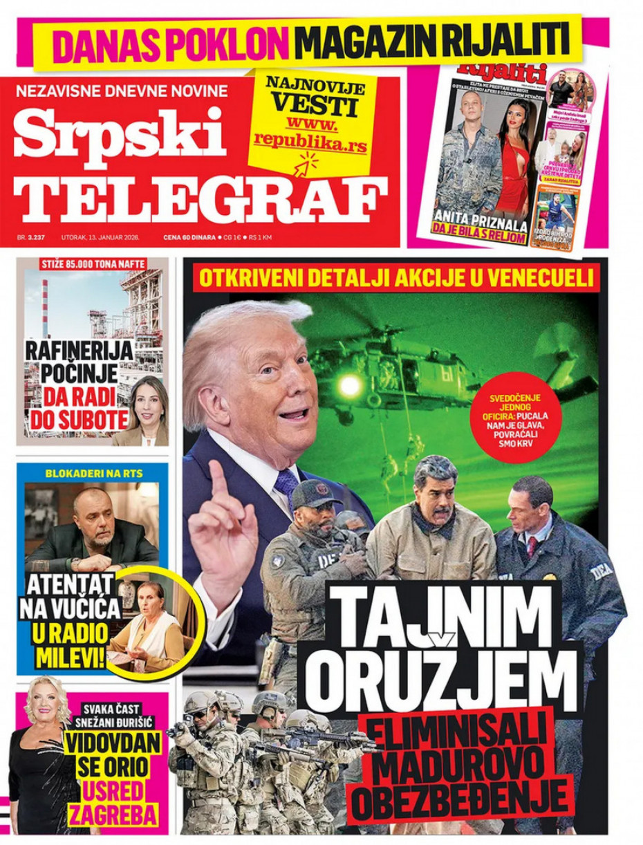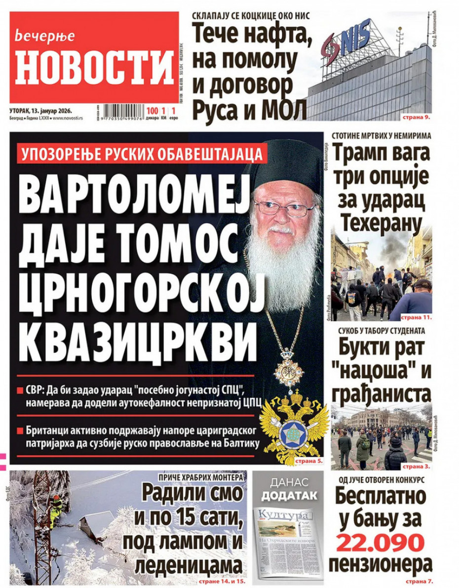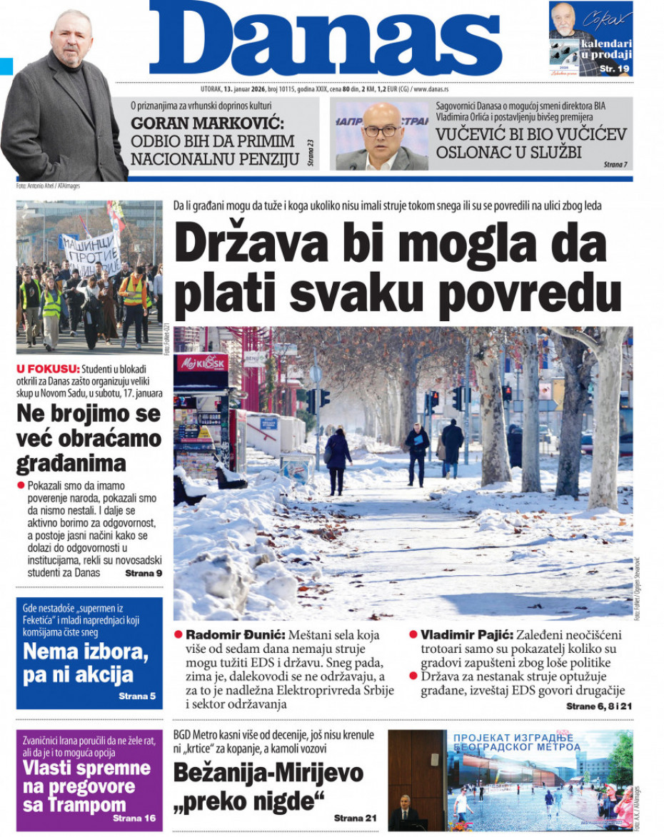 Naslovne strane dnevne štampe za utorak, 13. januar