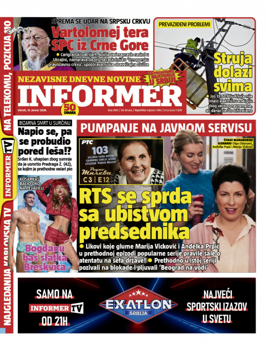 Pogledajte šta na naslovnim stranama donose dnevne novine u Srbiji u izdanju za utorak, 13. januar