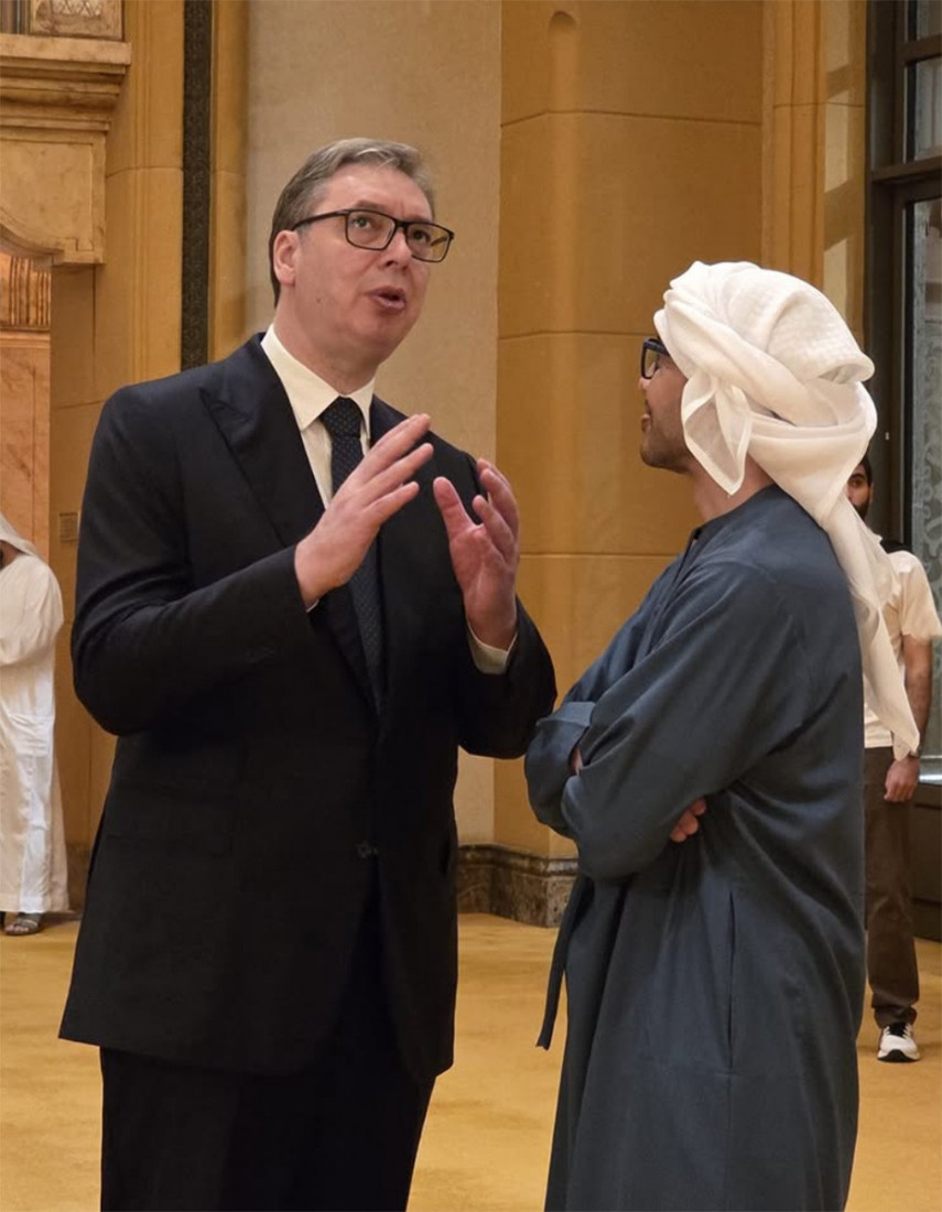 Vučić je naveo da je prijateljski susret sa šeikom Abdulom bin Zajedom al Nahjanom imao uoči gala večere koju šeik priređuje za učesnike Nedelje održivosti 2026. u Abu Dabiju.