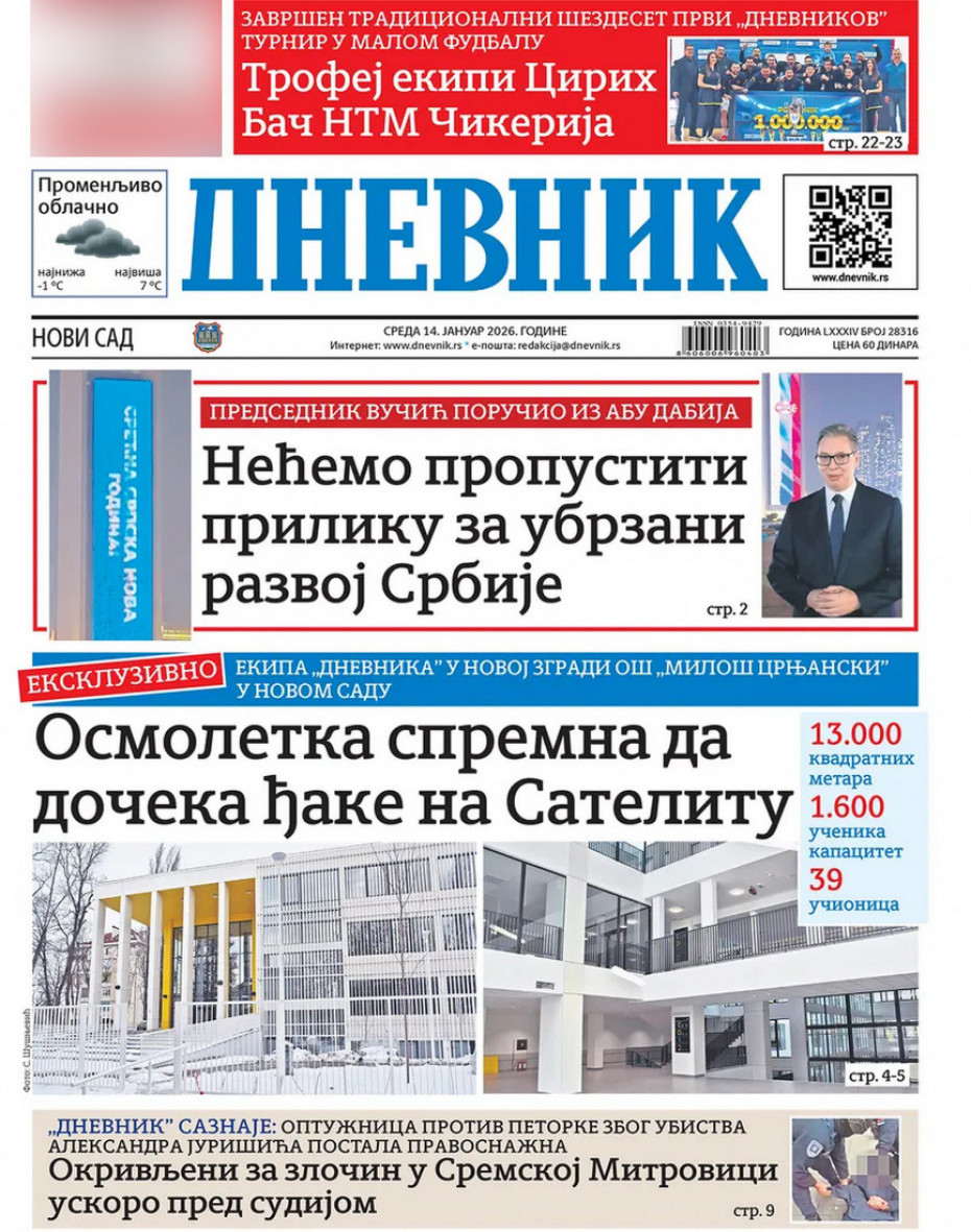 Pogledajte šta na naslovnim stranama donose dnevne novine u Srbiji u izdanju za sredu, 14. januar