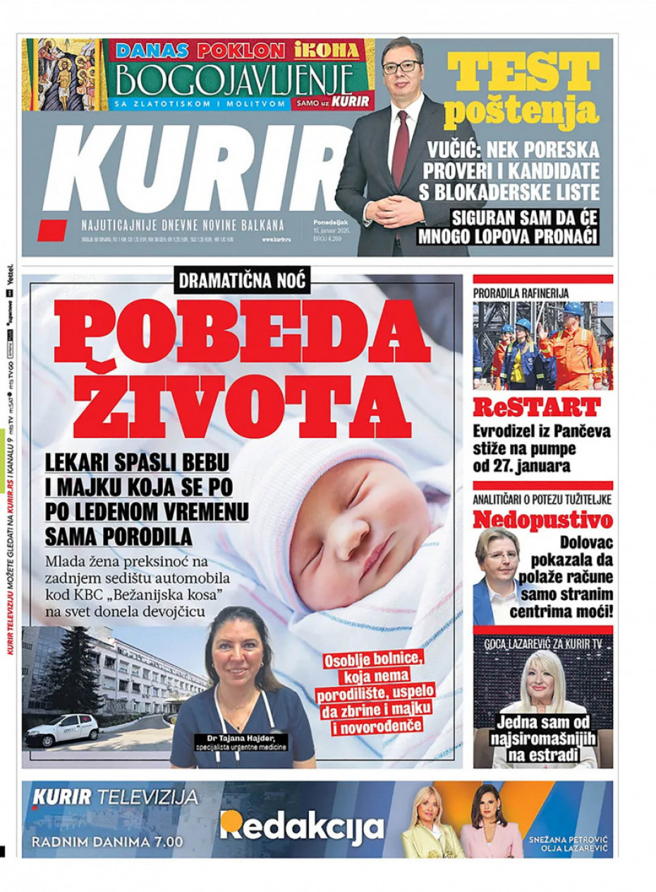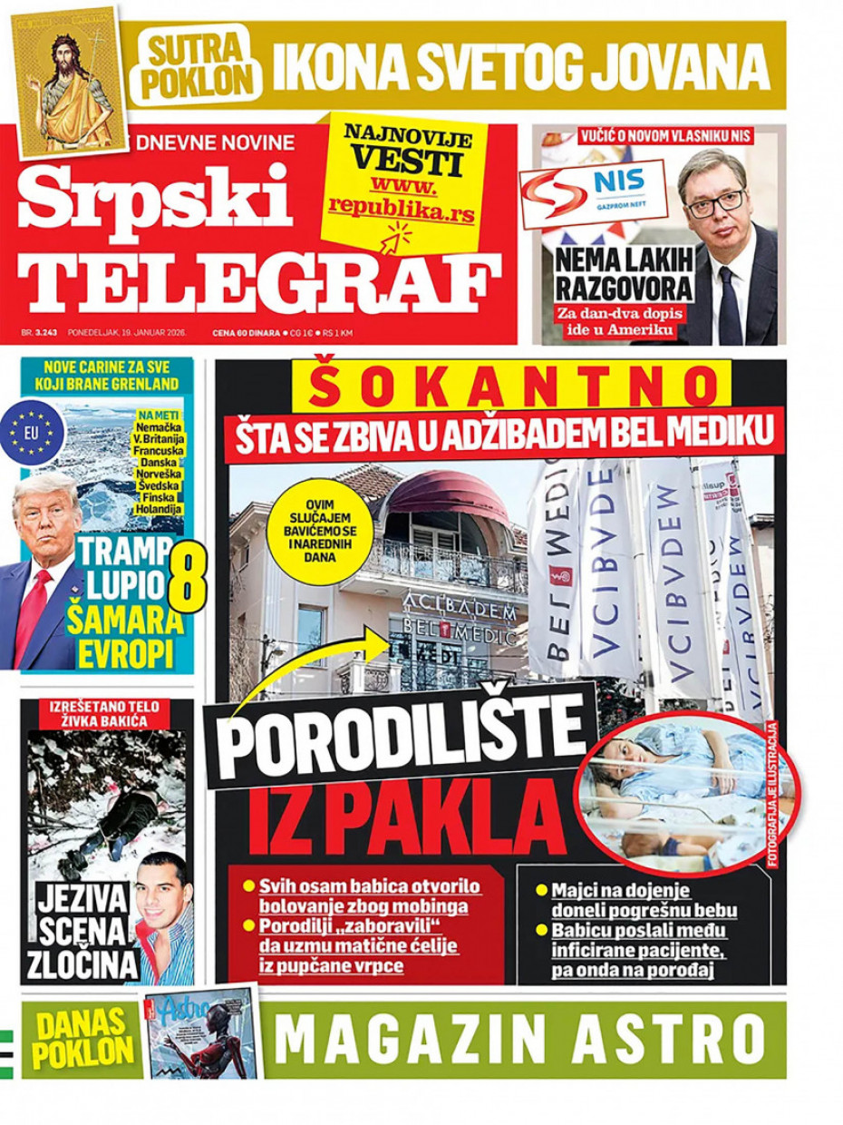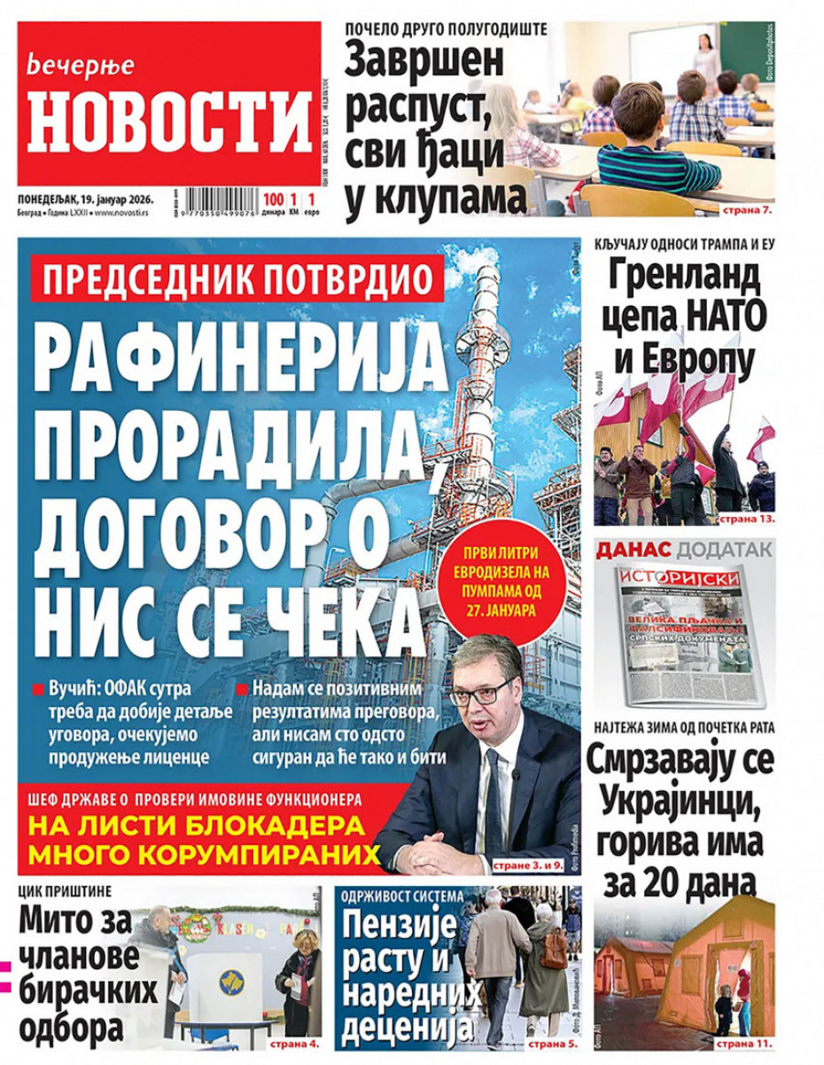 Pogledajte šta na naslovnim stranama donose dnevne novine u Srbiji u izdanju za ponedeljka, 19. januar