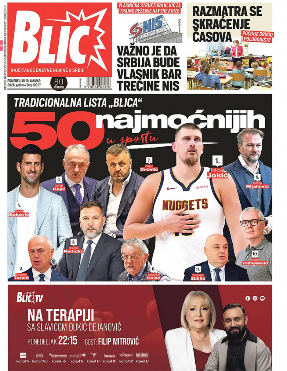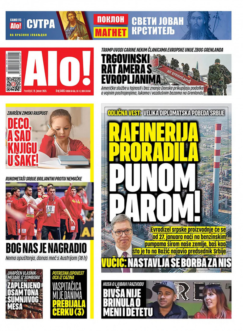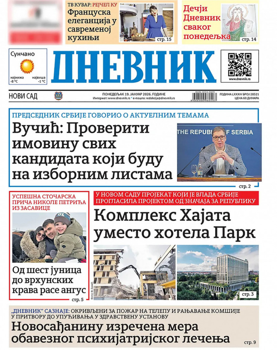 Pogledajte šta na naslovnim stranama donose dnevne novine u Srbiji u izdanju za ponedeljka, 19. januar