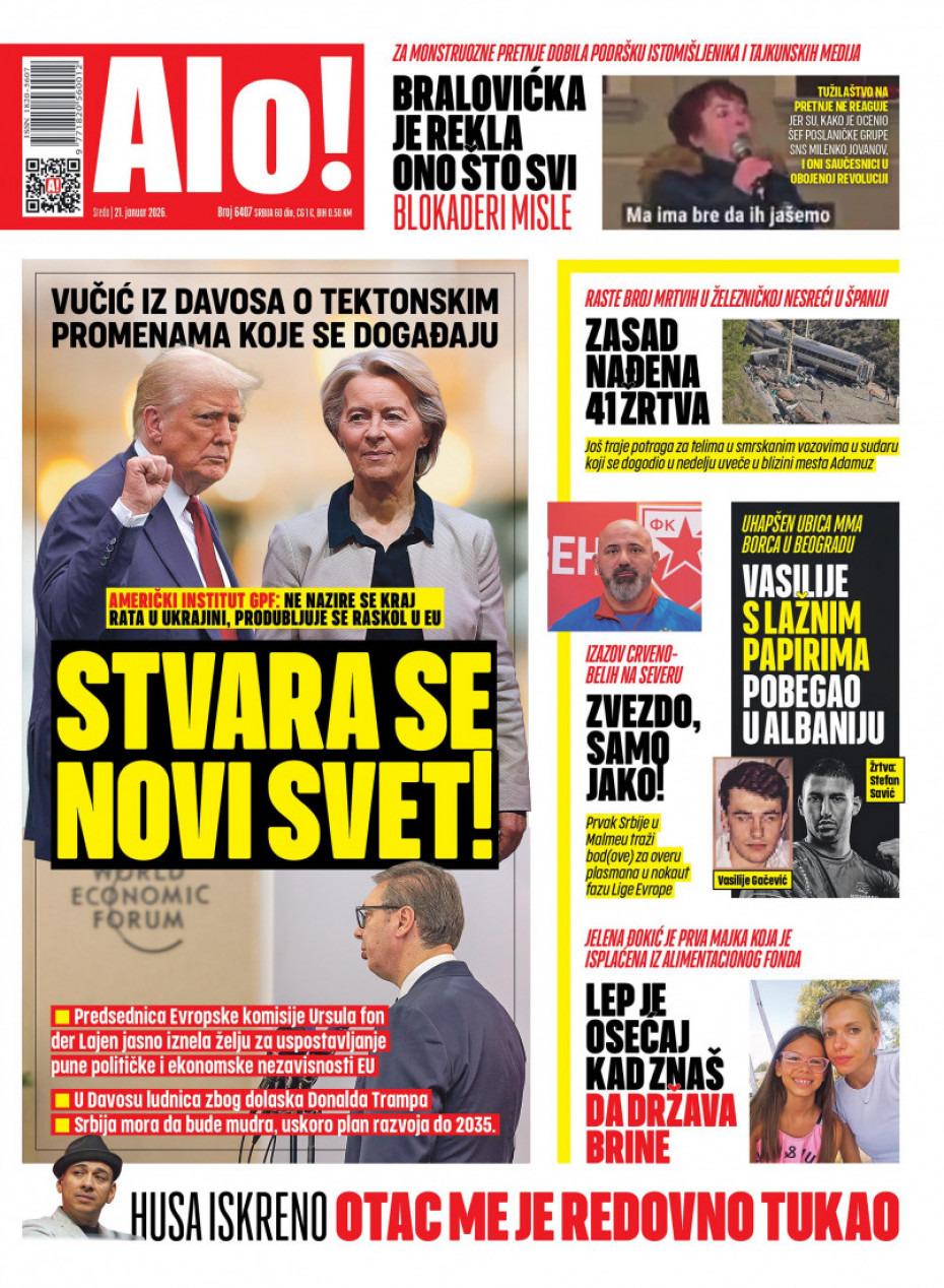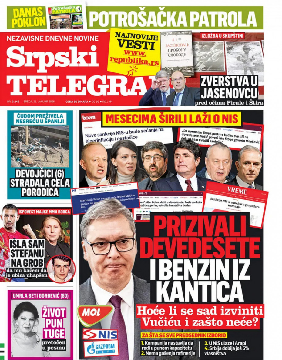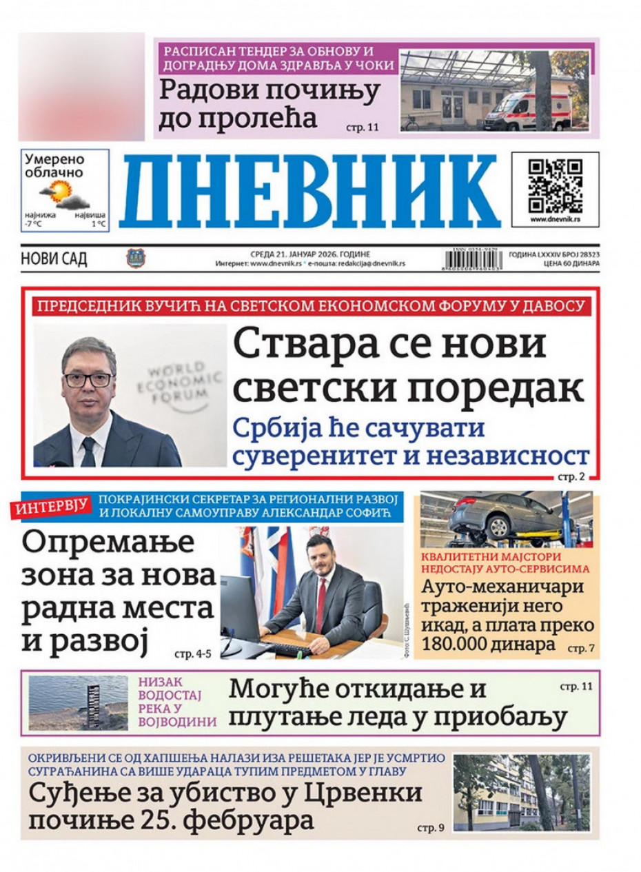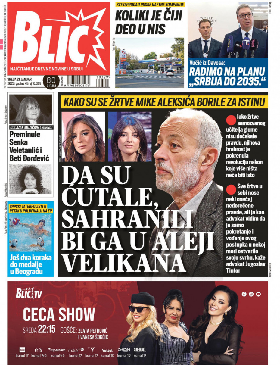 Pogledajte šta na naslovnim stranama donose dnevne novine u Srbiji u izdanju za sredu, 21. januar