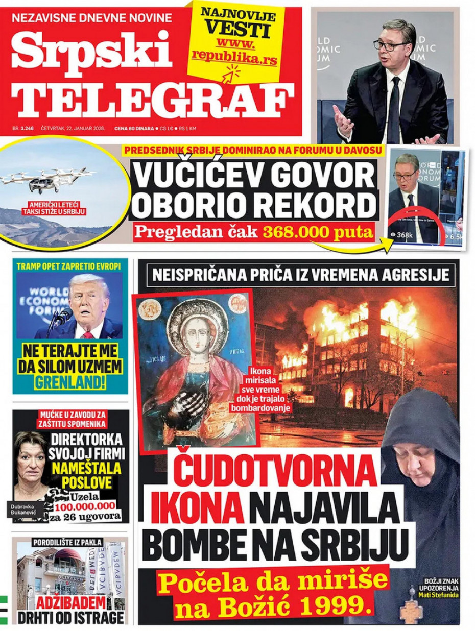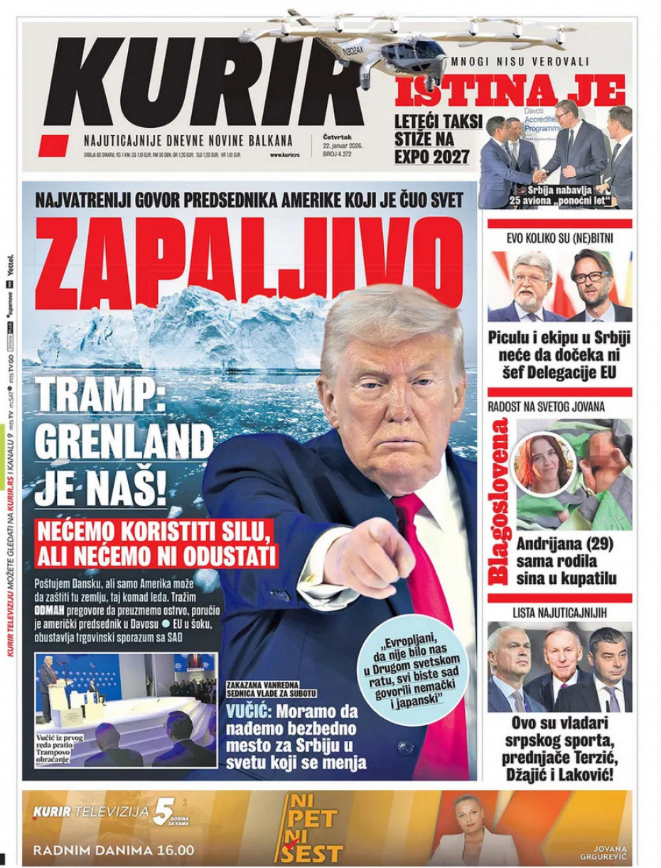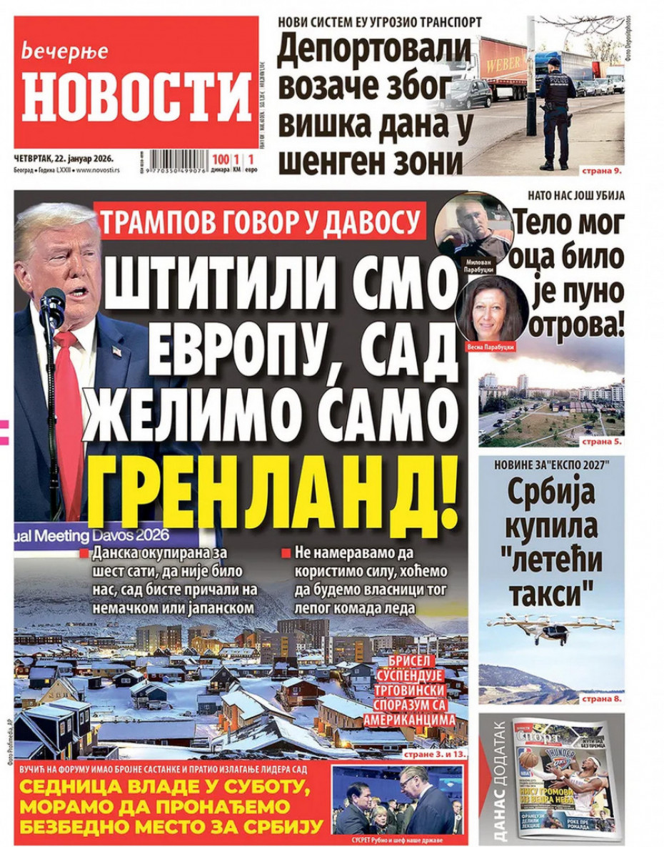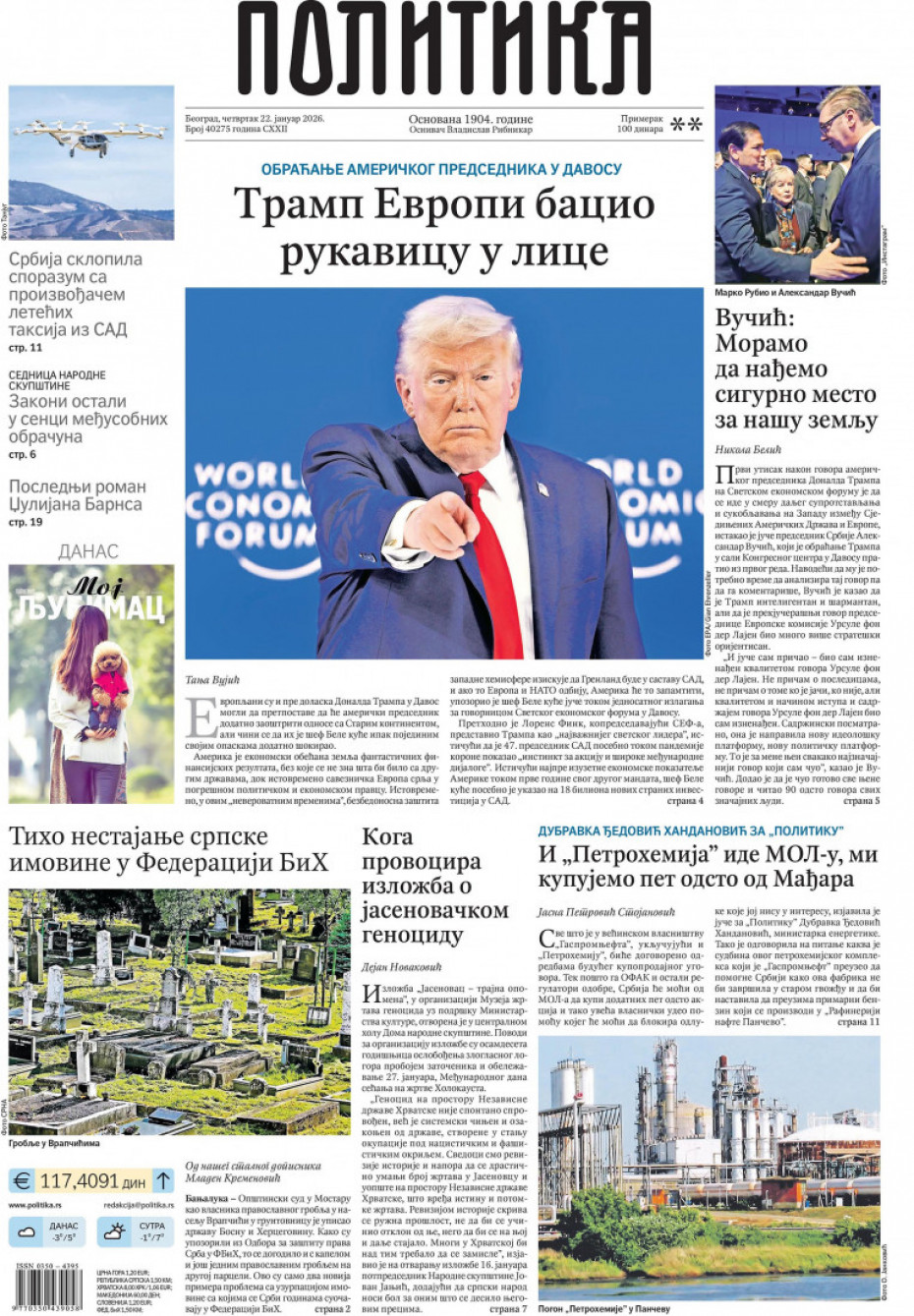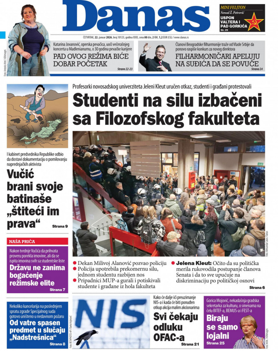 Naslovne strane dnevne štampe za četvrtak, 22. januar