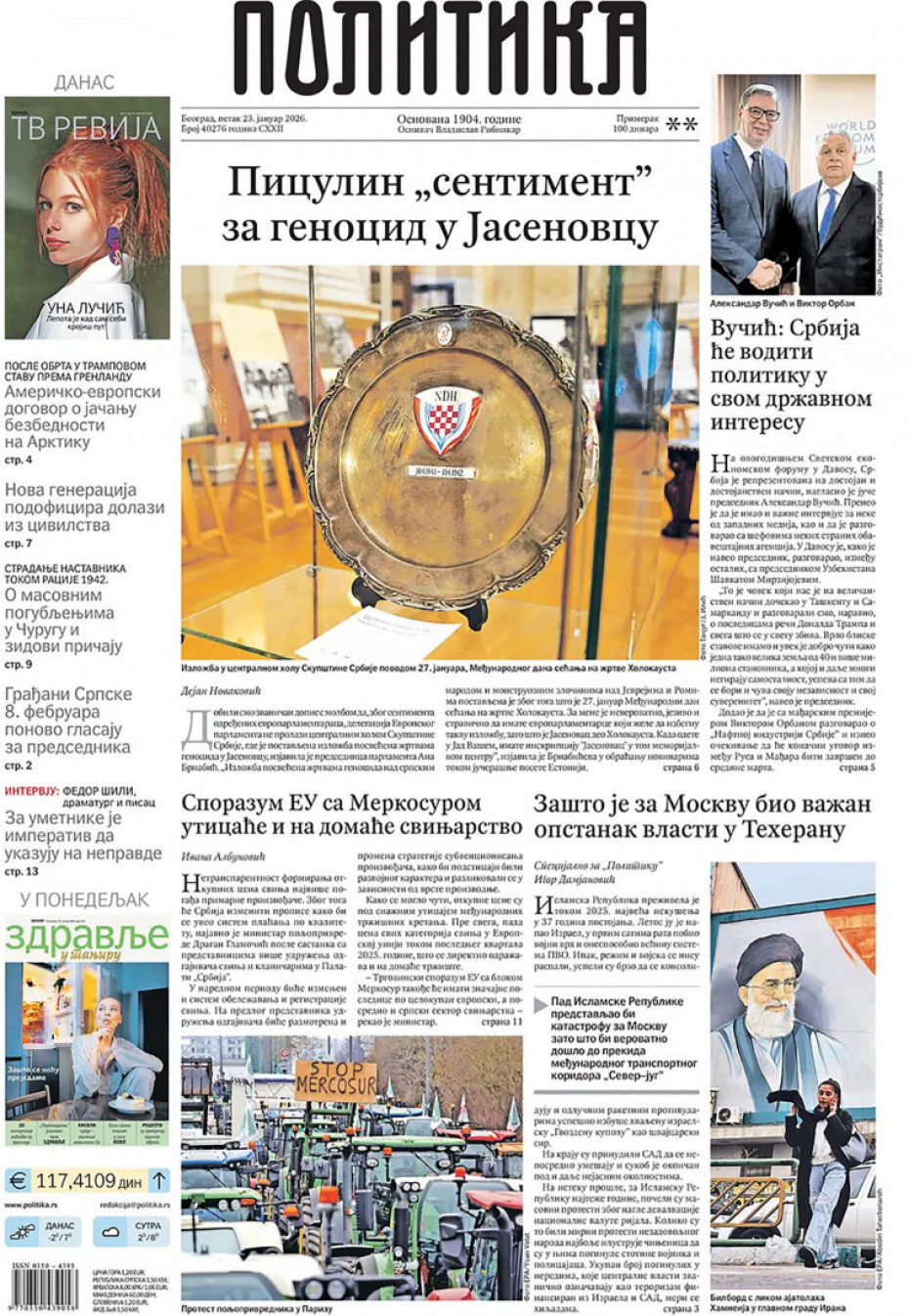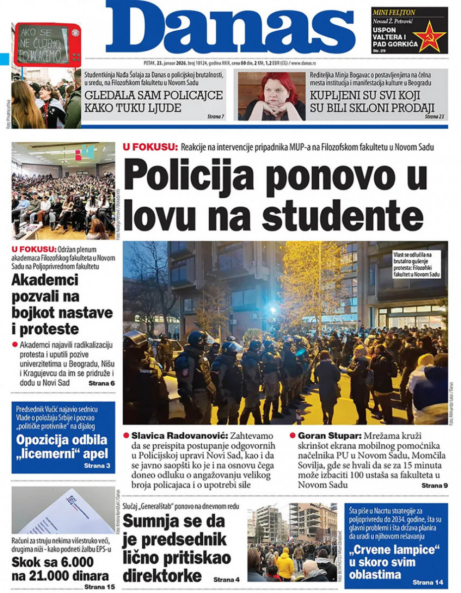 Naslovne strane dnevne štampe za petak, 23. januar