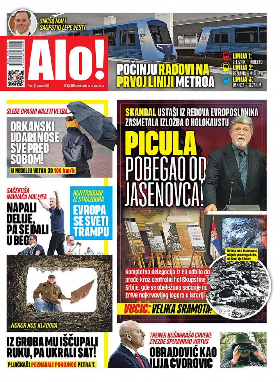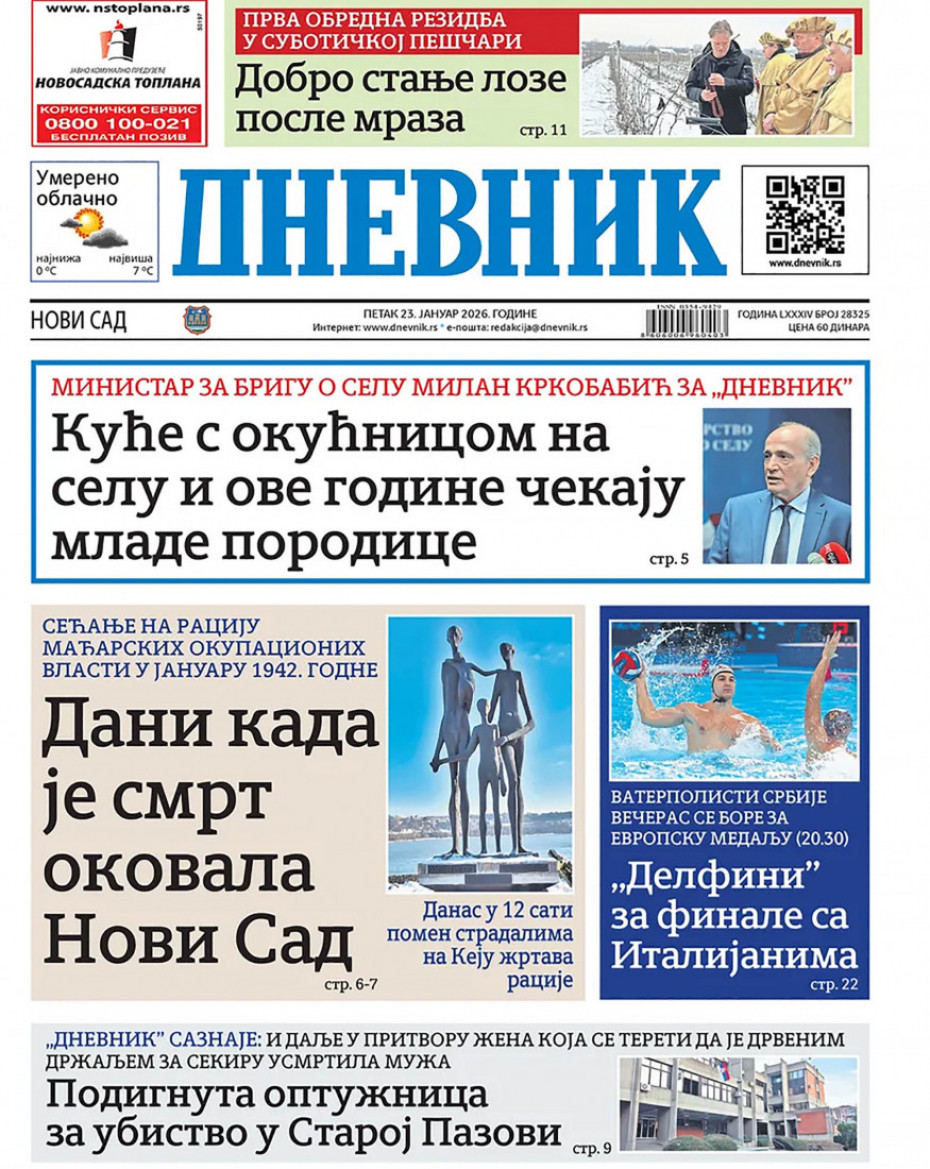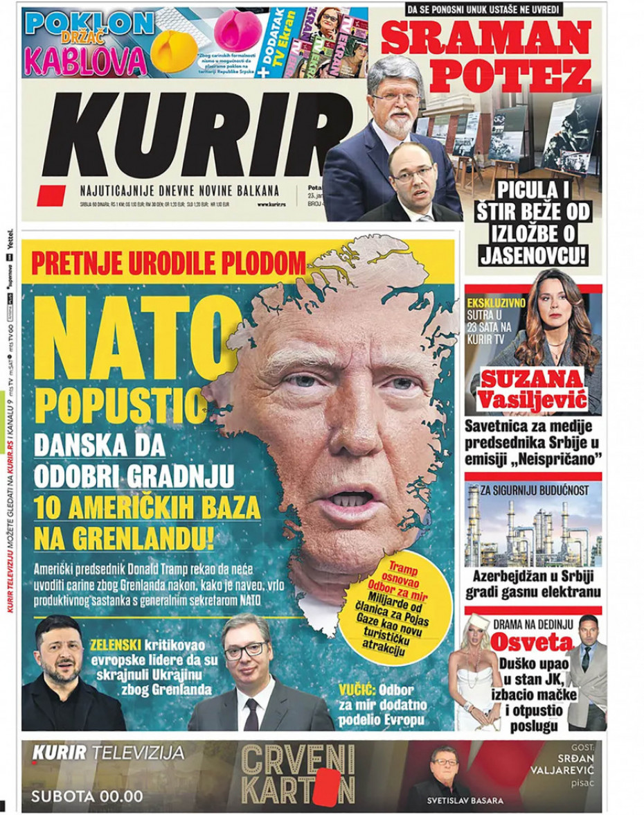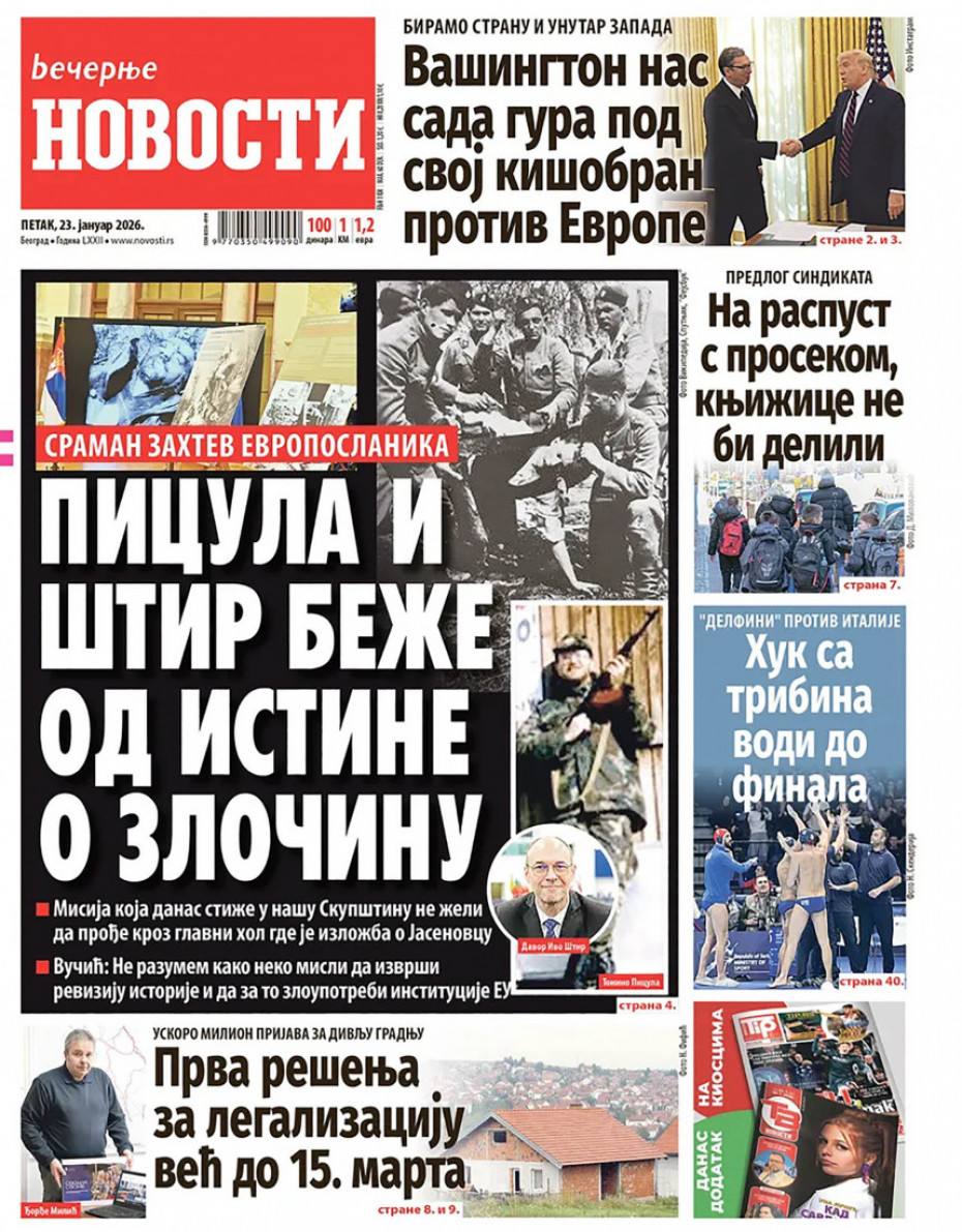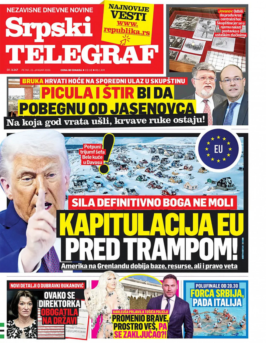 Pogledajte šta na naslovnim stranama donose dnevne novine u Srbiji u izdanju za petak, 23. januar