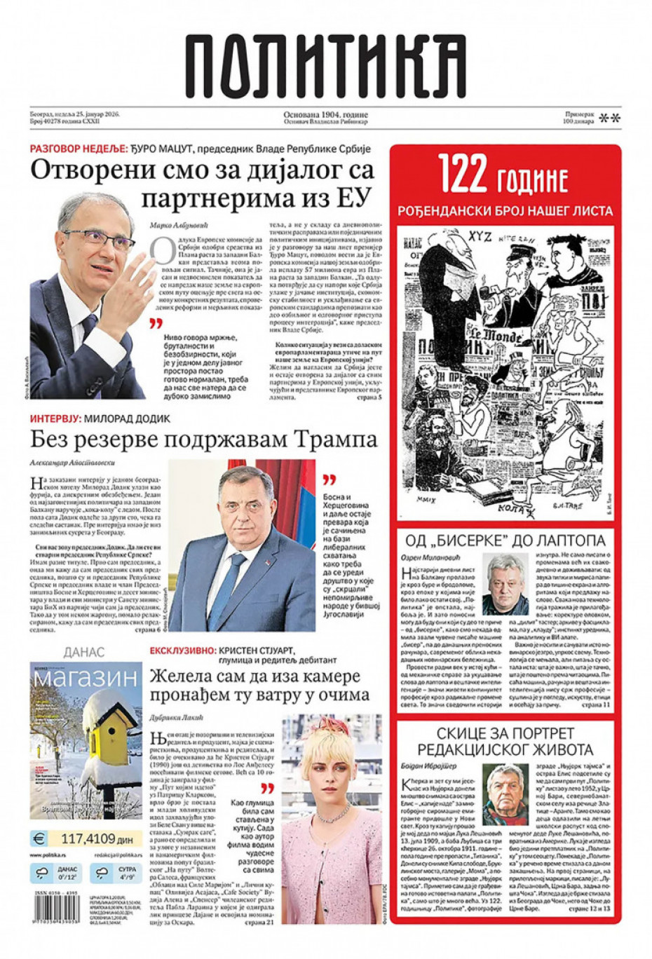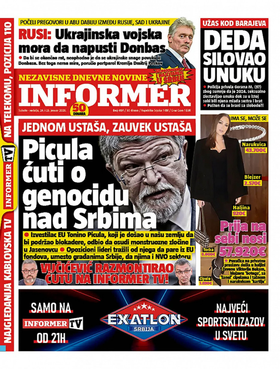 Politika Naslovne strane dnevne štampe za nedelju, 25. januar Pogledajte šta na naslovnim stranama donose dnevne novine u Srbiji u izdanju za nedelju, 25. januar 24/01/2026 20:31 https://www.euronews.rs/srbija/politika/207274/naslovne-strane-dnevne-stampe-za-nedelju-25-januar/vest pročitaj celu vest