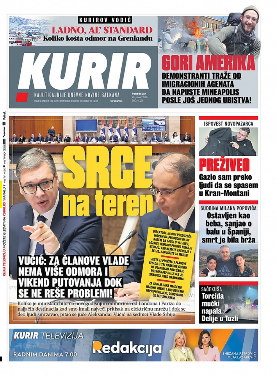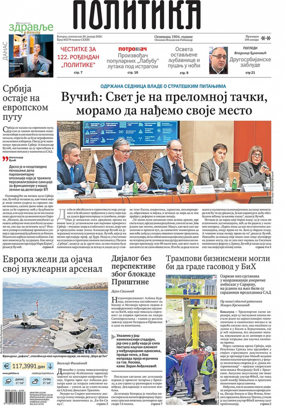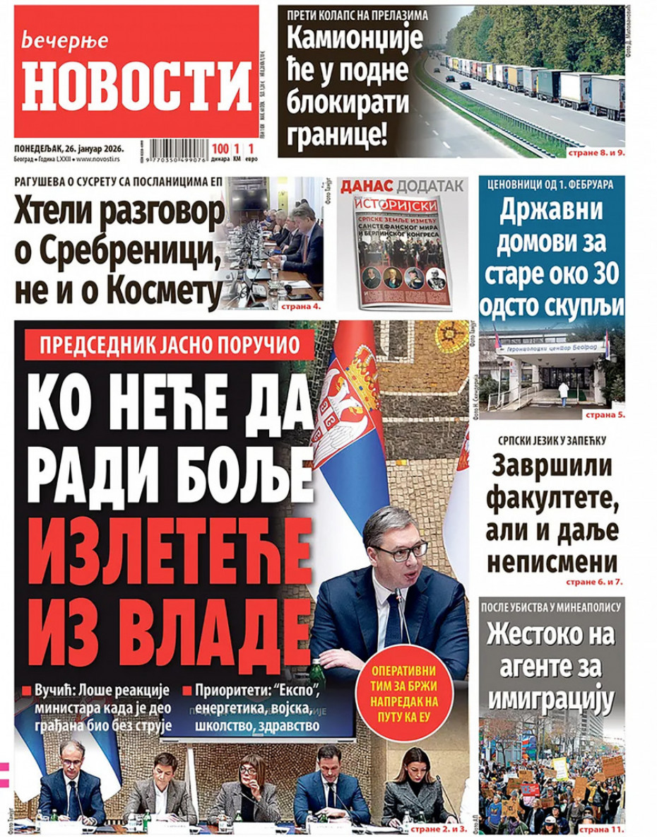 Naslovne strane dnevne štampe za ponedeljak, 26. januar