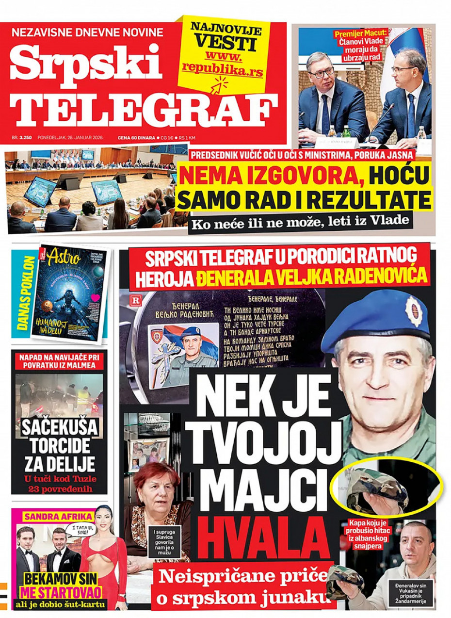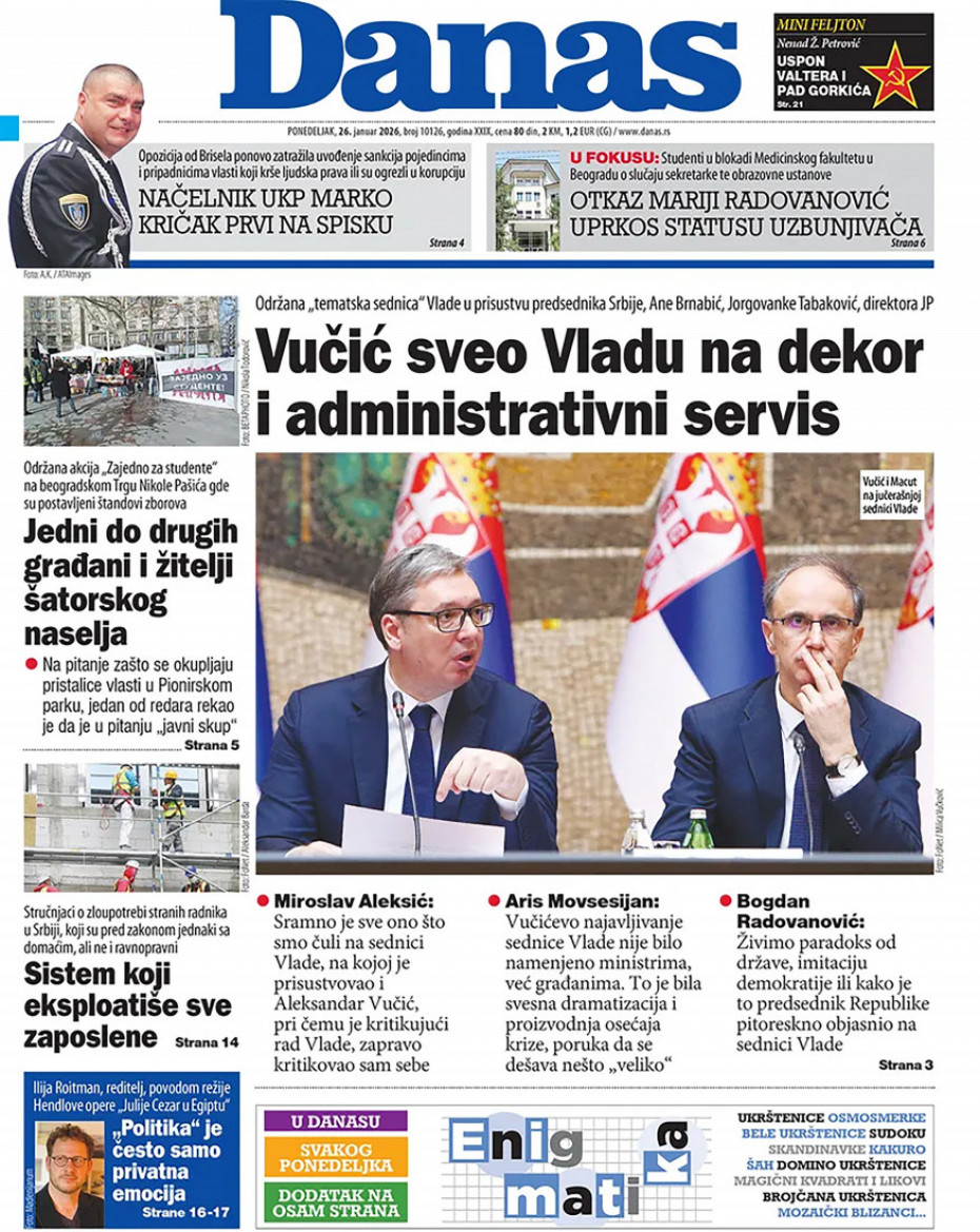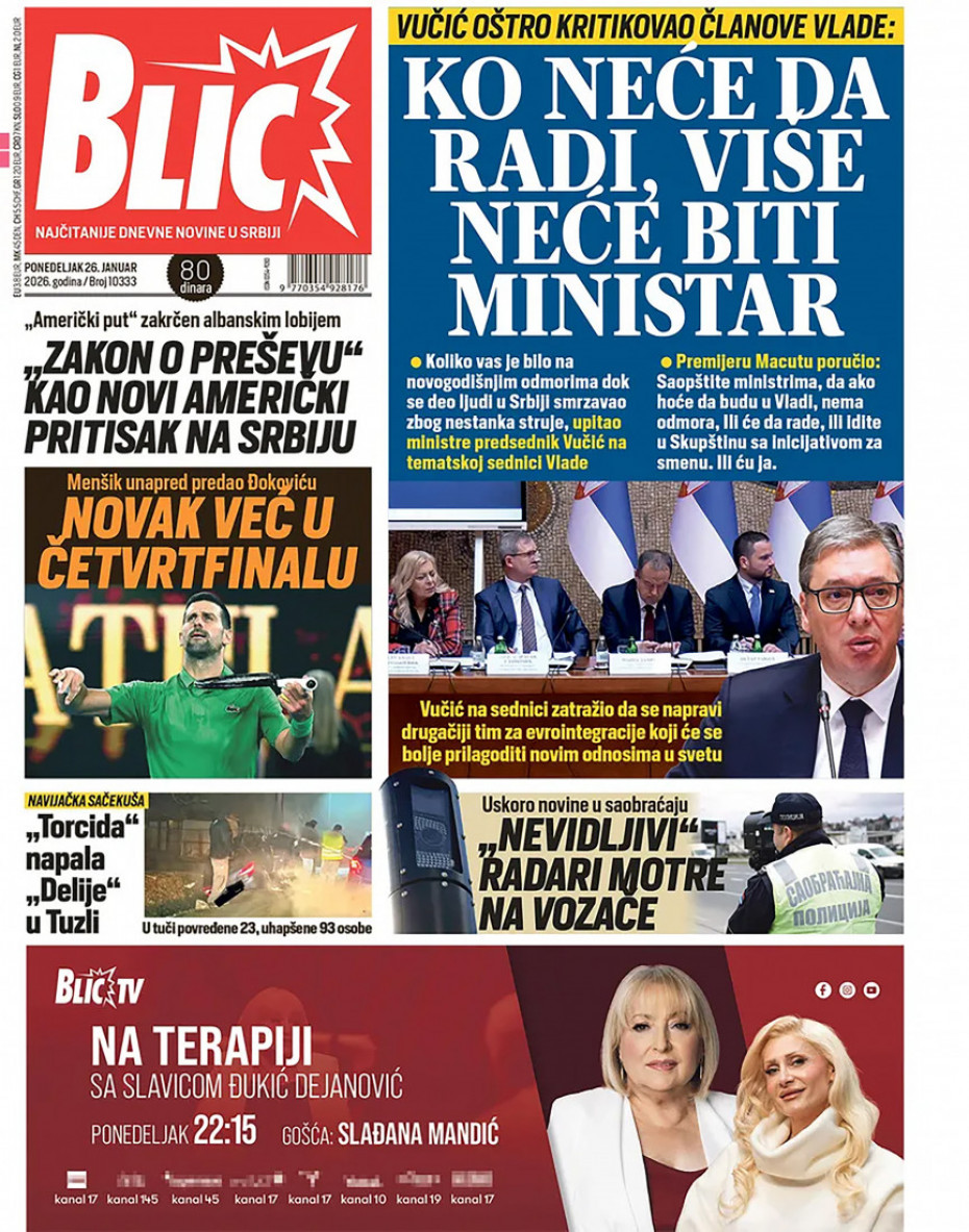 Naslovne strane dnevne štampe za ponedeljak, 26. januar