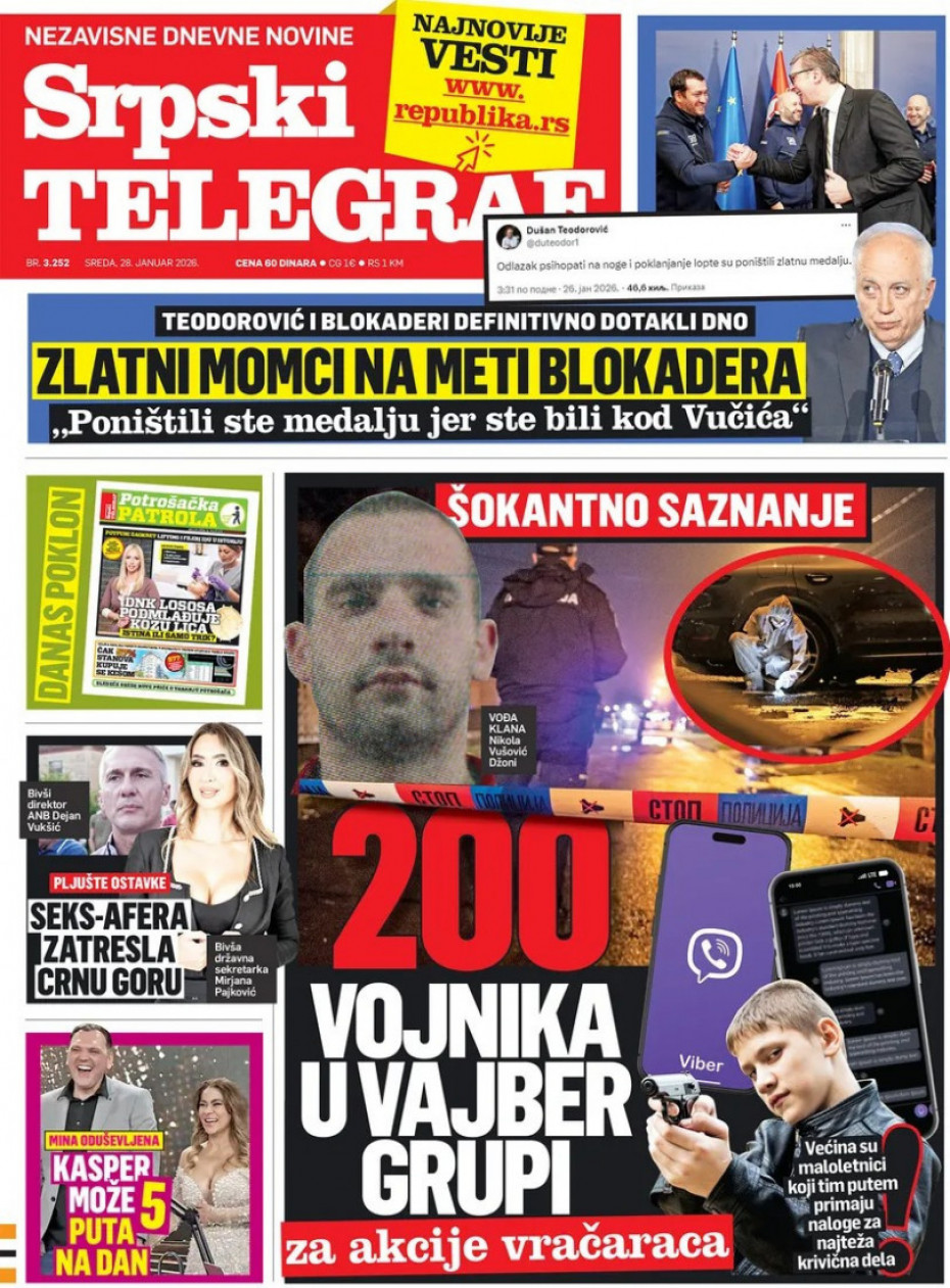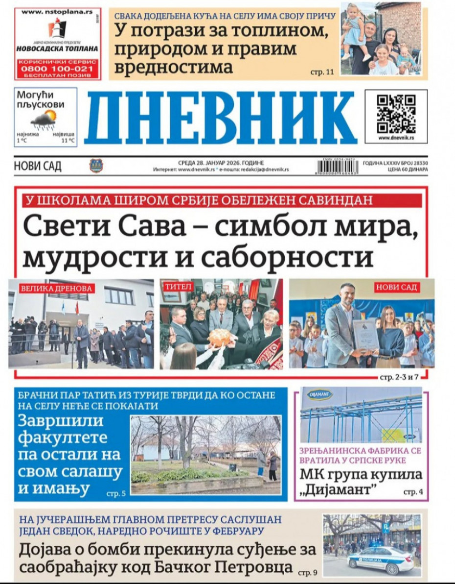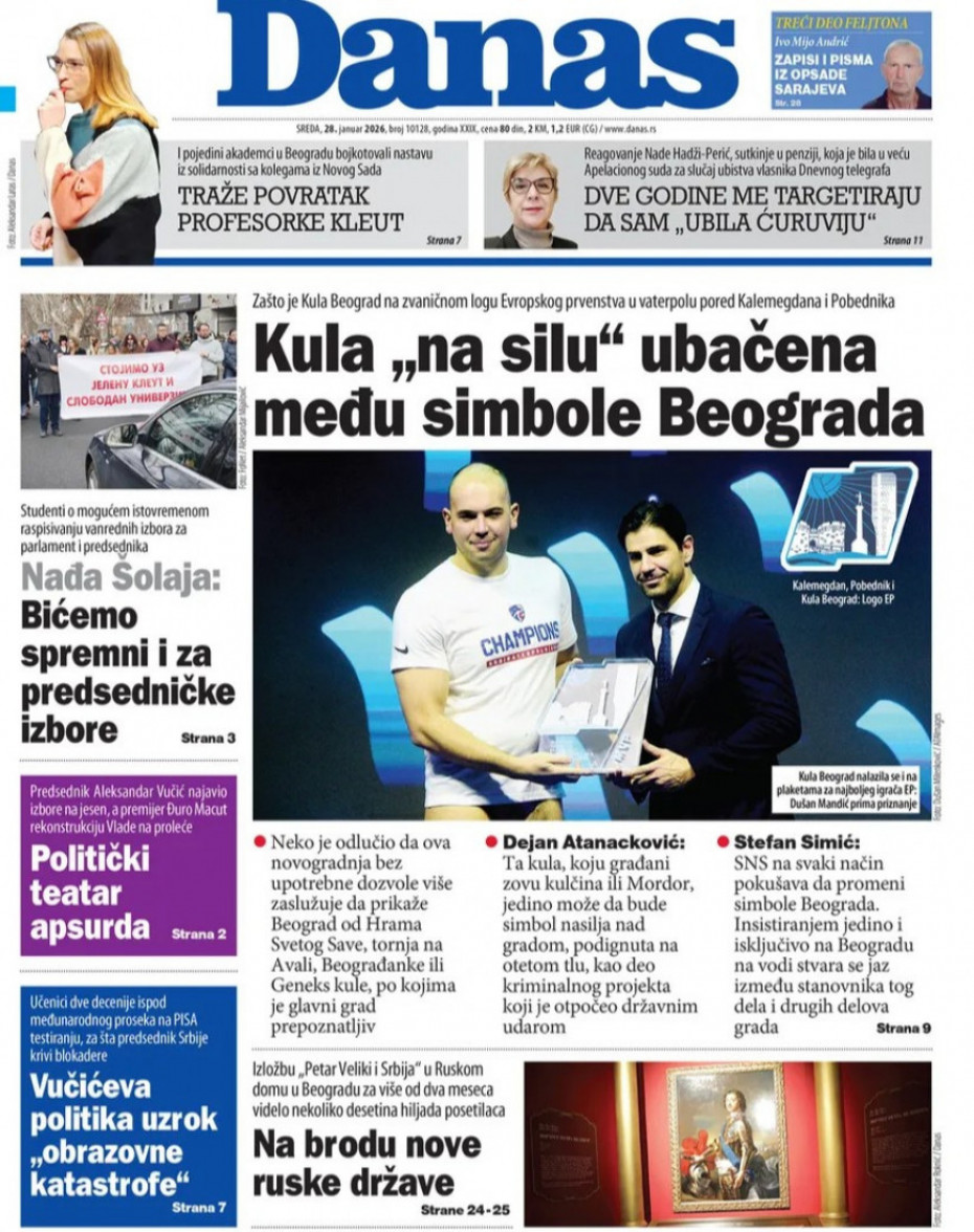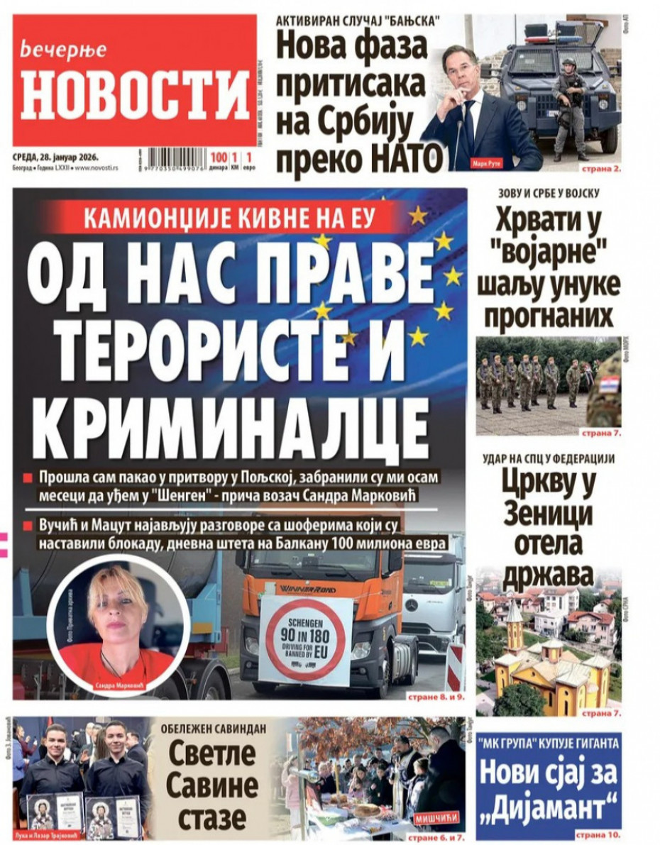 Pogledajte šta na naslovnim stranama donose dnevne novine u Srbiji u izdanju za sredu, 28. januar.