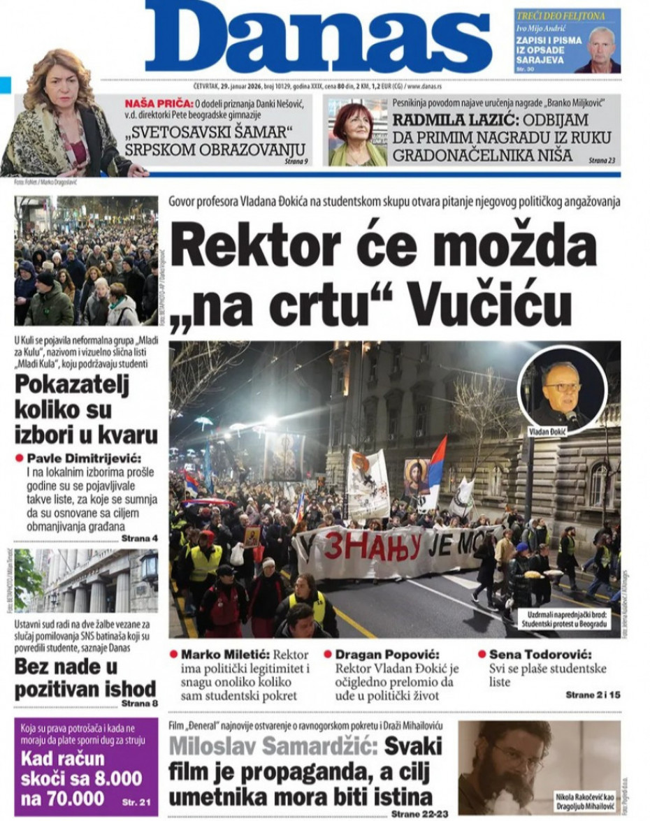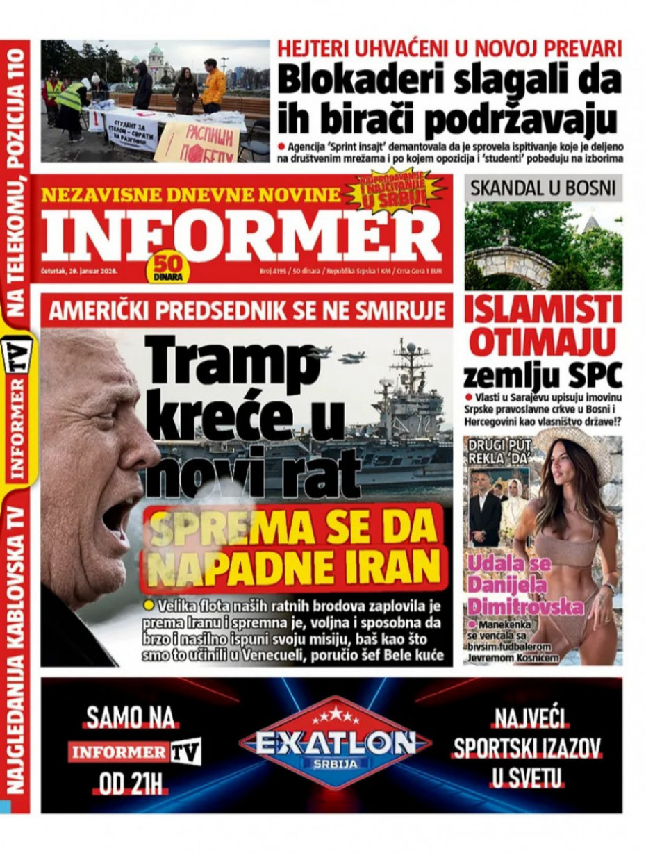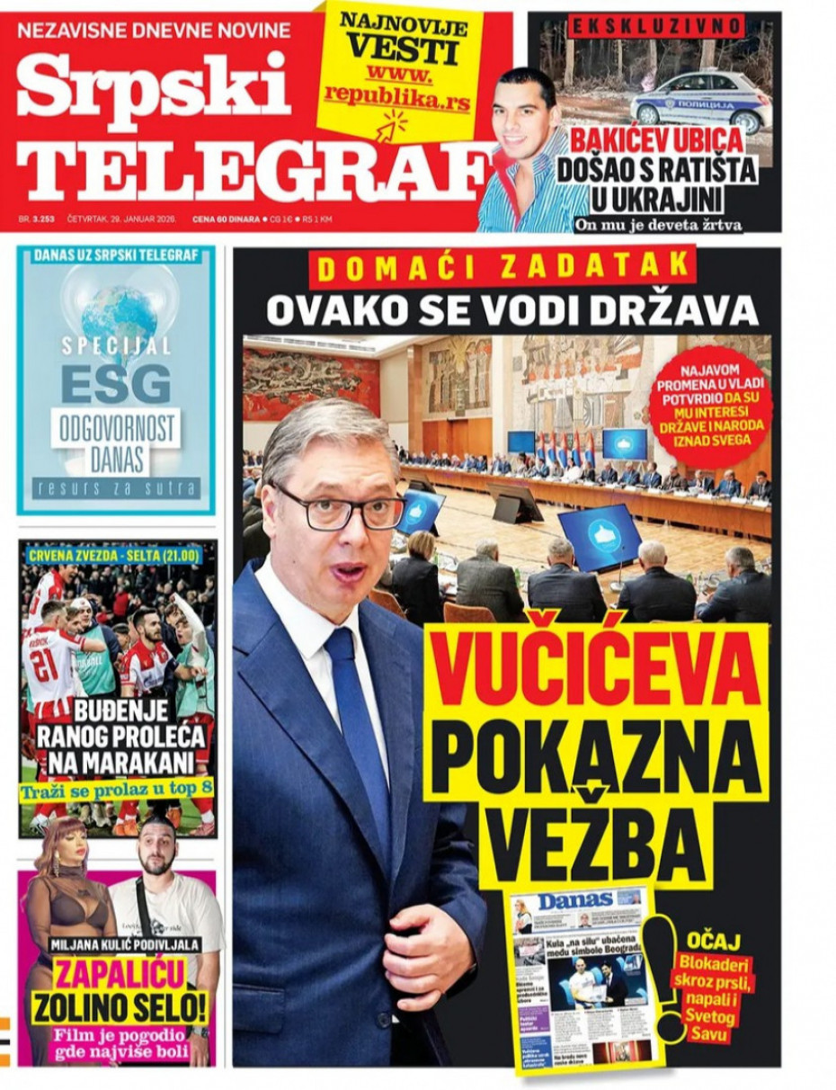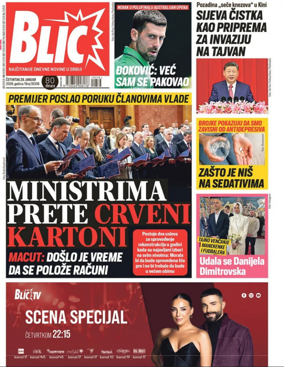 Pogledajte šta na naslovnim stranama donose dnevne novine u Srbiji u izdanju za četvrtak, 29. januar