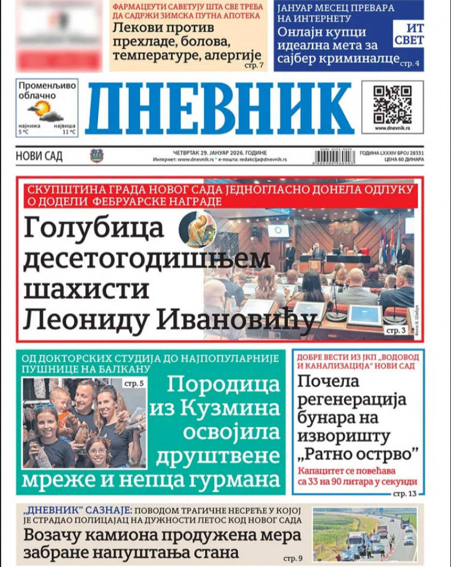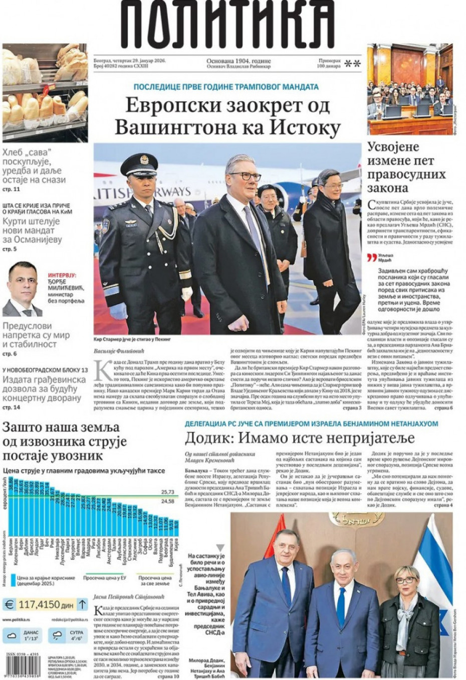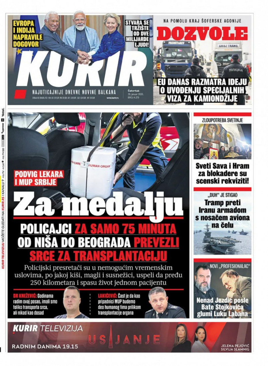 Pogledajte šta na naslovnim stranama donose dnevne novine u Srbiji u izdanju za četvrtak, 29. januar