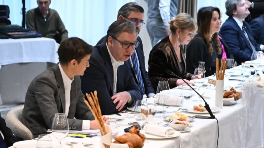 "Otvoren i sadržajan razgovor sa ambasadorima zemalja članica EU o evropskom putu Srbije, reformama koje sprovodimo i izazovima sa kojima se suočavamo.Srbija ostaje posvećena dijalogu, stabilnosti i odgovornom pristupu, uz jasnu želju da svojim radom i rezultatima pokaže da je pouzdan partner Evropskoj uniji", naveoje Vučić u objavi na Instagramu i dodao: