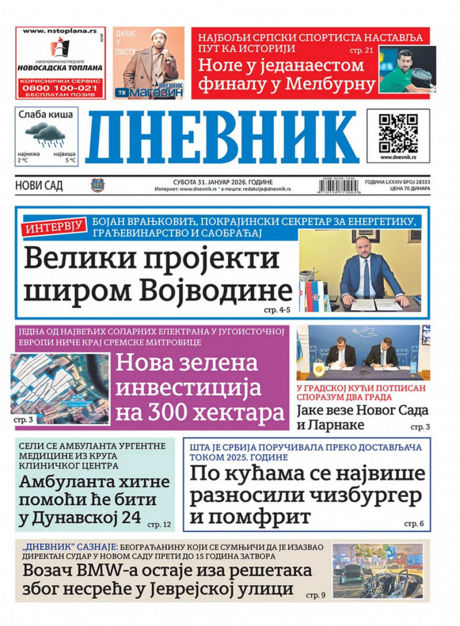 Pogledajte šta na naslovnim stranama donose dnevne novine u Srbiji u izdanju za subotu, 31. decembar.