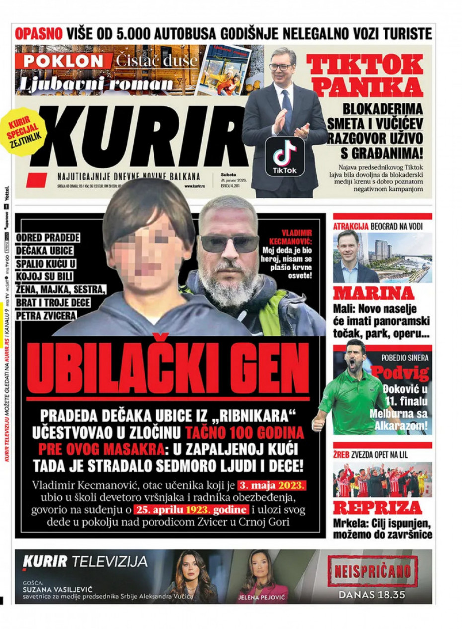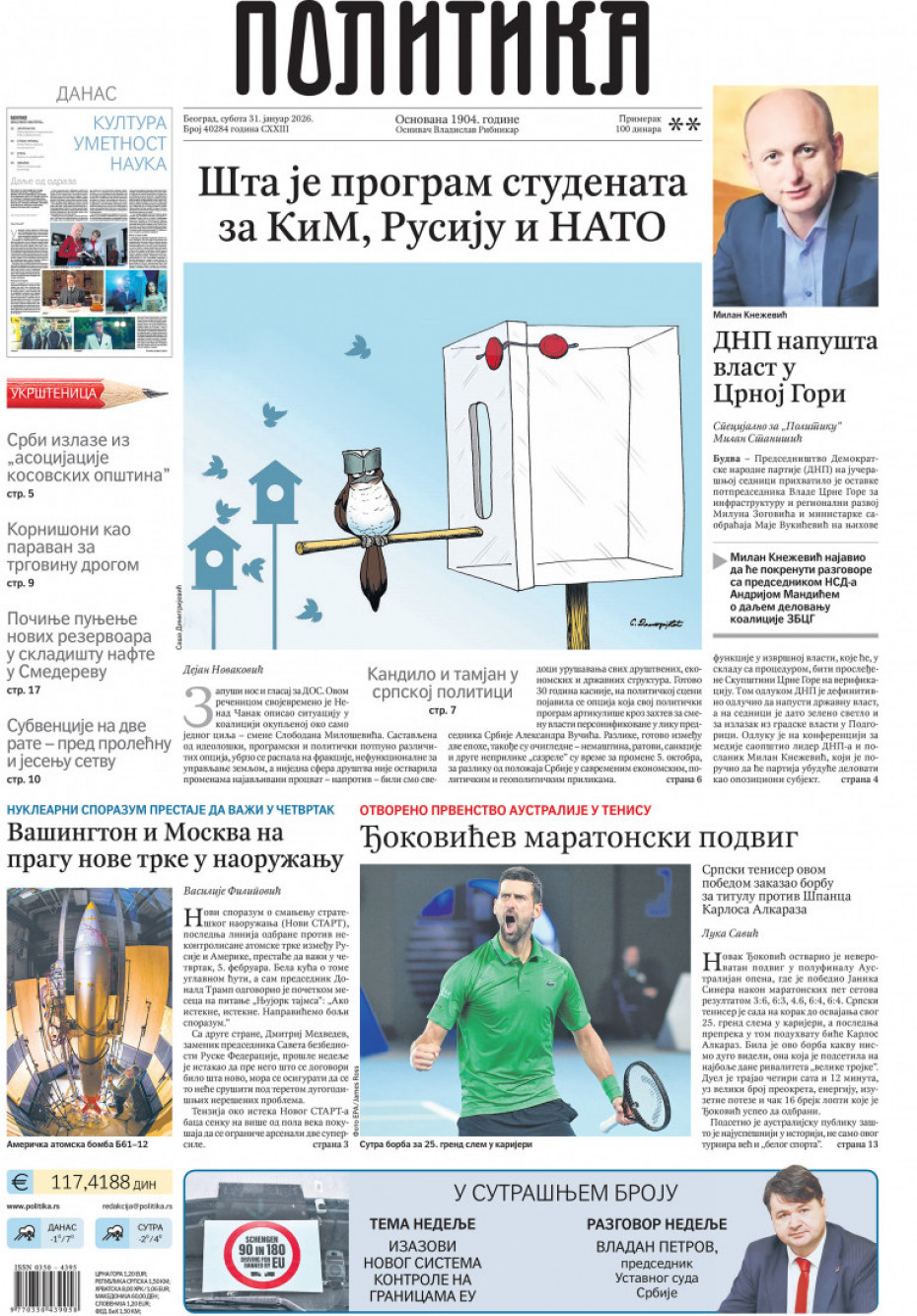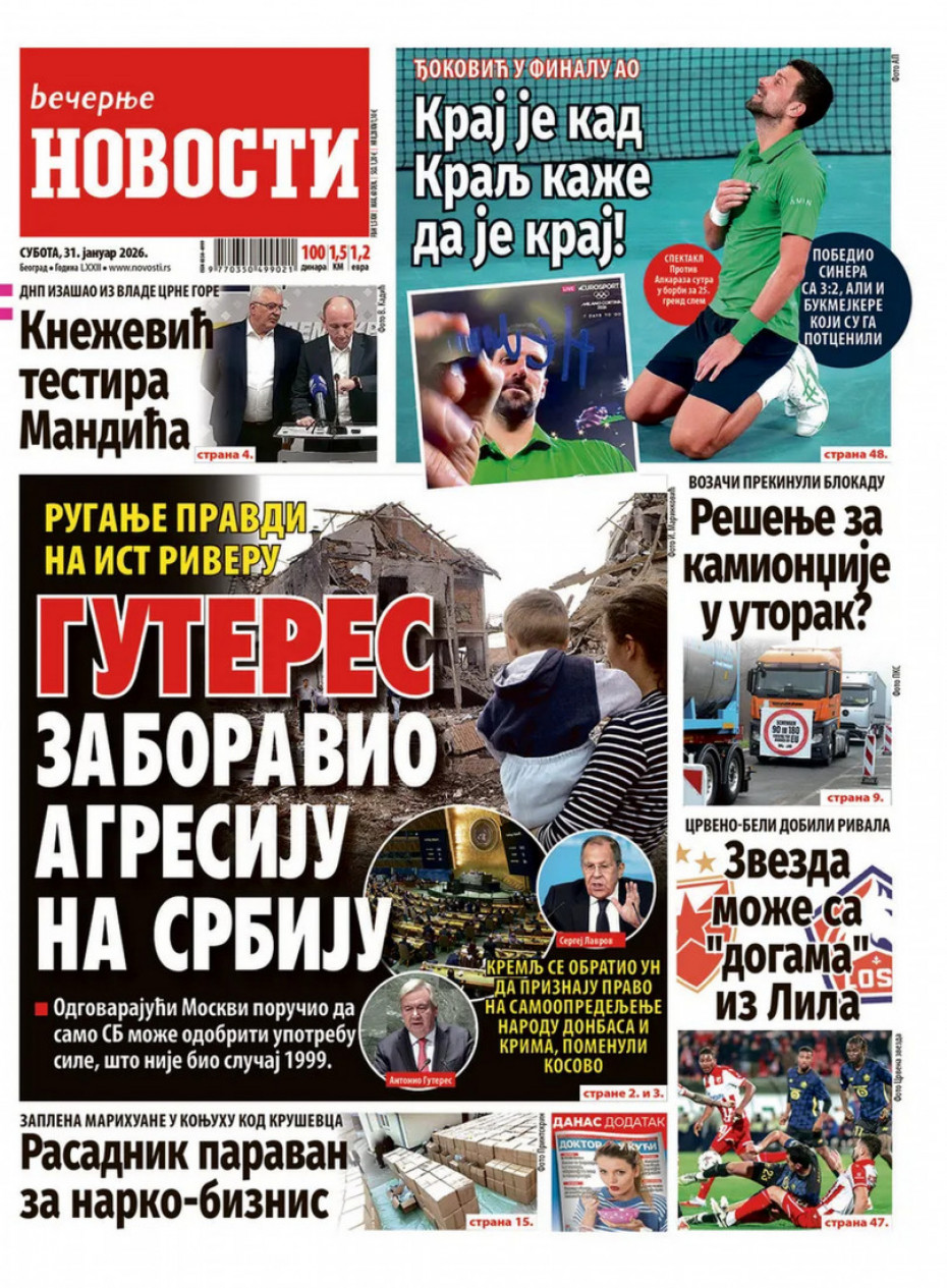 Naslovne strane dnevne štampe za subotu, 31. januar