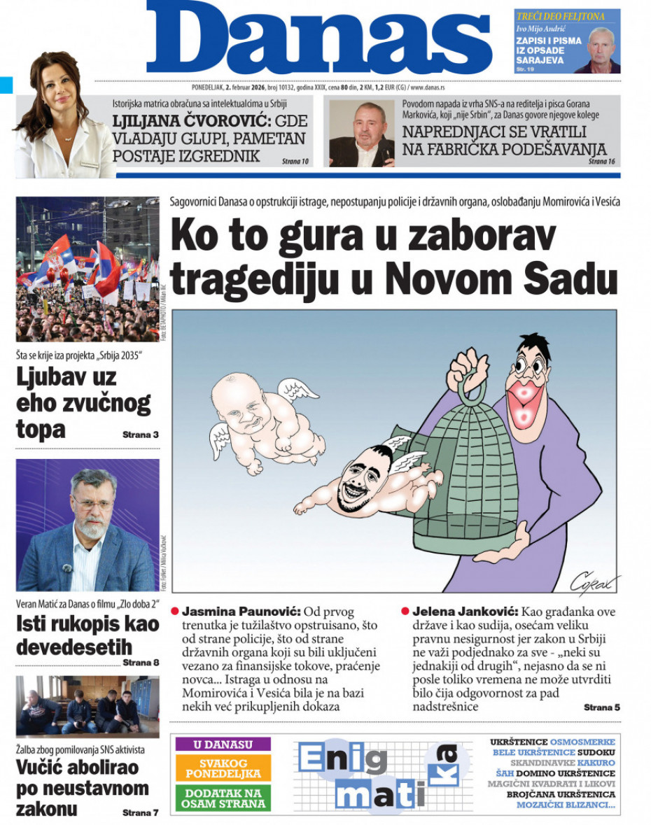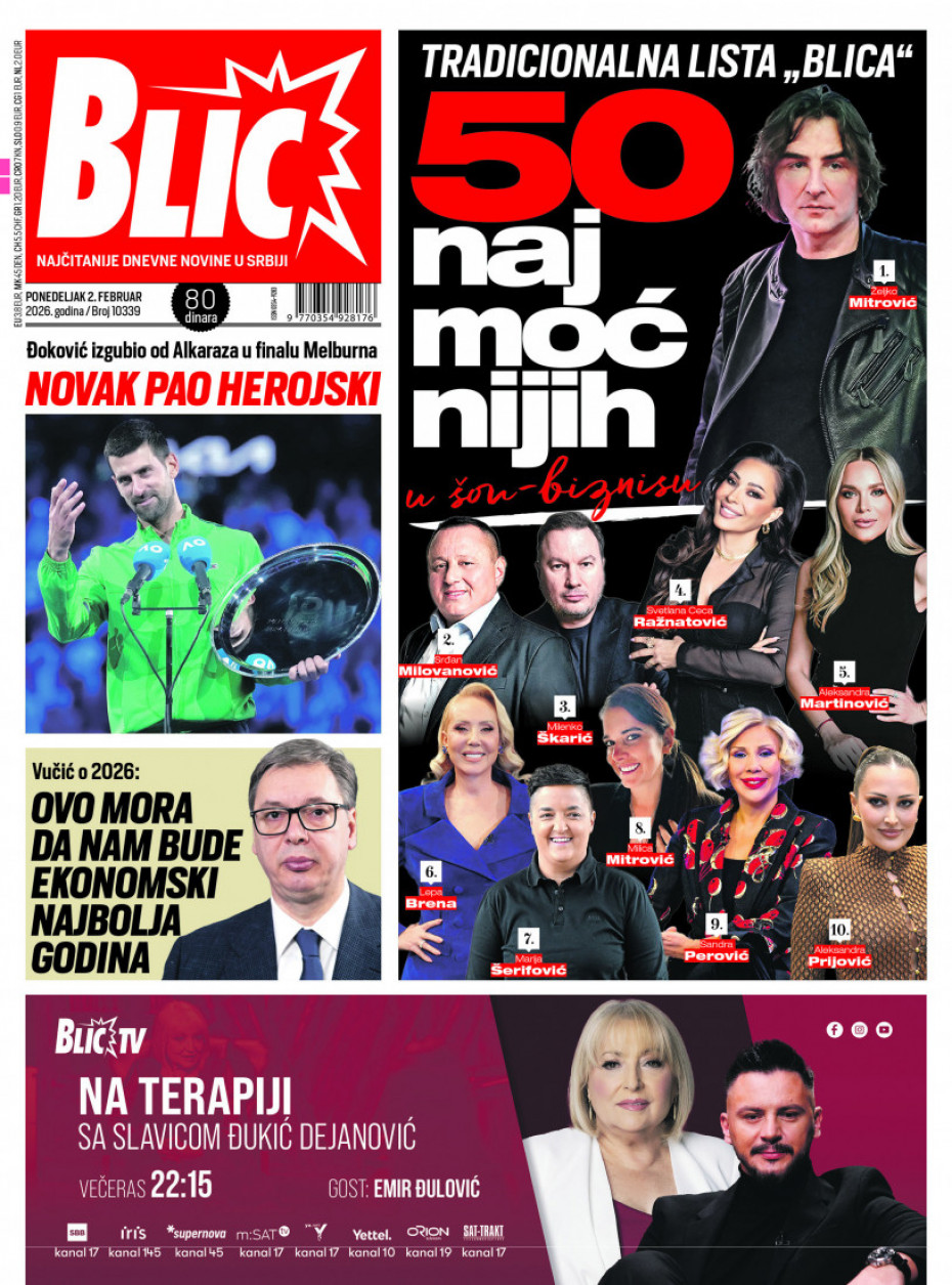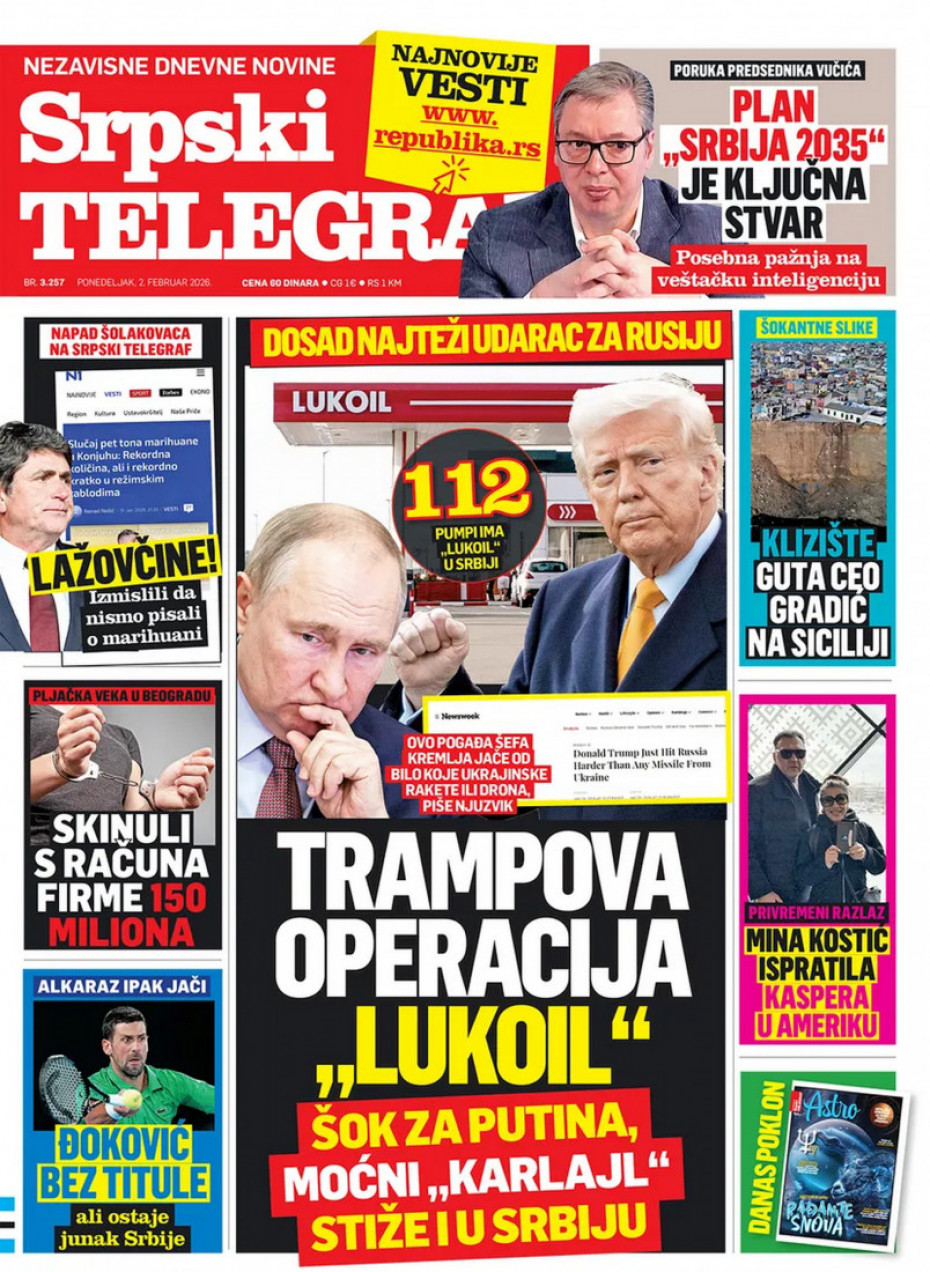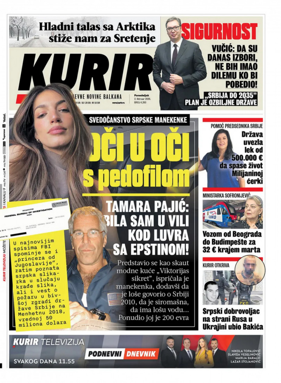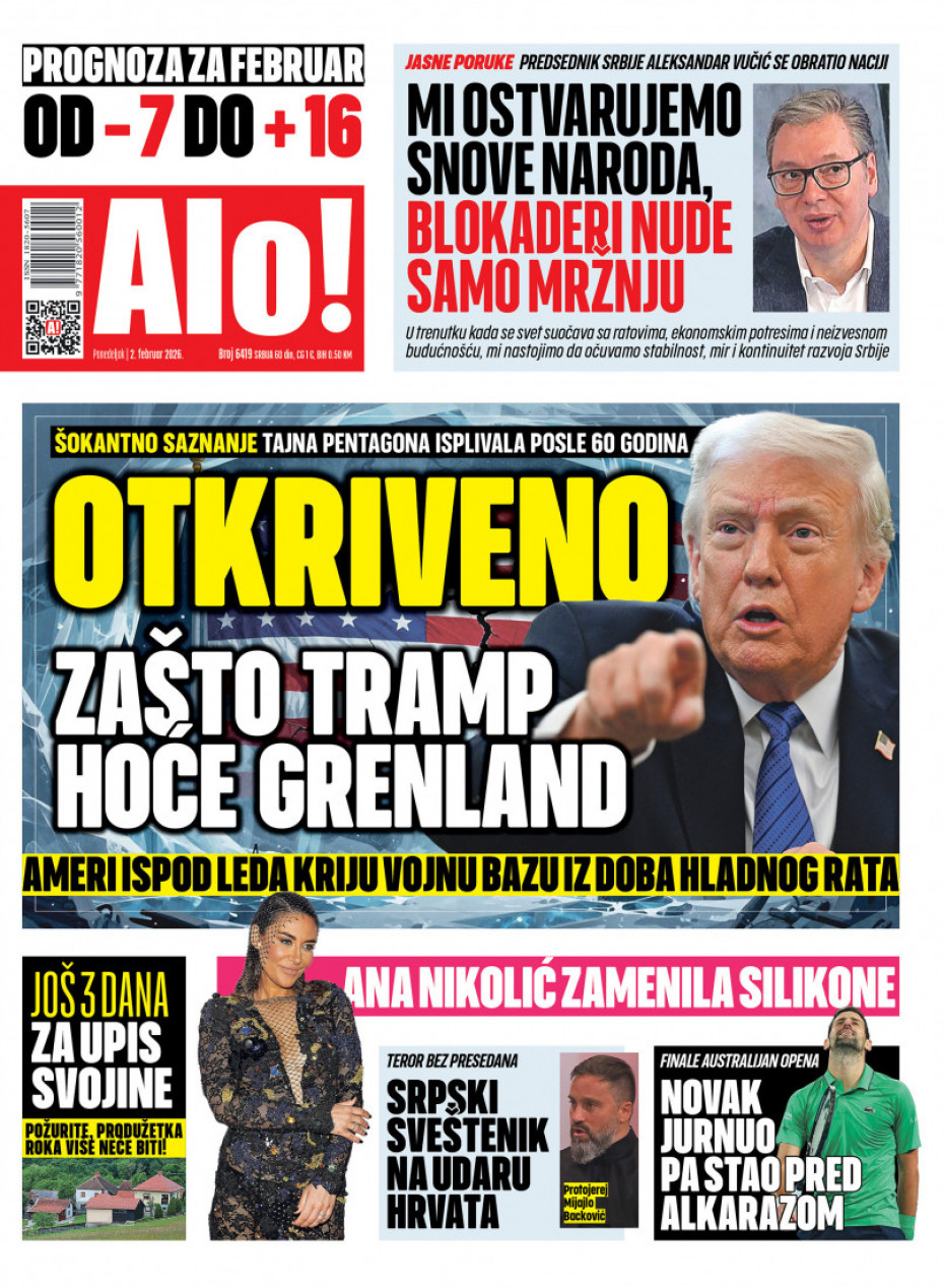 Pogledajte šta na naslovnim stranama donose dnevne novine u Srbiji u izdanju za ponedeljka, 2. februar