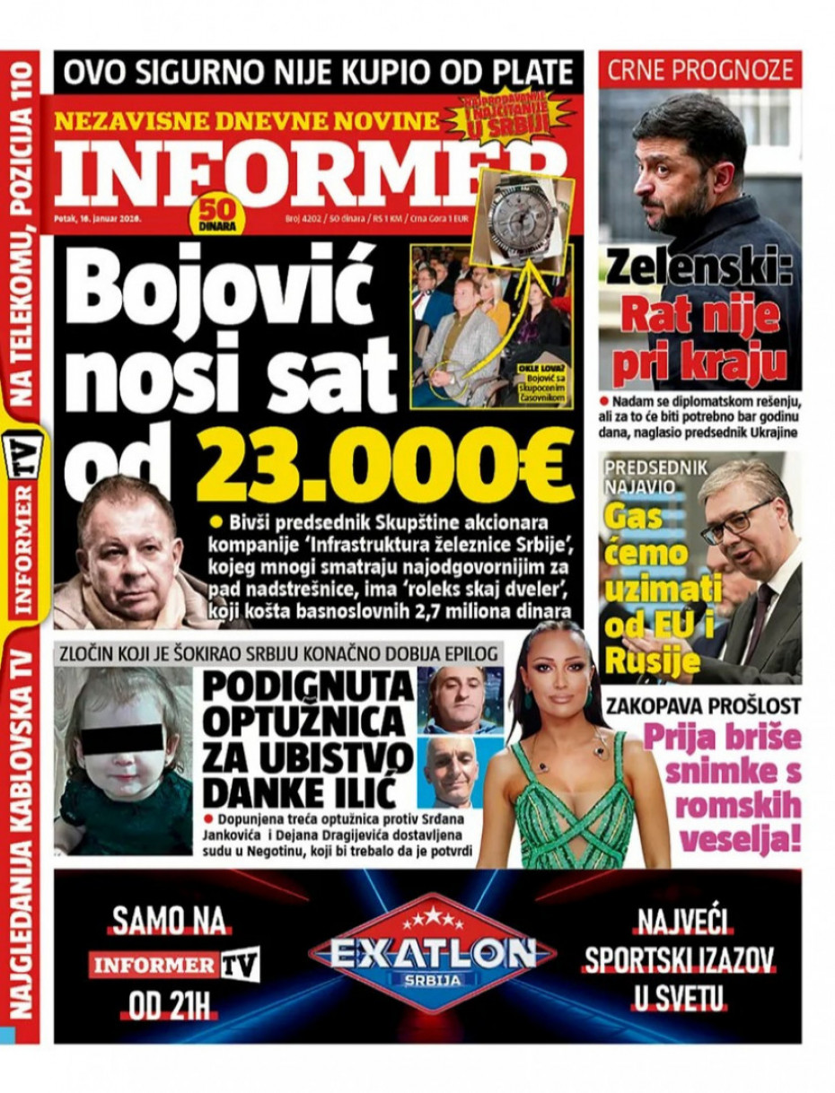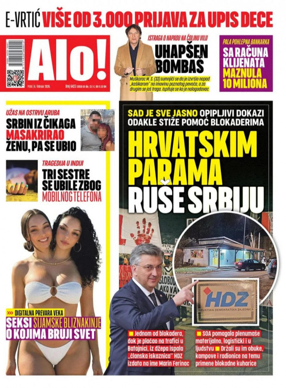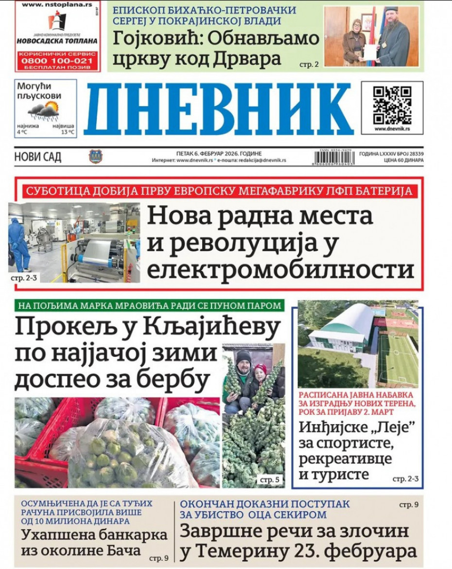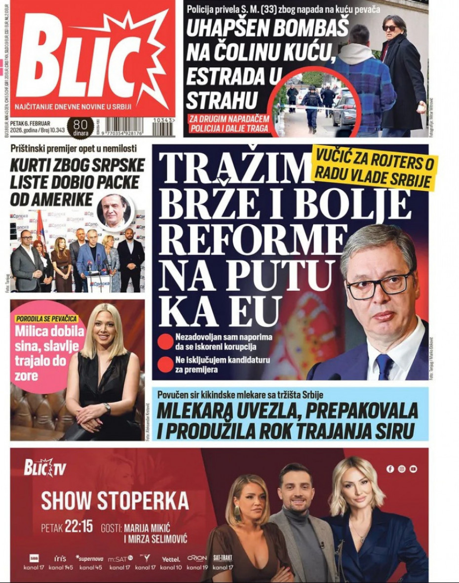 Pogledajte šta na naslovnim stranama donose dnevne novine u Srbiji u izdanju za petak, 6. februar