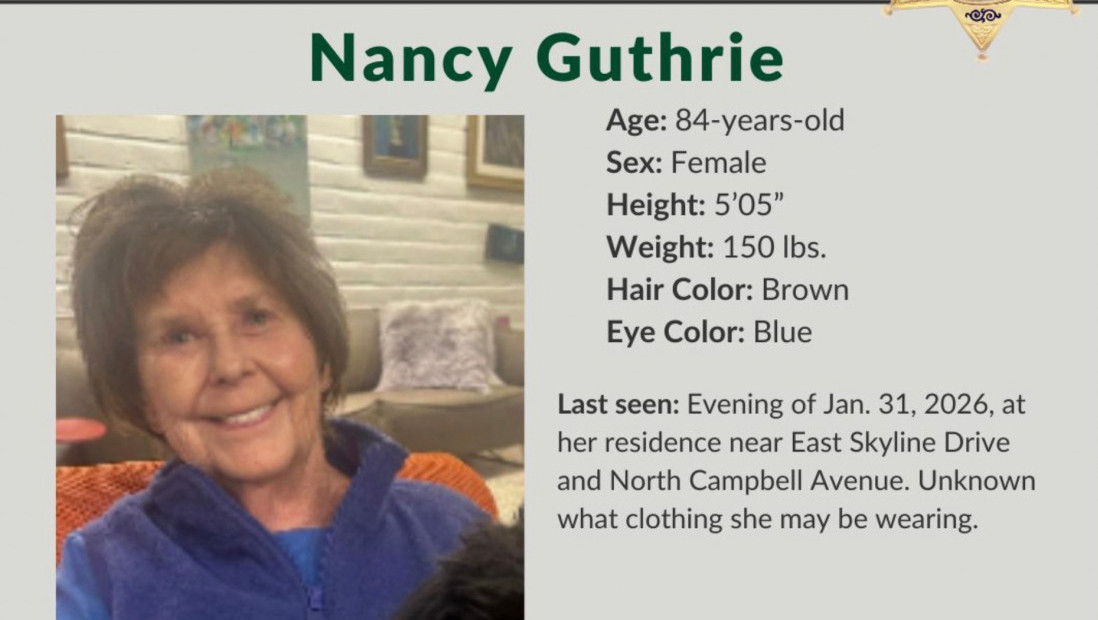 Nensi Gatri, 84-godišnja majka televizijske voditeljke Savane Gatri, i dalje se vodi kao nestala dok traje intenzivna potraga u Tusonu, u Arizoni, saopštio je šerif okruga Pima, Kris Nanos.
