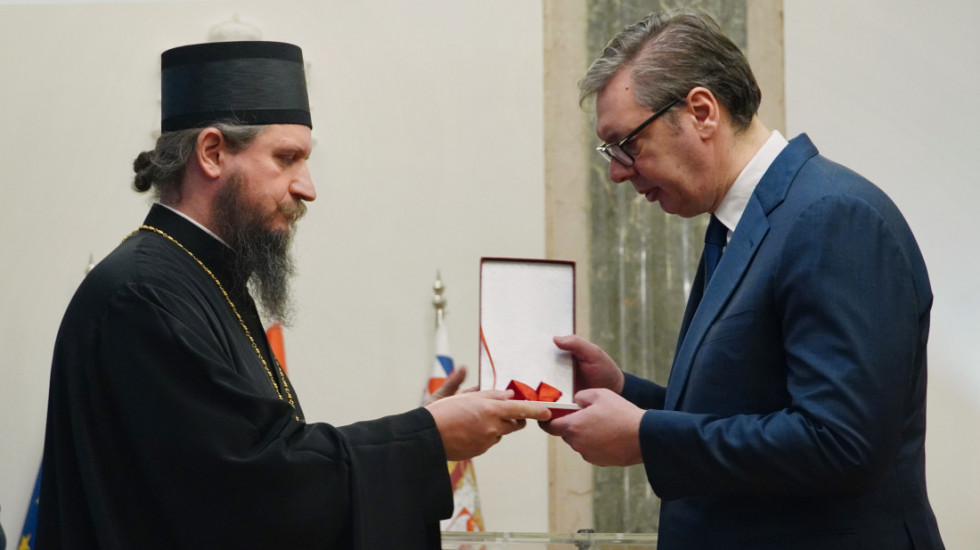 Predsednik Srbije Aleksandar Vučić izjavio je danas da Orden Novomučenika bihaćko-petrovačkih, koji mu je uručio episkop bihaćko-petrovački Sergije, ne prima kao lično uzvišenje, nego kao pečat duhovnog zajedništva i istakao da je taj orden poziv na još veću odgovornost.