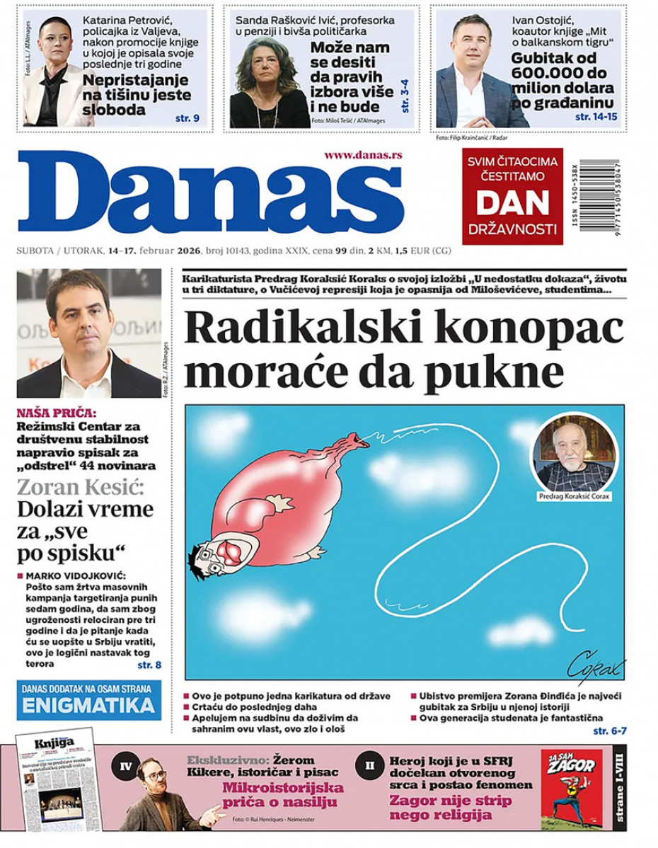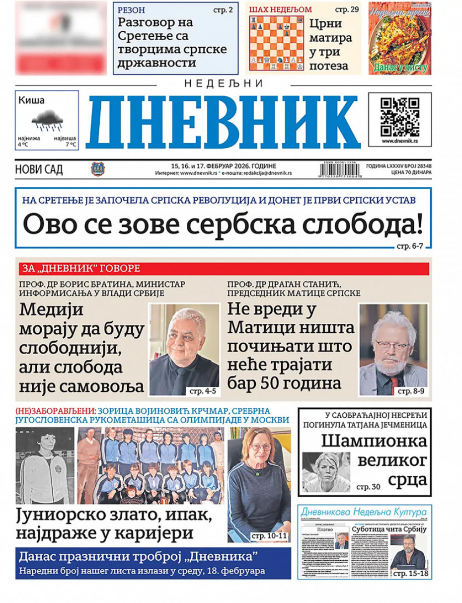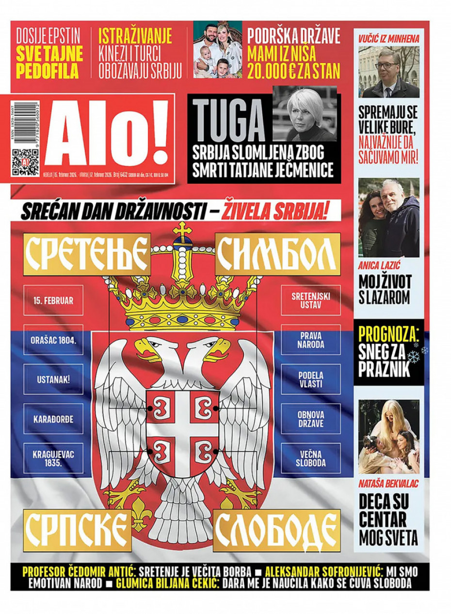 Pogledajte šta na naslovnim stranama donose dnevne novine u Srbiji u izdanju za za nedelju 15. februar.