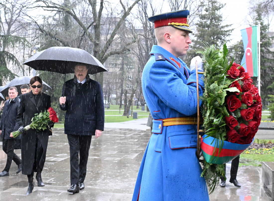 Supruga predsednika Azerbejdžana Mehriban Alijeva položila je na oba spomenika bukete cveća.