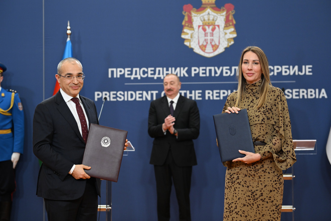 Sporazumi i memorandumi su razmenjeni u prisustvu predsednika Srbije Aleksandra Vučića i predsednika Azerbejdžana Ilhama Alijeva.