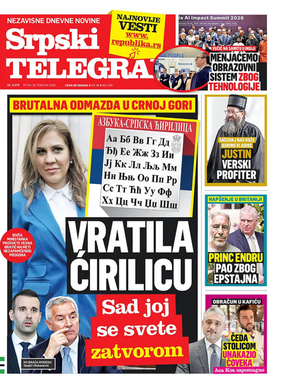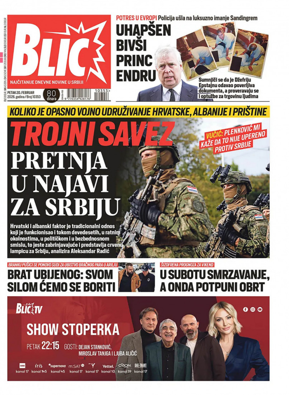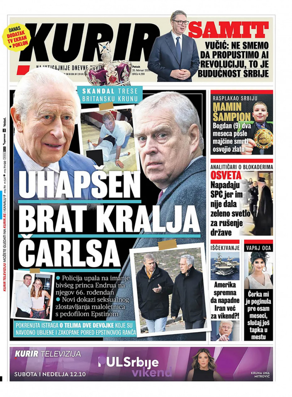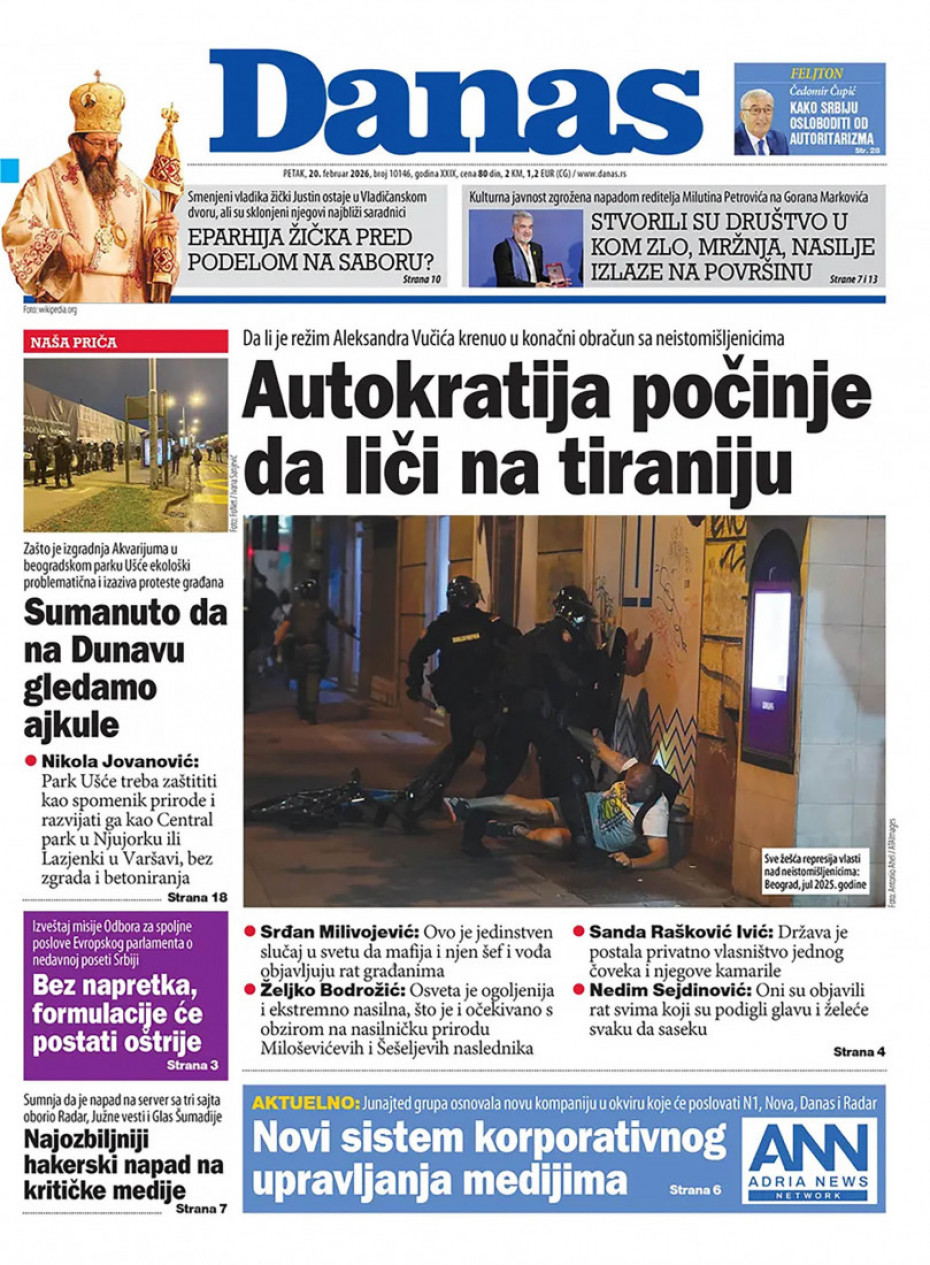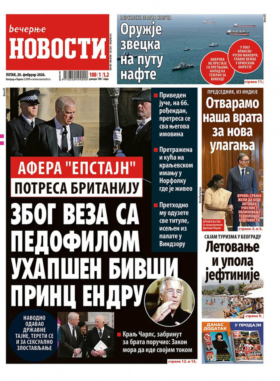Pogledajte šta na naslovnim stranama donose dnevne novine u Srbiji u izdanju za za petak, 20. februar