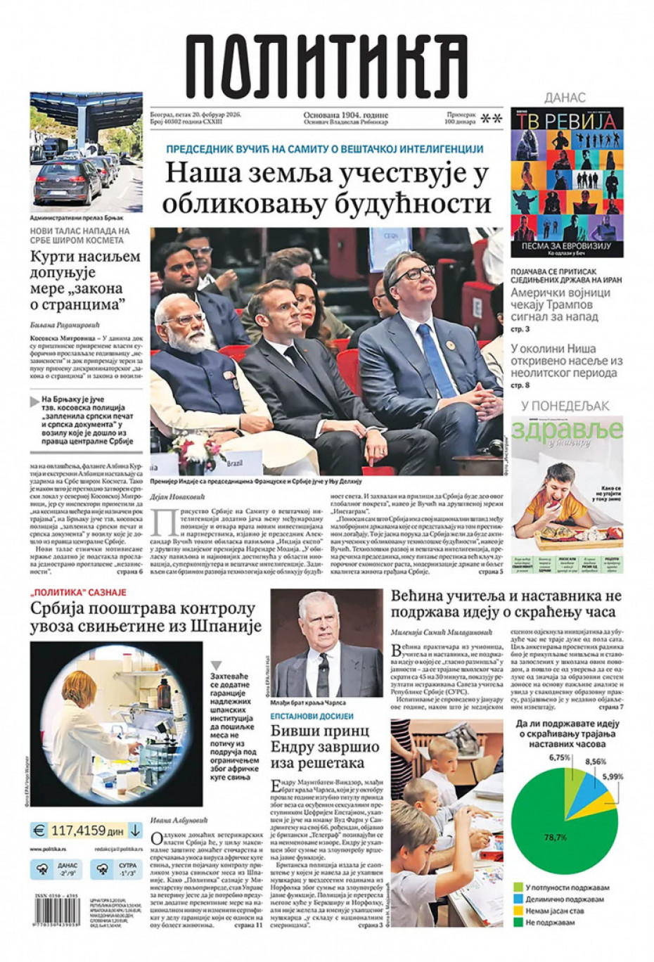 Naslovne strane dnevne štampe za petak, 20. februar
