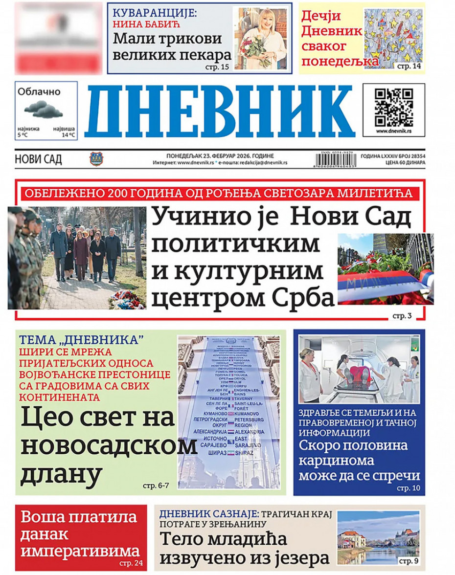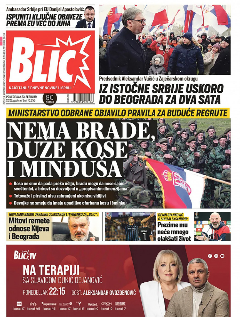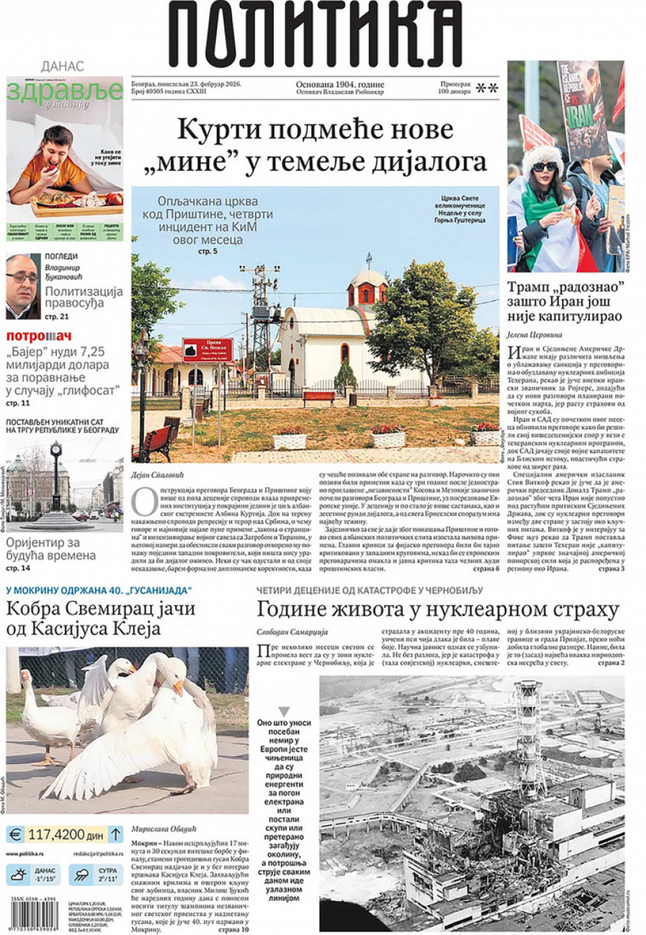 Pogledajte šta na naslovnim stranama donose dnevne novine u Srbiji u izdanju za ponedeljak, 23. februar