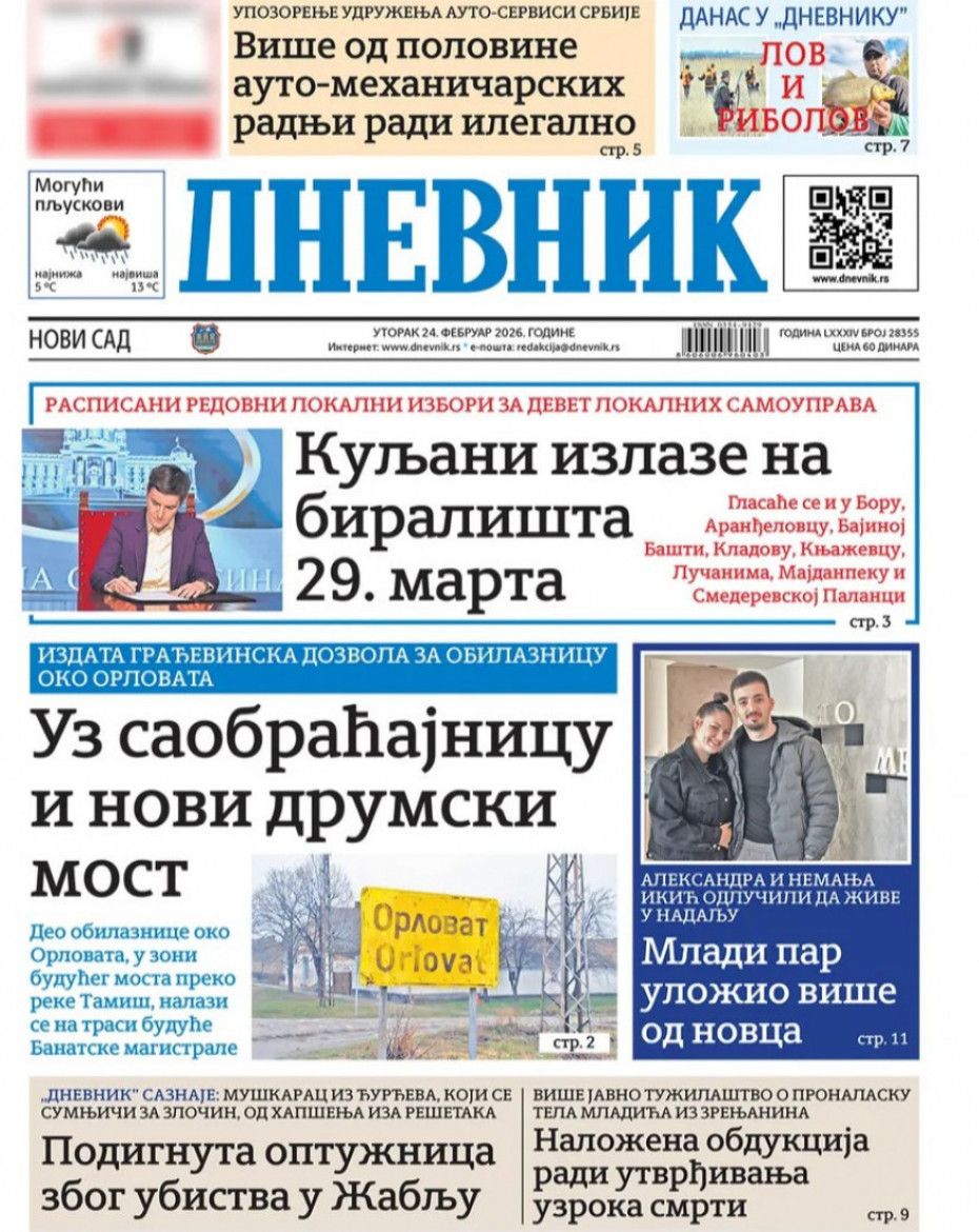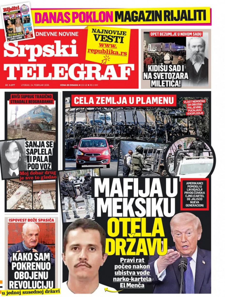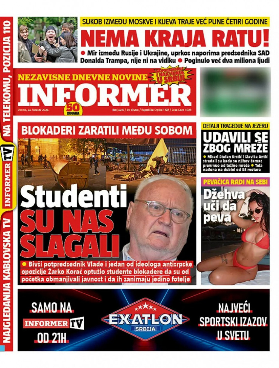 Pogledajte šta na naslovnim stranama donose dnevne novine u Srbiji u izdanju za utorak, 24. februar