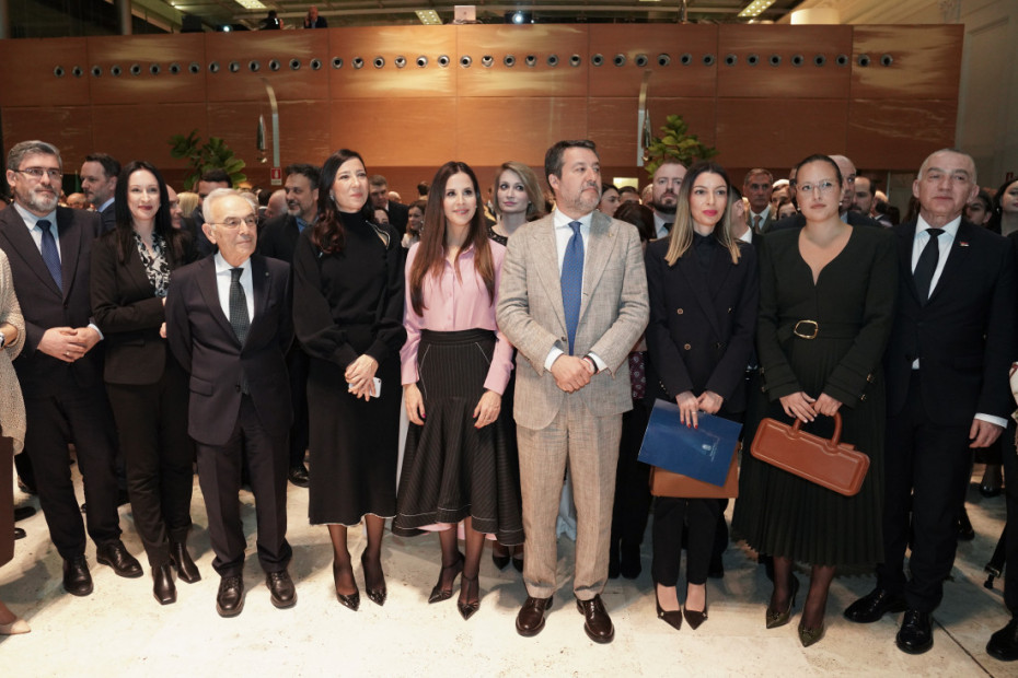 Ambasada Srbije u Italiji organizovala je danas prijem povodom 15. februara - Dana državnosti Srbije, kojem su prisustvovali potpredsednica Vlade Srbije i ministarka privrede Adrijana Mesarović, supruga predsednika Srbije Tamara Vučić i zamenik predsednika Vlade Italije Mateo Salvini.