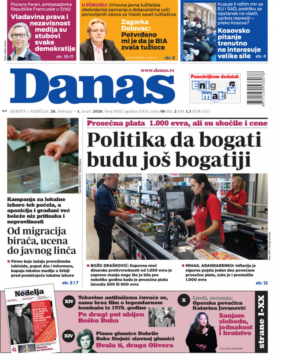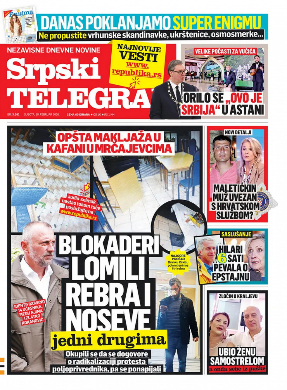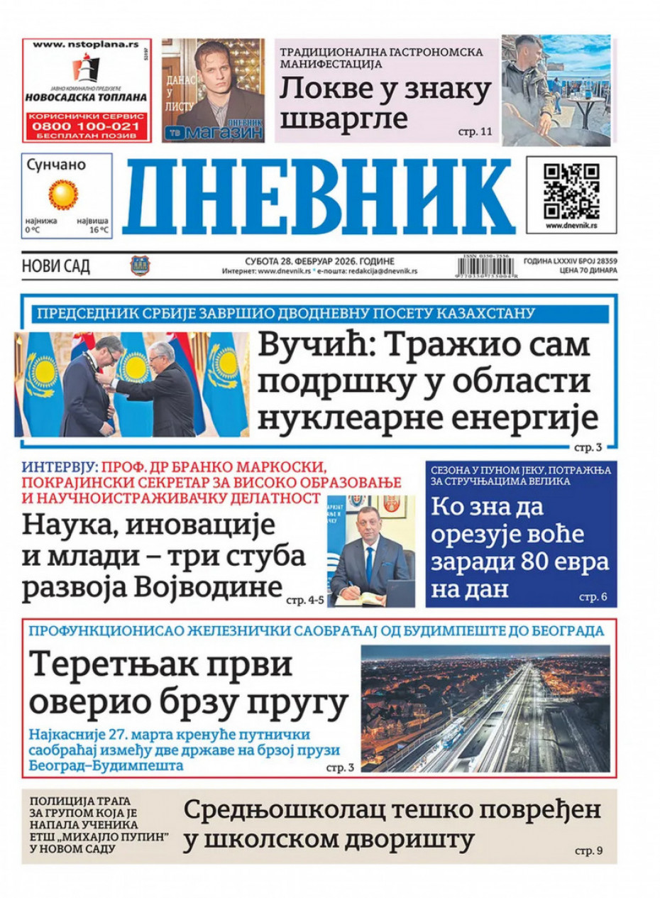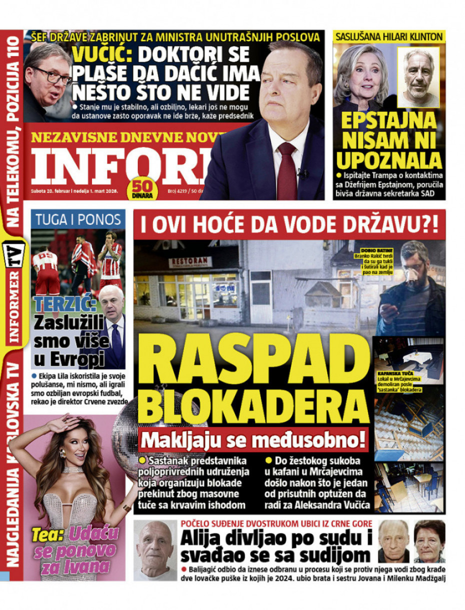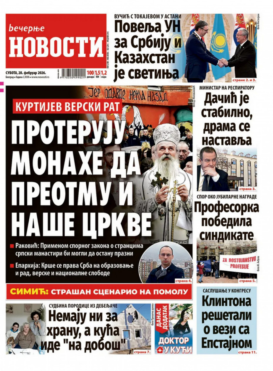 Naslovna Srbija Politika Politika Naslovne strane dnevne štampe za subotu, 28. februar Komentari Naslovne strane dnevne štampe za subotu, 28. februar - Copyright Profimedia, Logo Autor: Euronews Srbija 27/02/2026 - 21:00 Podeli veličina teksta Aa Aa Pogledajte šta na naslovnim stranama donose dnevne novine u Srbiji u izdanju za subotu, 28. februar Promo Pogledaj galeriju Promo Pogledaj galeriju Promo Pogledaj galeriju Promo Pogledaj galeriju Promo Pogledaj galeriju Promo Pogledaj galeriju Promo Pogledaj galeriju Promo Pogledaj galeriju Promo Pogledaj galeriju Više o... Naslovne strane Naslovne strane sutrašnjih novina Sutrašnje naslovnice Dnevne novine naslovnice Top tagovi Euronews Montenegro Kosovo i Metohija Rat u Ukrajini Kriza na Bliskom istoku