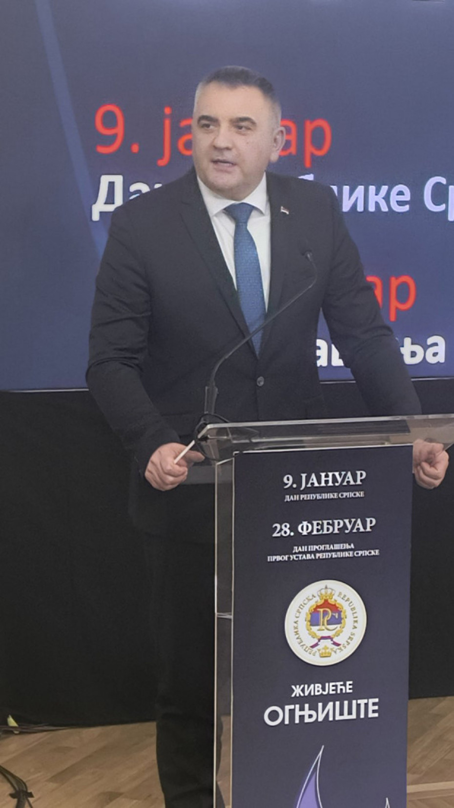 Na svečanosti se obratio i izaslanik predsednika Srbije i savetnik za regionalna pitanja Miloš Vučević, koji je rekao da je Republika Srpska rezultat nužnosti, plod ljubavi prema srpstvu, strah od genocida iz Drugog svetskog rata i racionalni i logični odgovor na korake onih koji su sanjali i hteli, a to hoće i danas, ''da srpski narod svedu na beogradski pašaluk''.