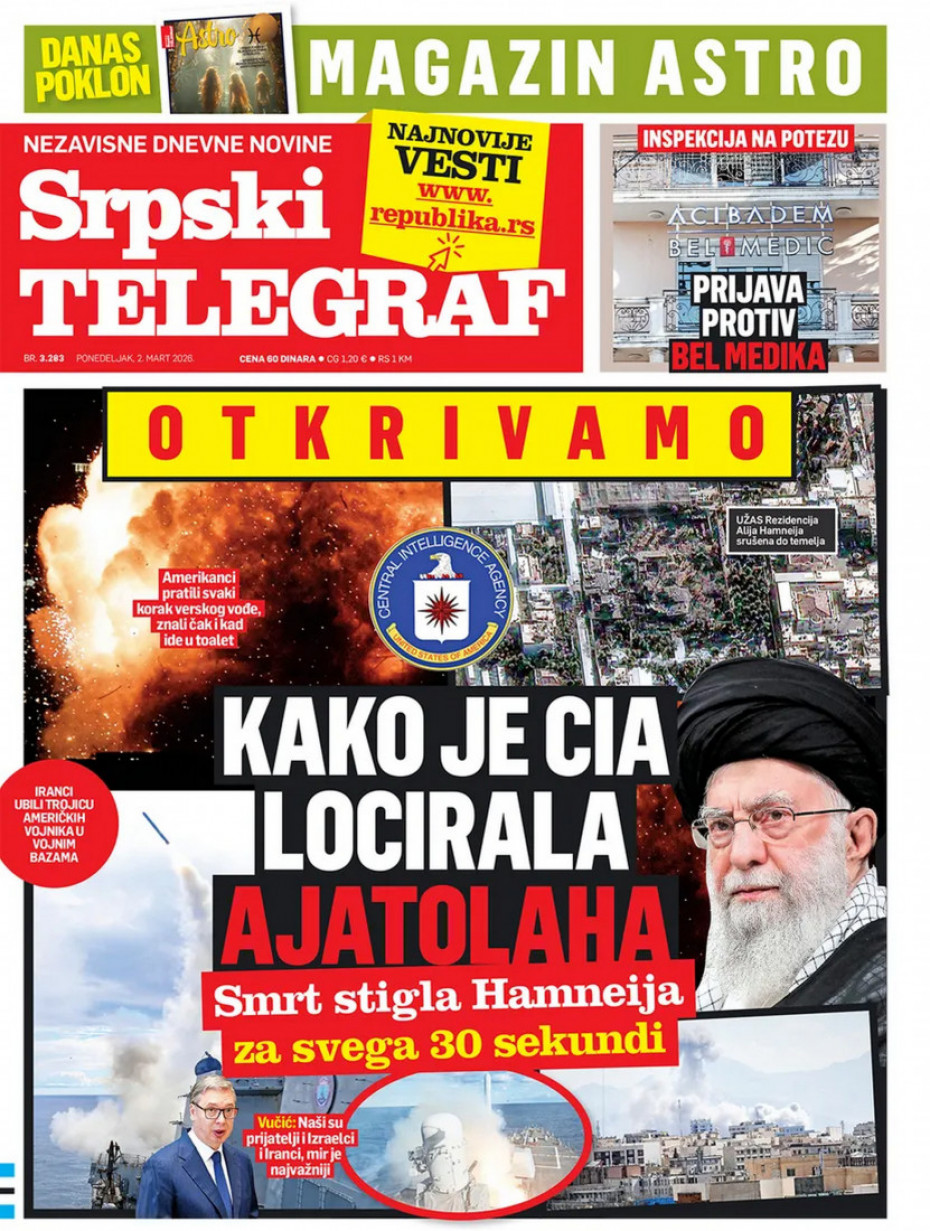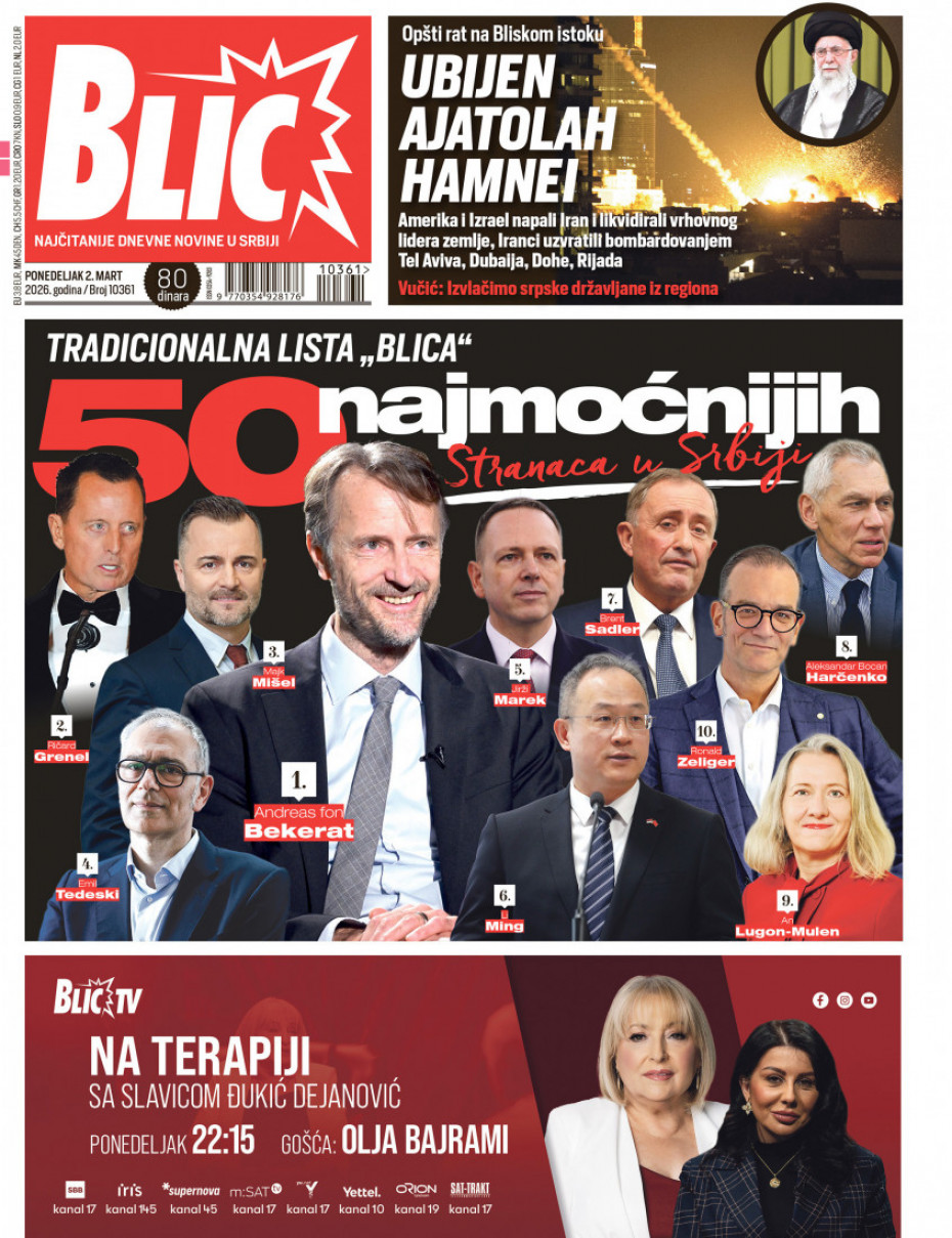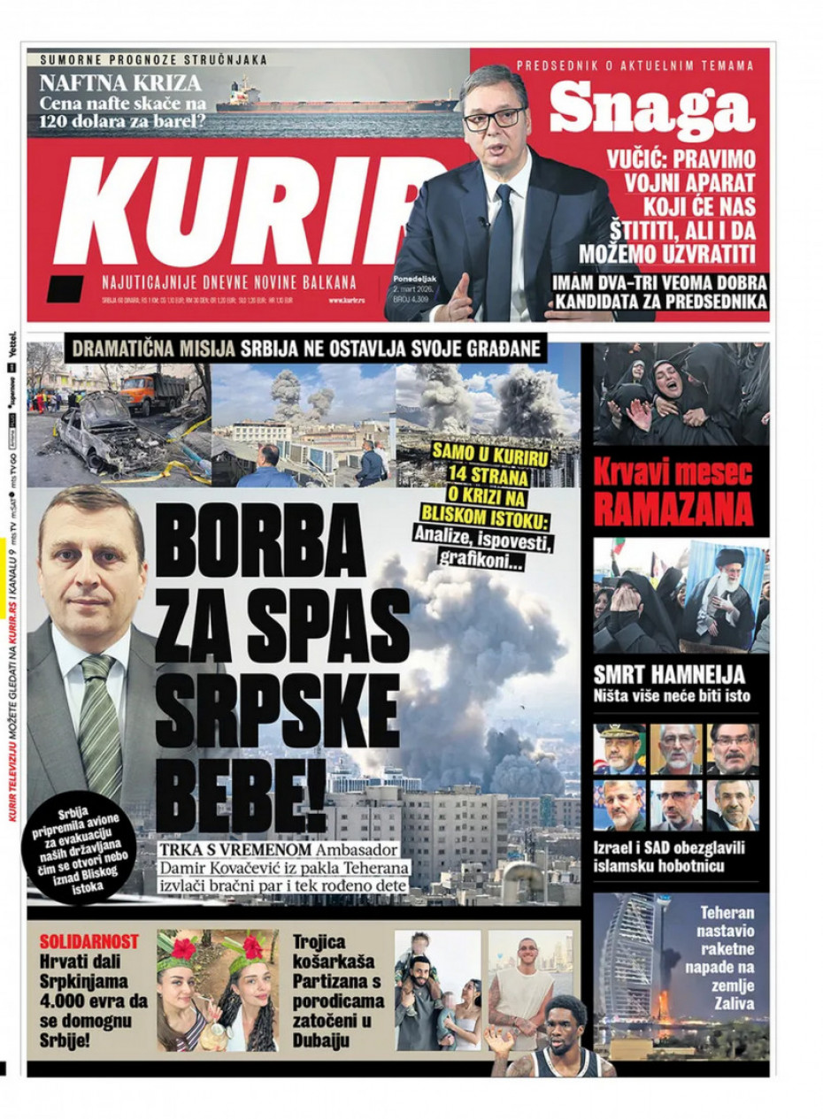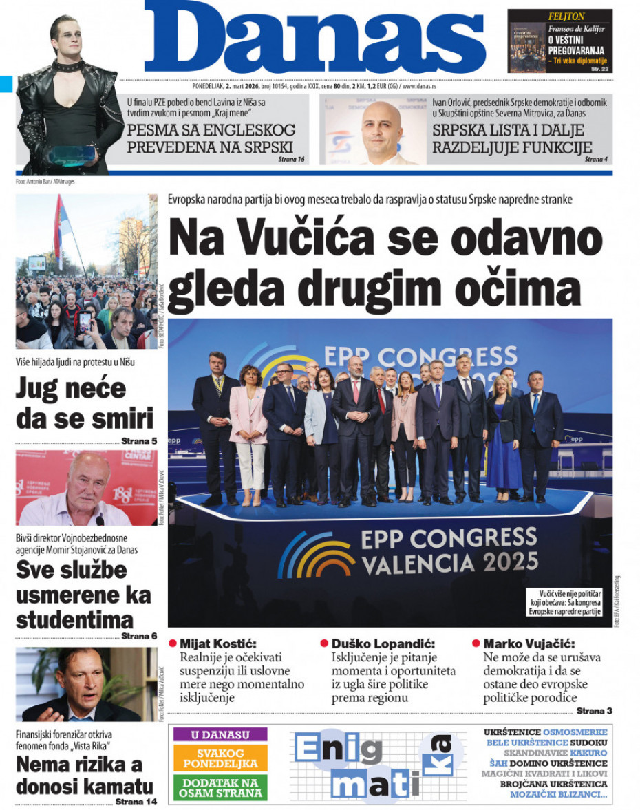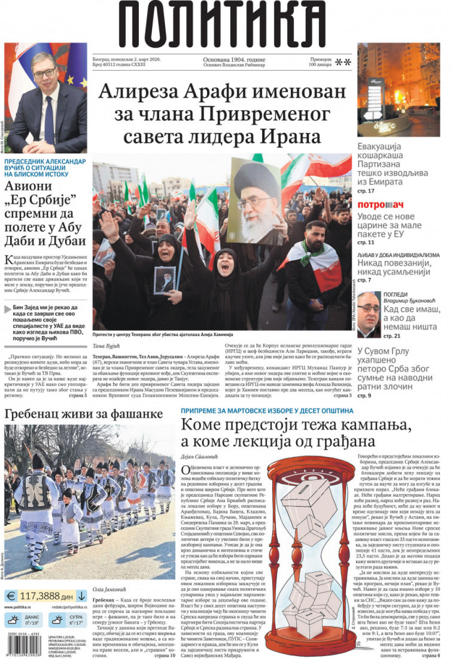 Naslovne strane dnevne štampe za ponedeljak, 2. mart