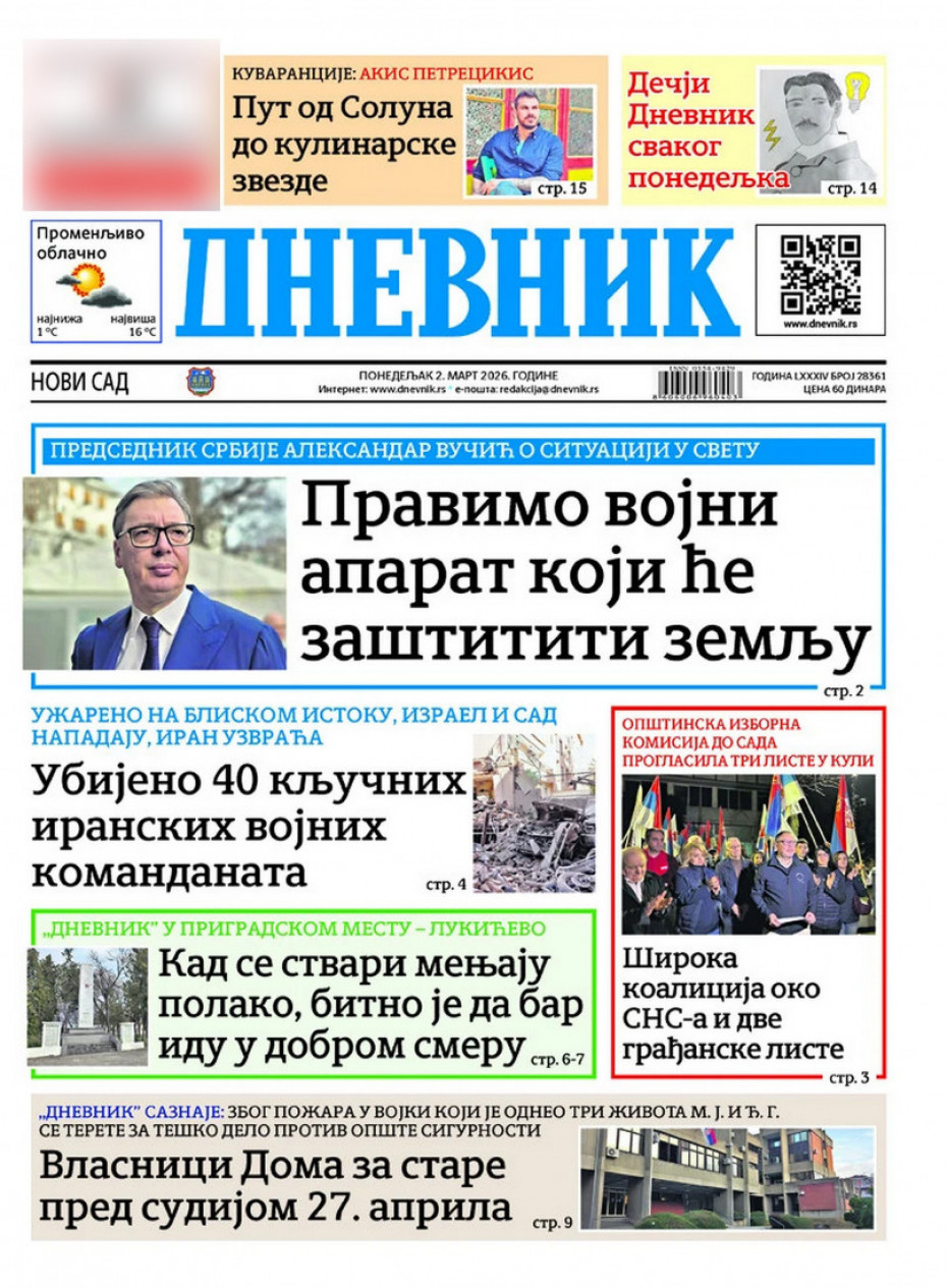 Pogledajte šta na naslovnim stranama donose dnevne novine u Srbiji u izdanju za ponedeljak, 2. mart