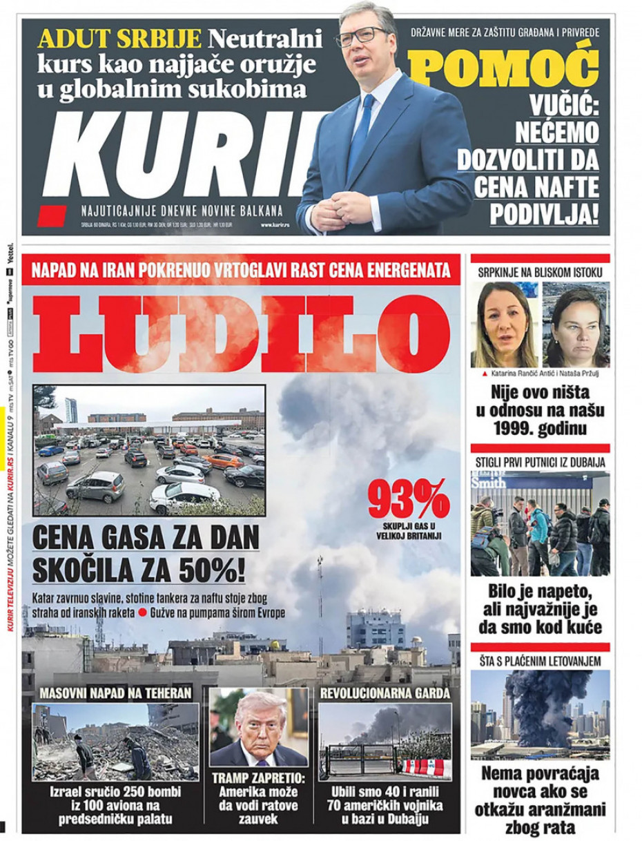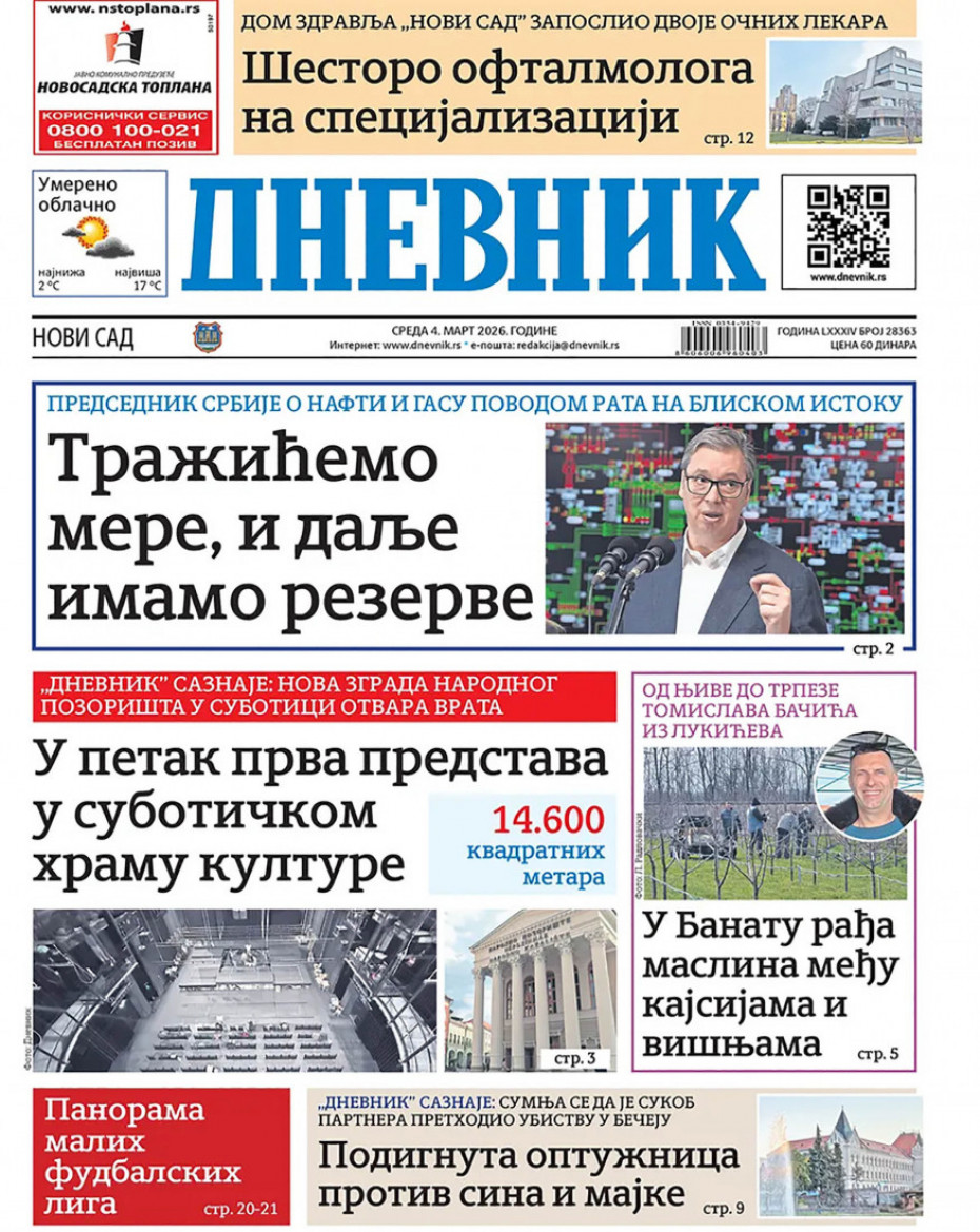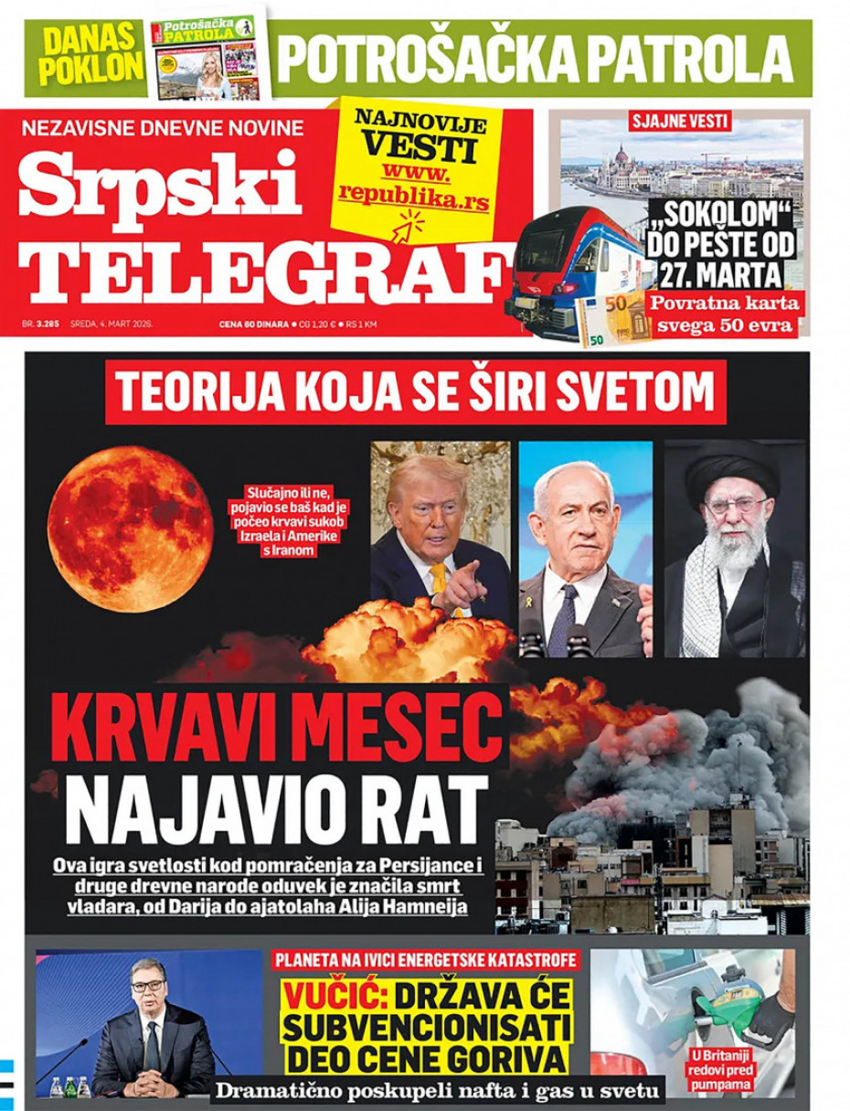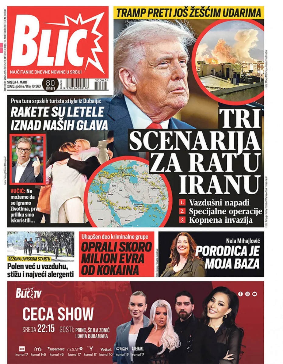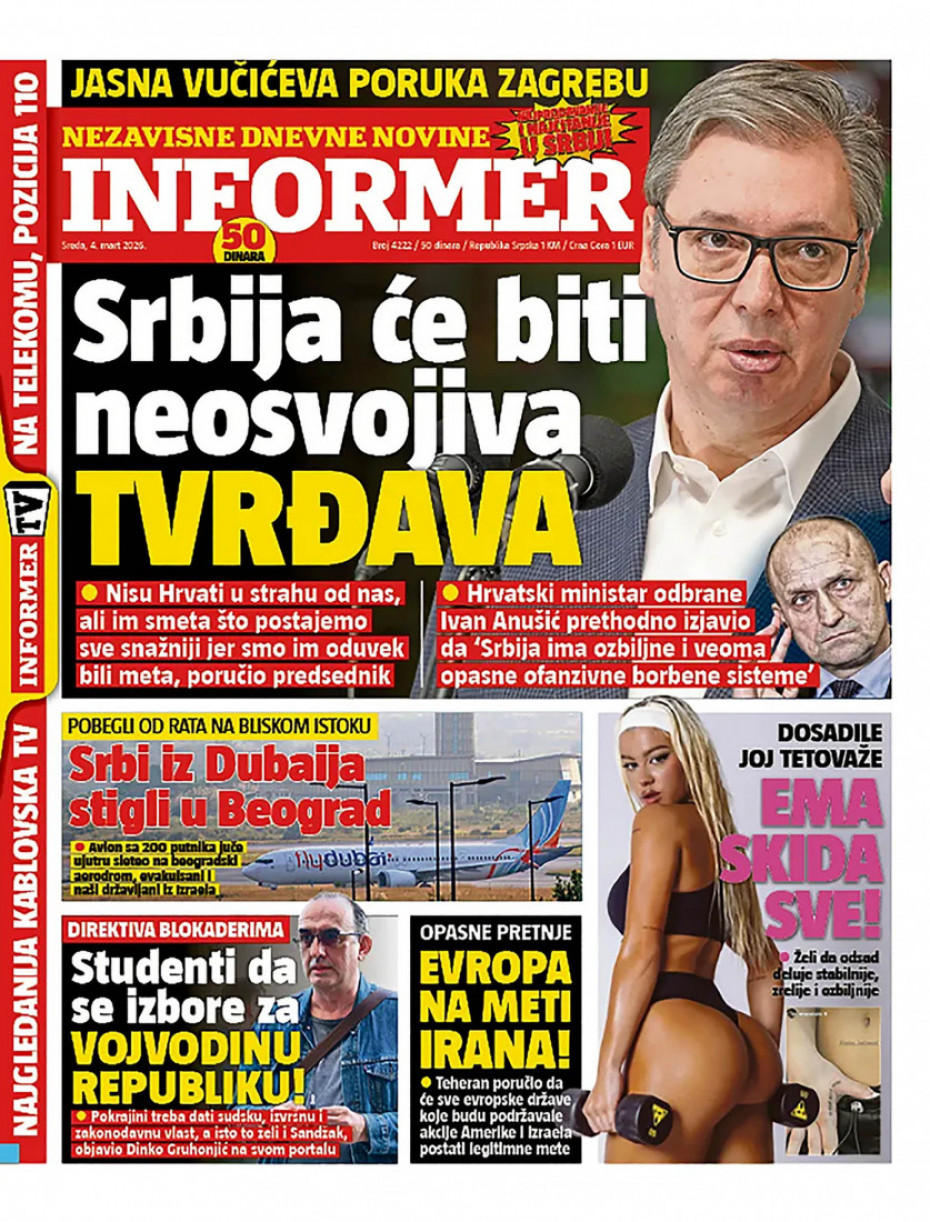 Naslovne strane dnevne štampe za sredu, 4. mart